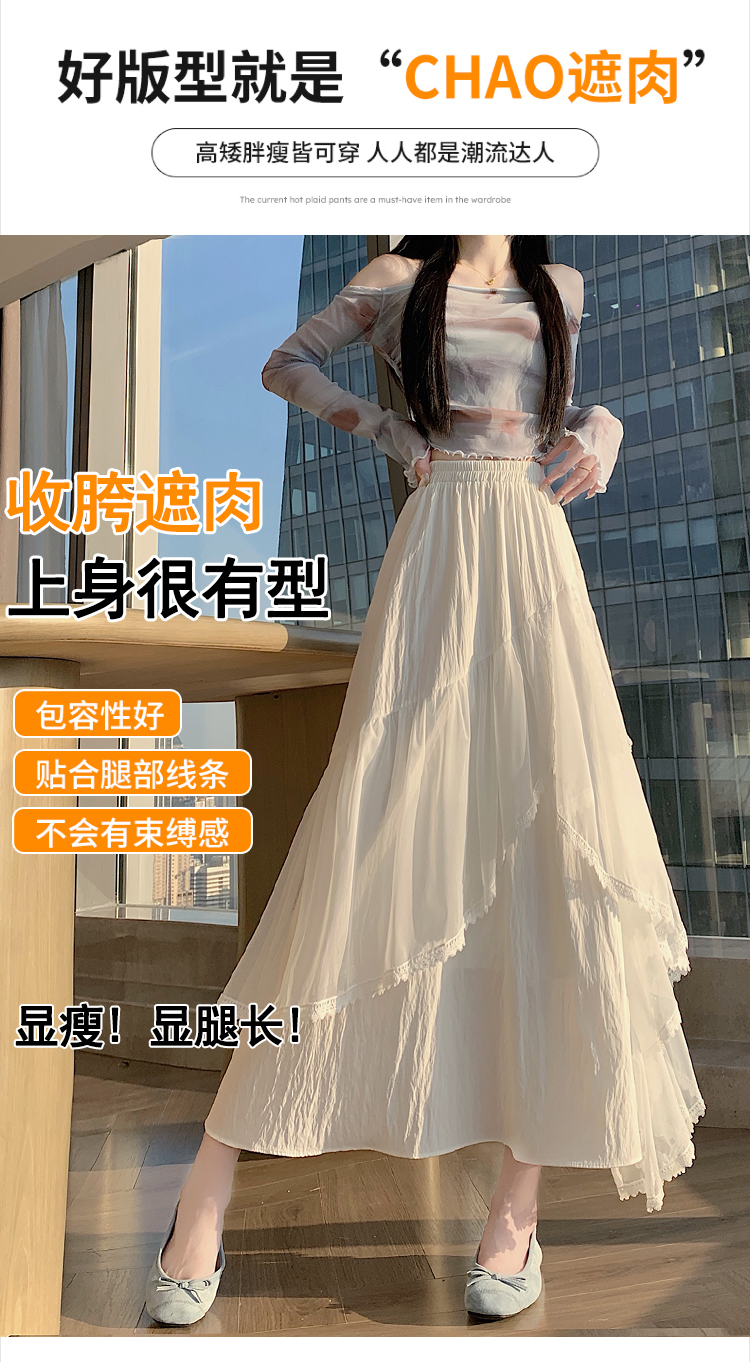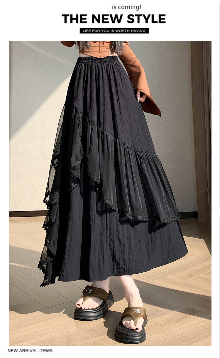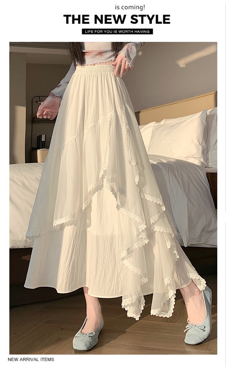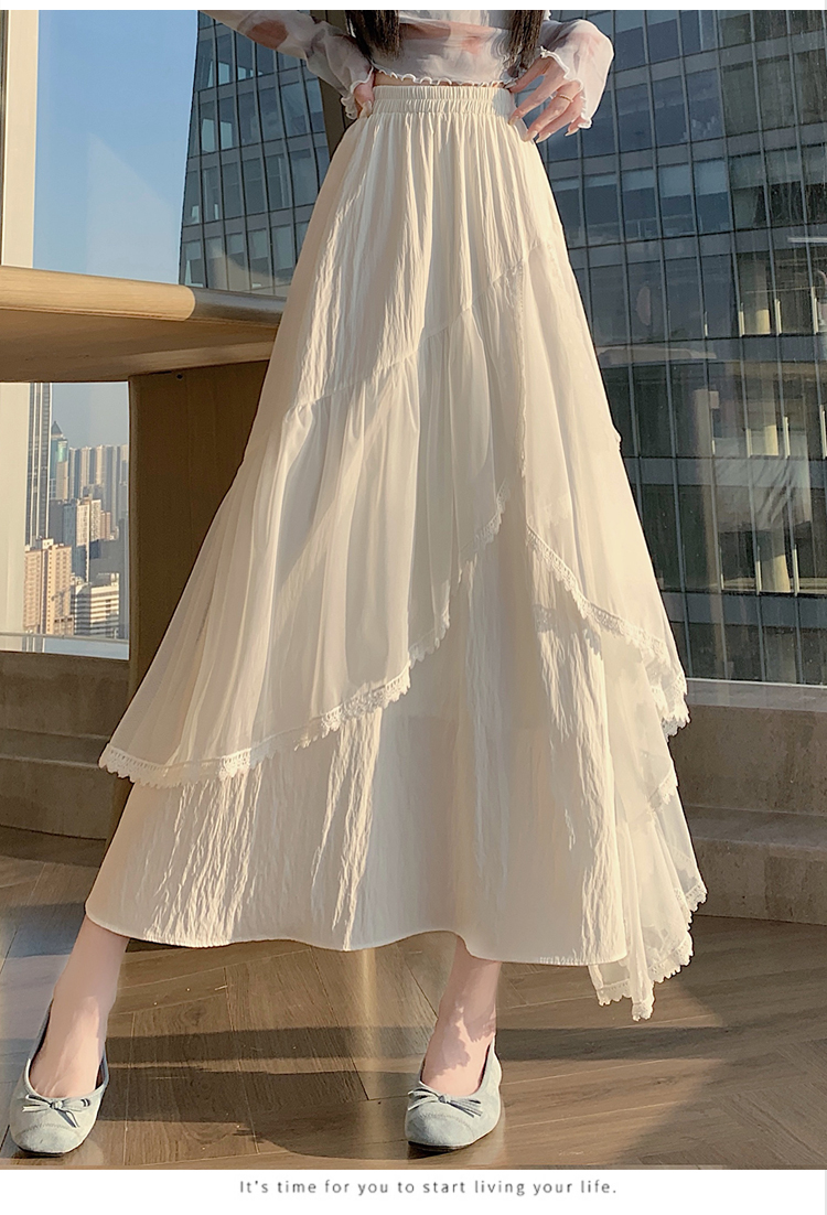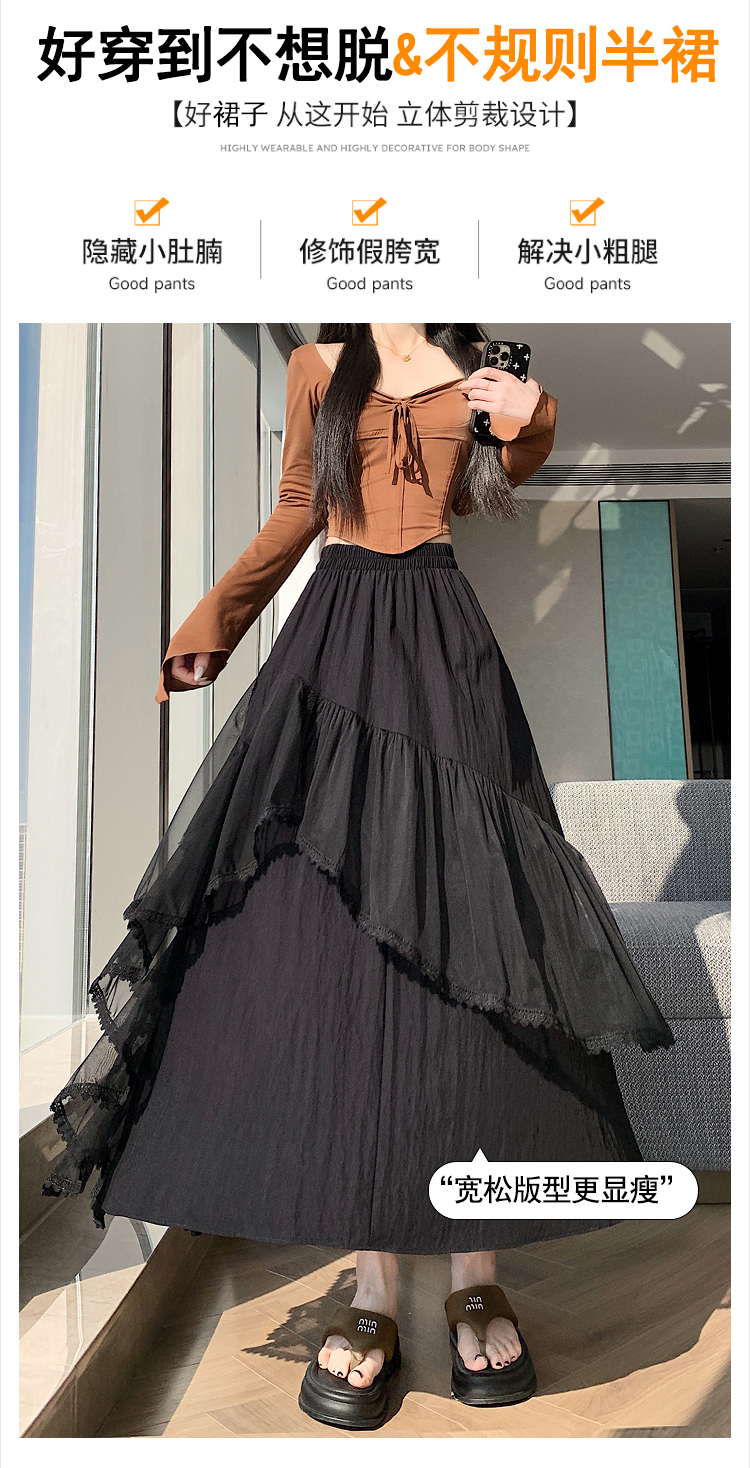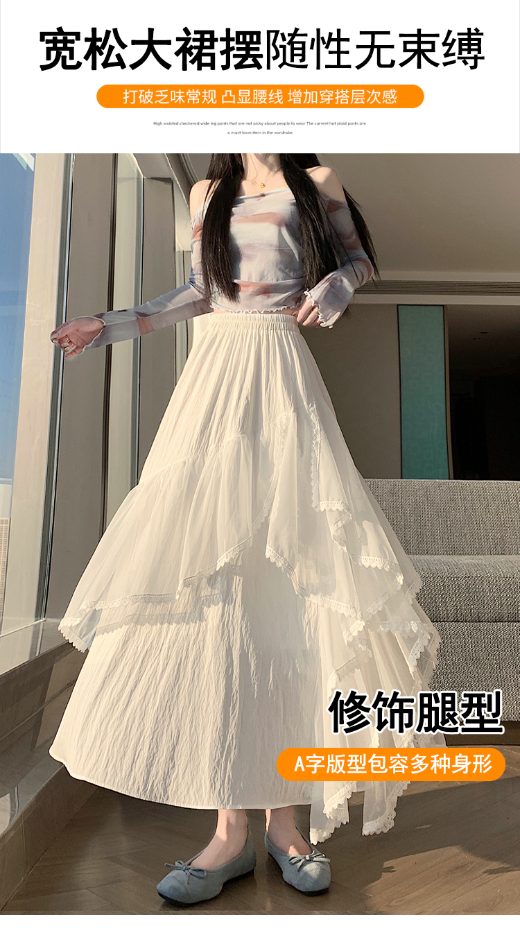 실사 불규칙 패치워크 프릴 반신 스커트 봄 여름 새로운 슬림해 보이는 다용도 레이스 케이크 롱 스커트 A라인 스커트