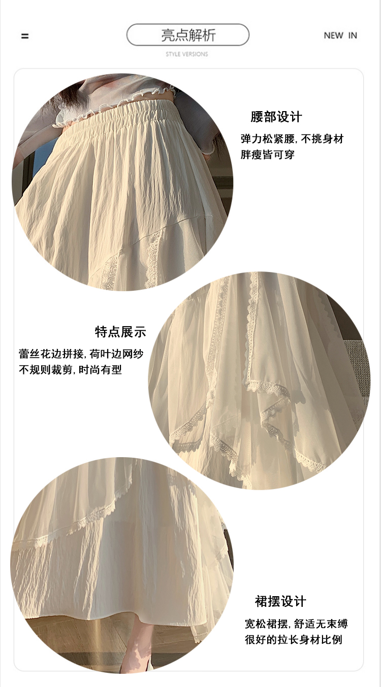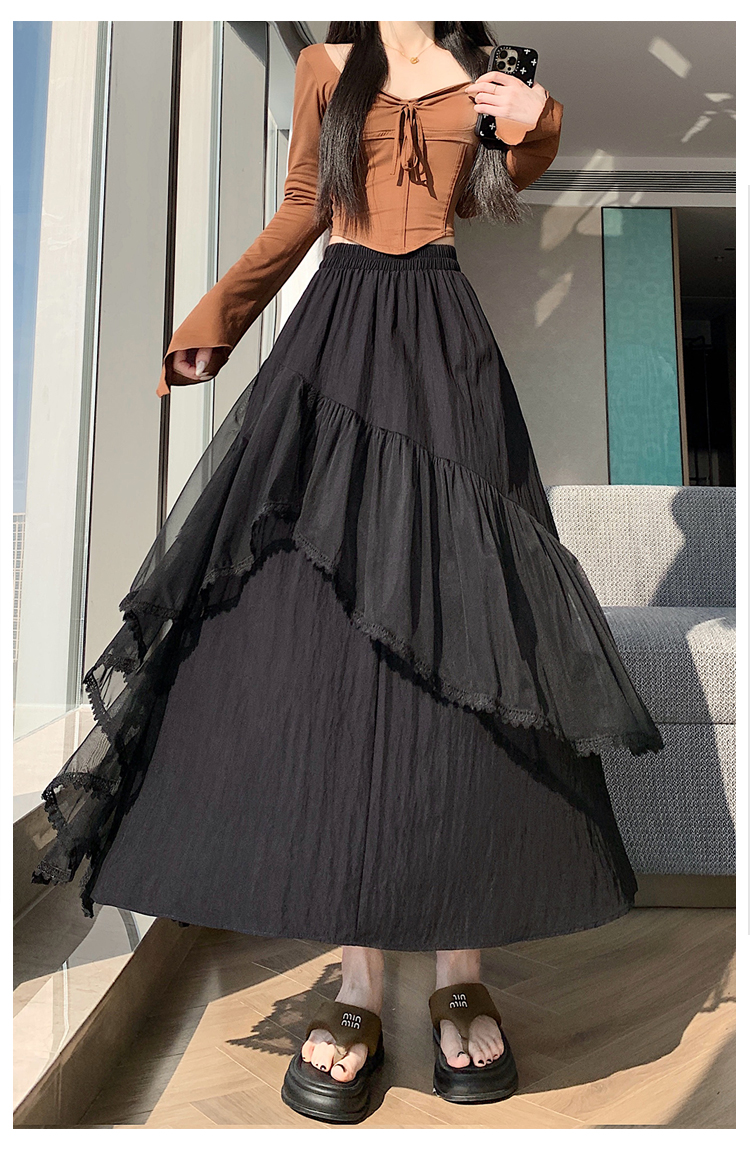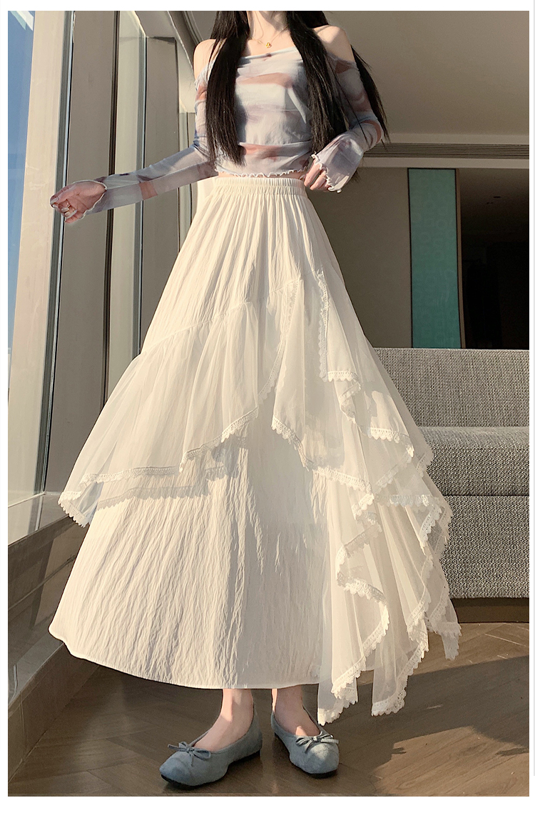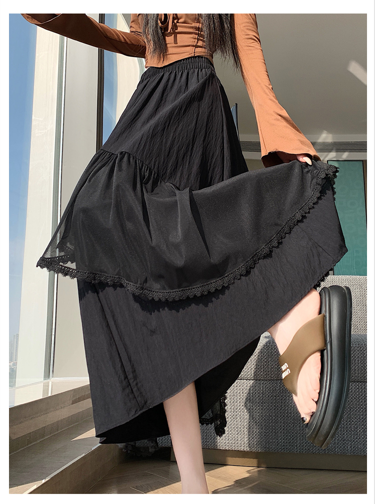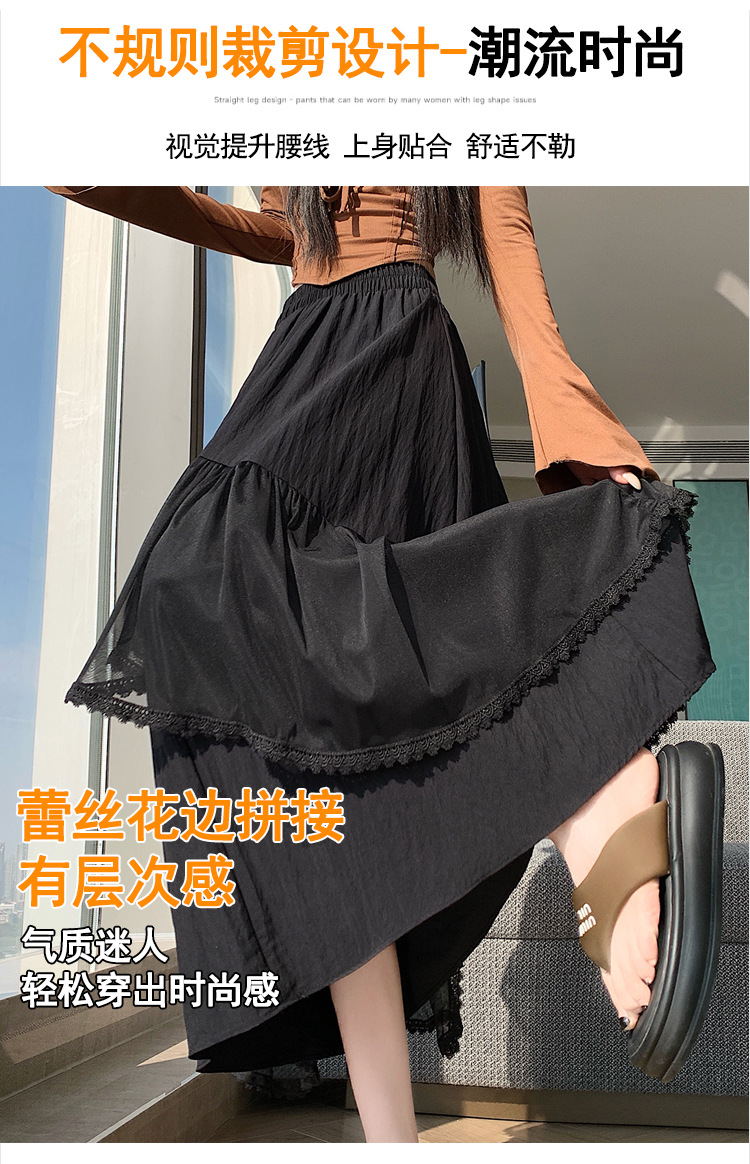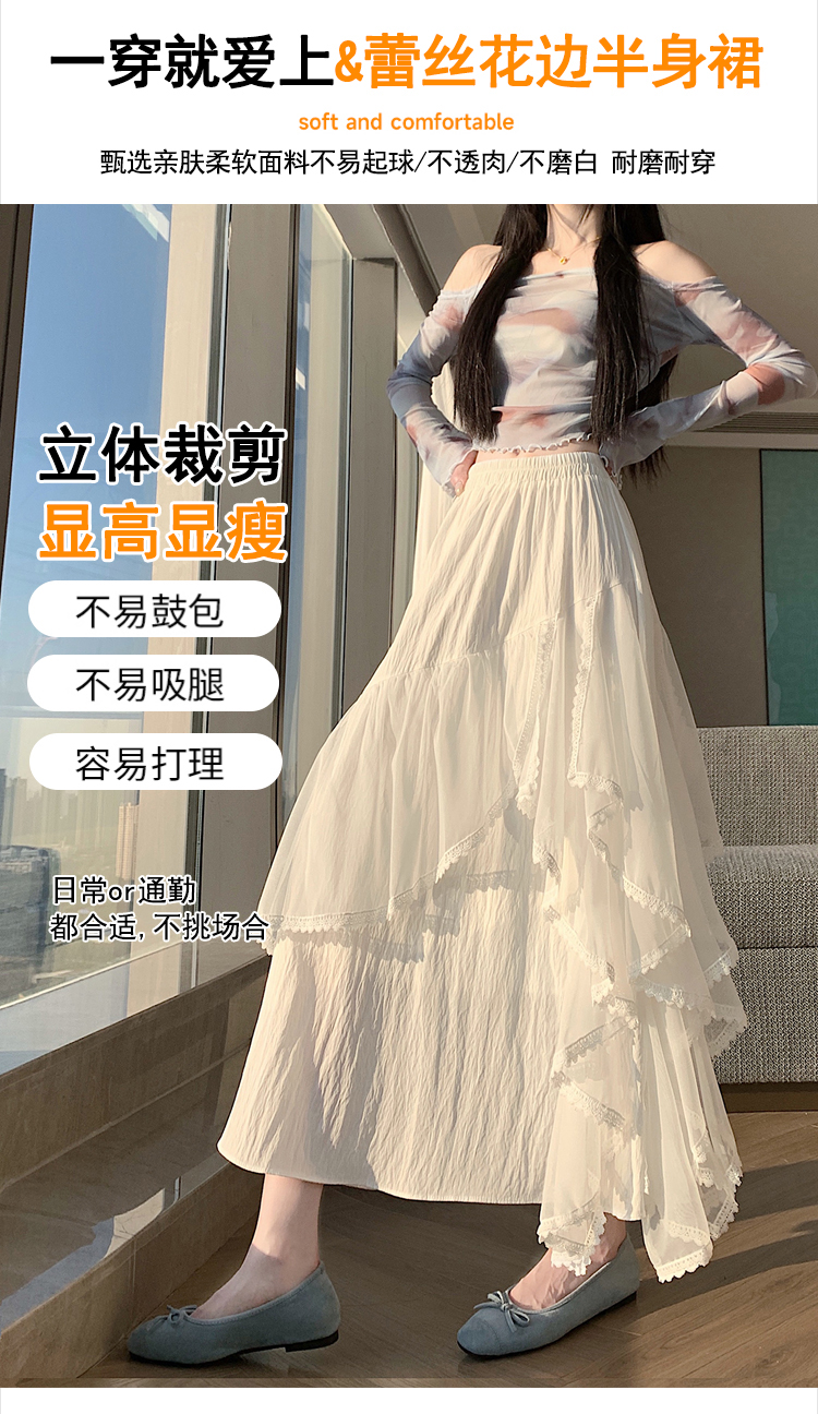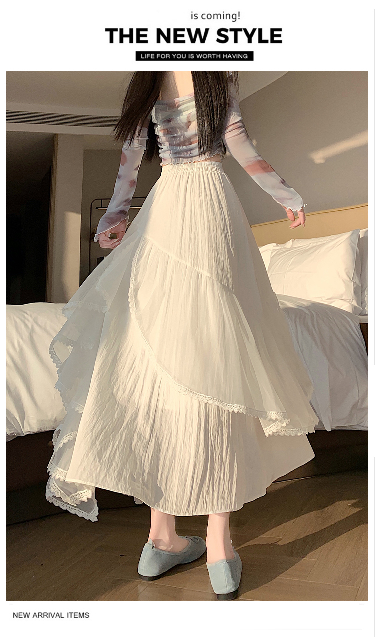 실사 불규칙 패치워크 프릴 반신 스커트 봄 여름 새로운 슬림해 보이는 다용도 레이스 케이크 롱 스커트 A라인 스커트