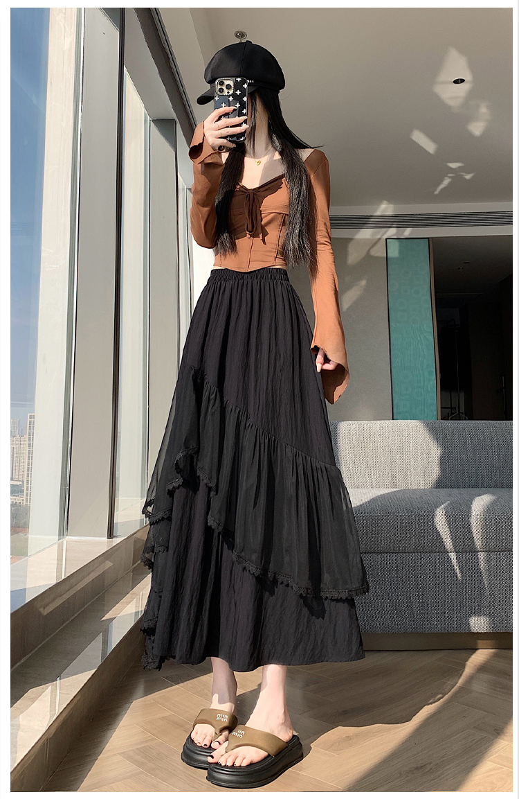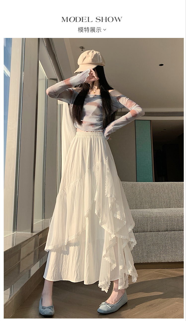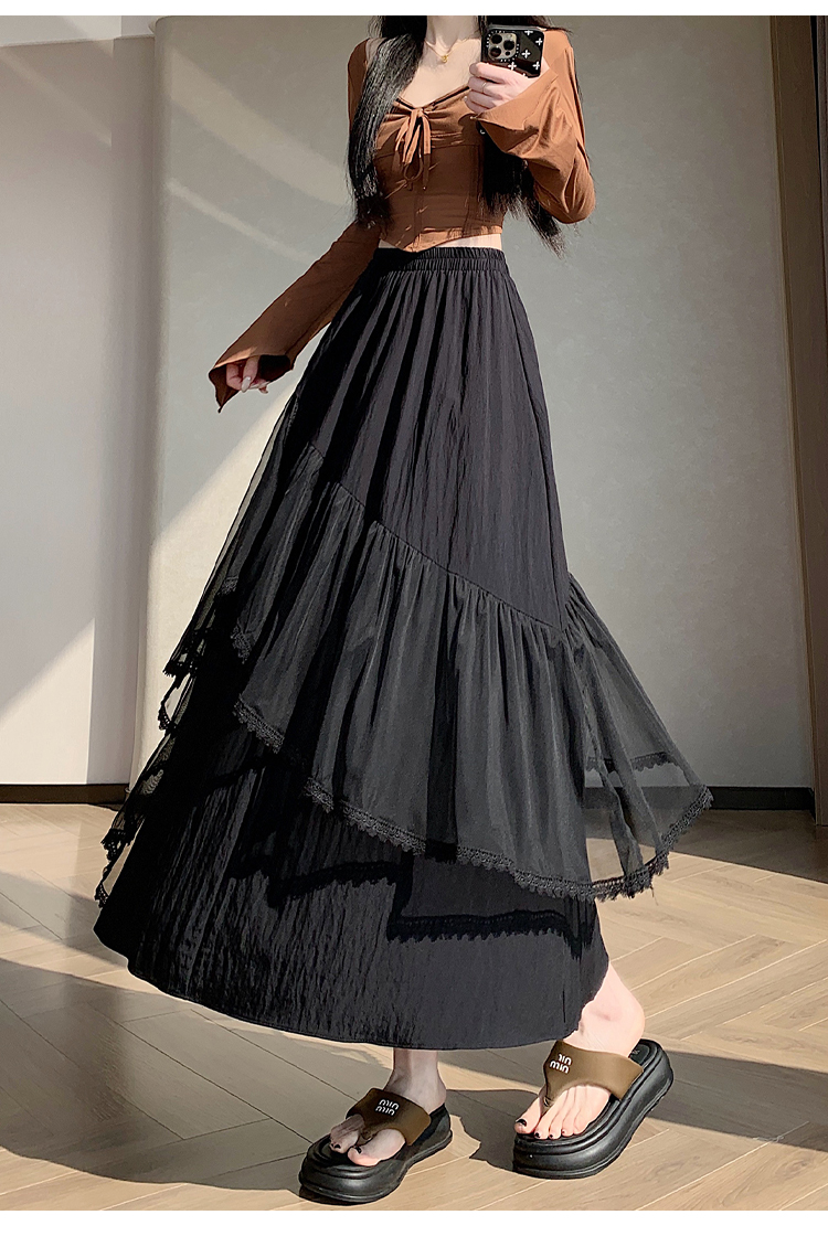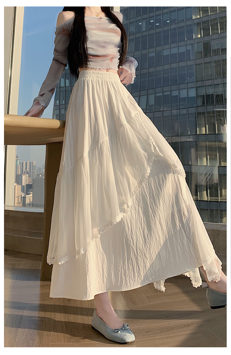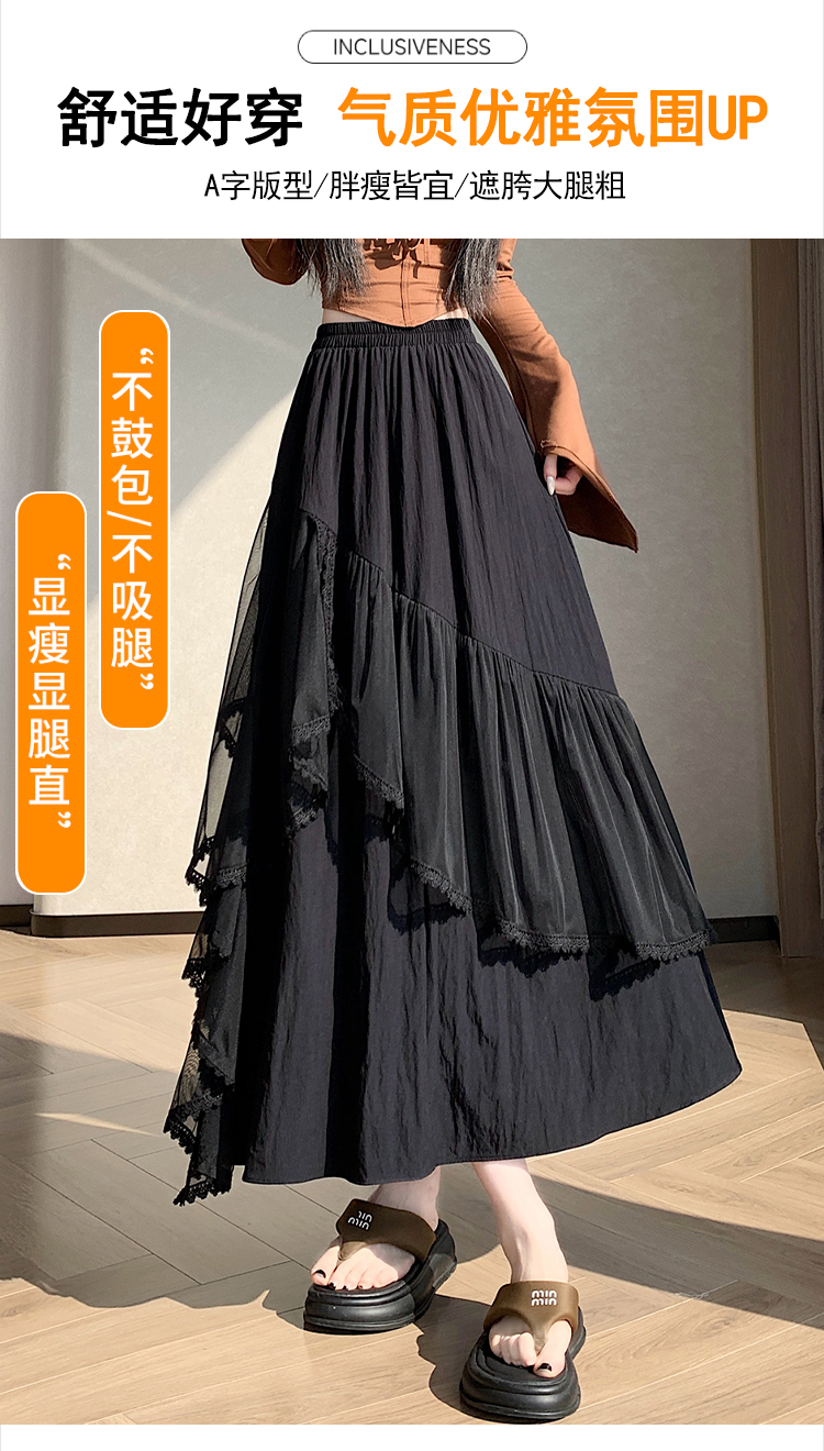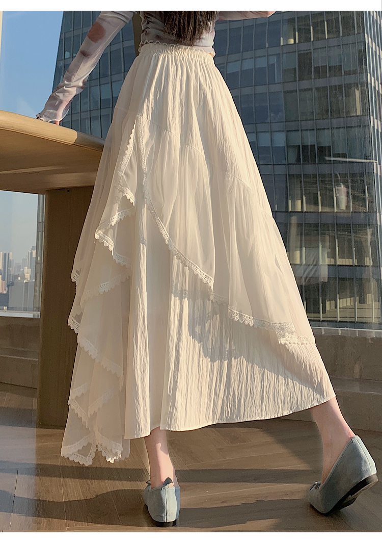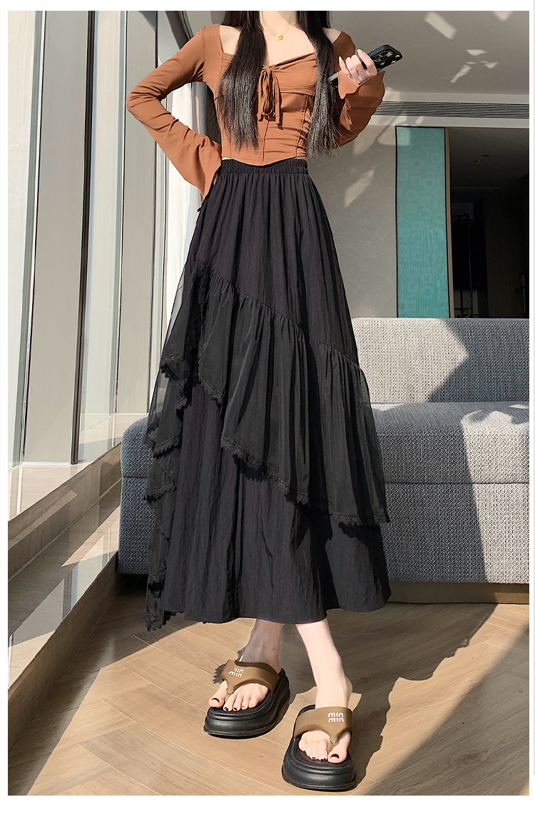실사 불규칙 패치워크 프릴 반신 스커트 봄 여름 새로운 슬림해 보이는 다용도 레이스 케이크 롱 스커트 A라인 스커트