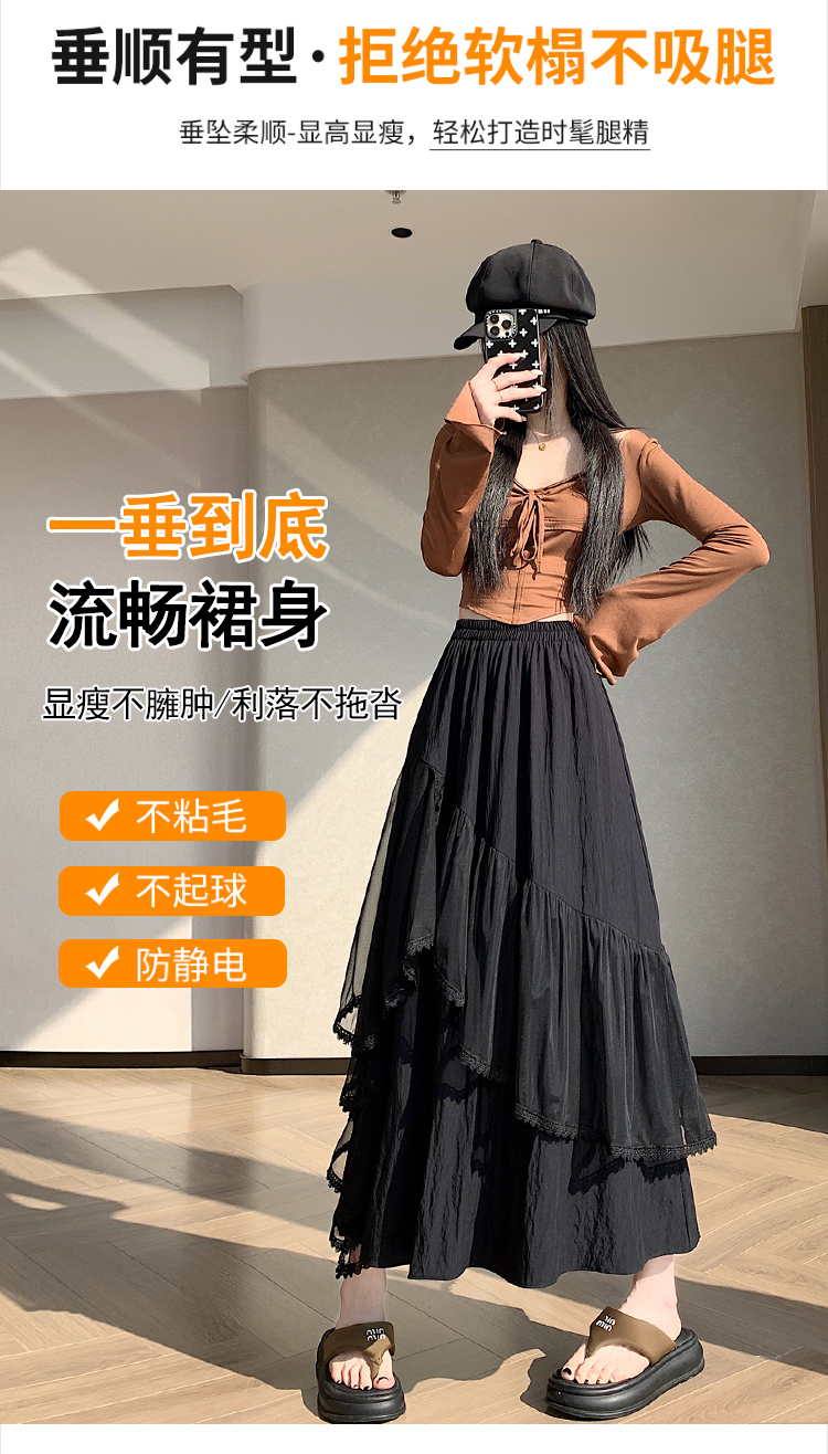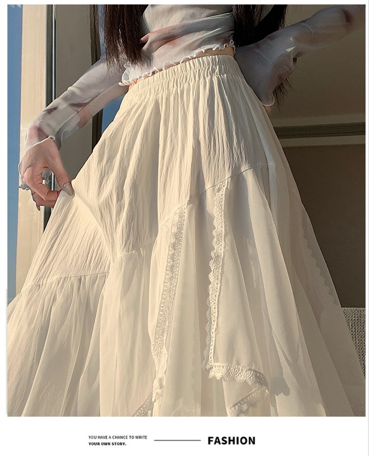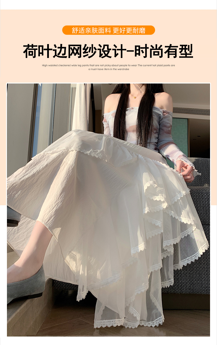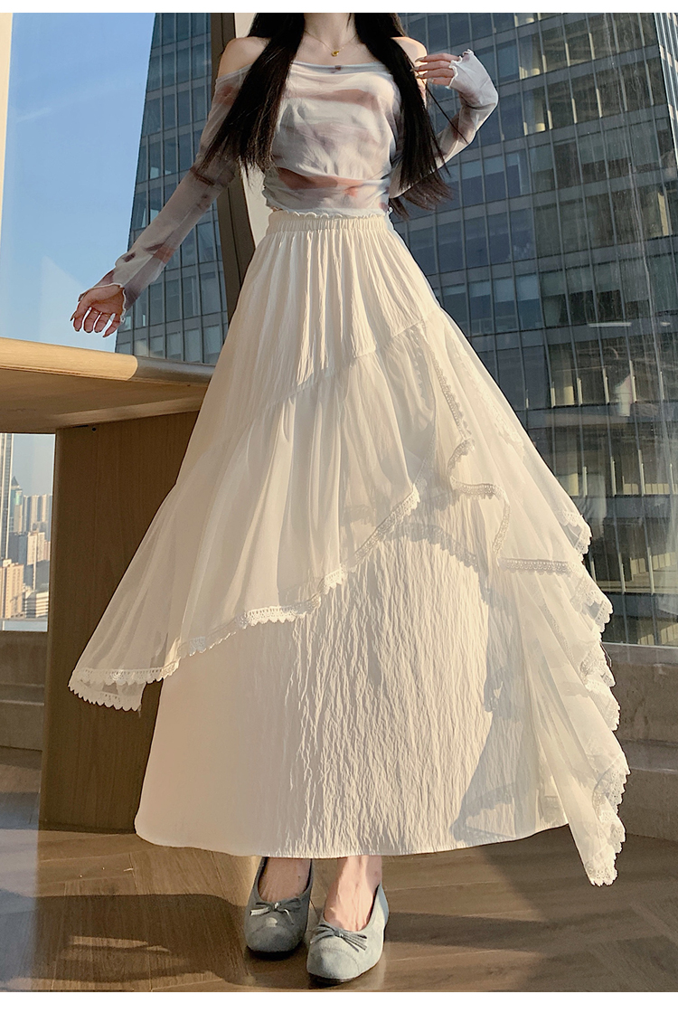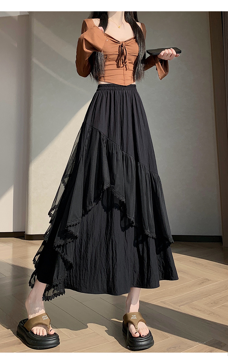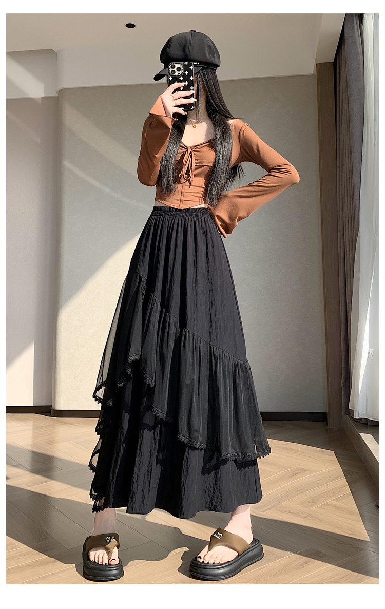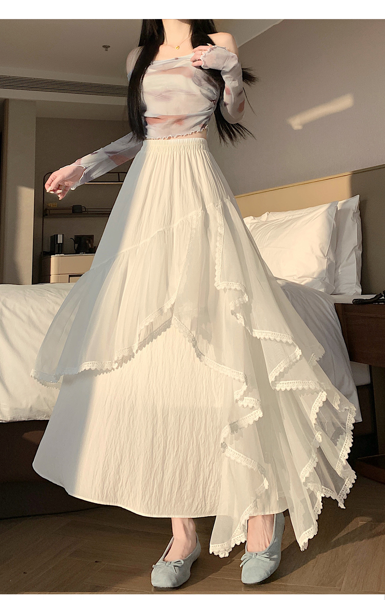 실사 불규칙 패치워크 프릴 반신 스커트 봄 여름 새로운 슬림해 보이는 다용도 레이스 케이크 롱 스커트 A라인 스커트