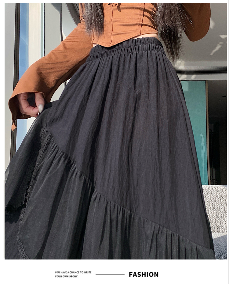 실사 한 부서 자카드 패치워크 레이스 케이크 드레스 가을 겨울 루즈핏 프릴 하이웨이스트 다용도 한 마디 롱 스커트