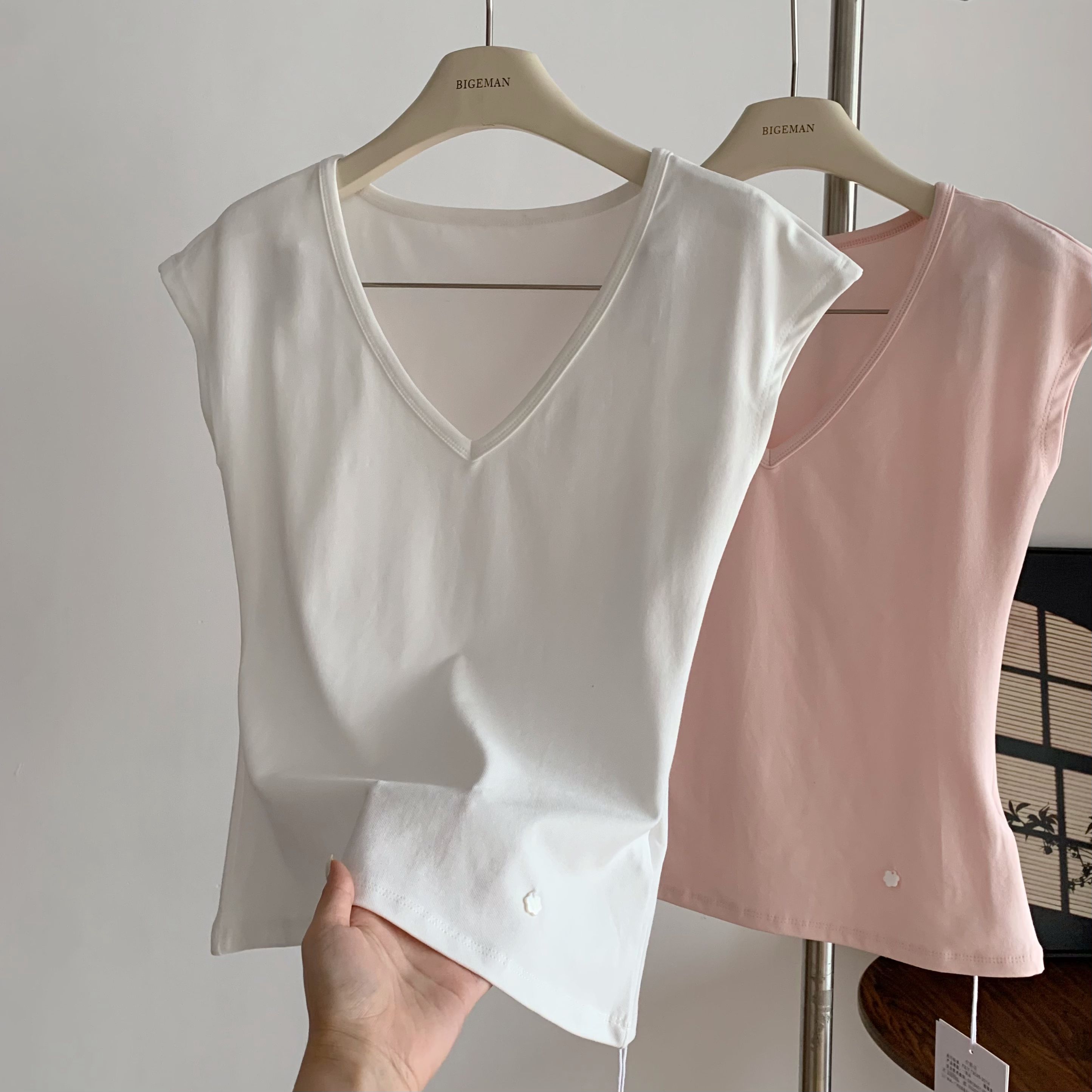 4 15 20 00cher 챠오어 순수한 욕망 숙박 화이트 한 여성 하프 칼라 티셔츠 민소매 조끼 타이트 맨위