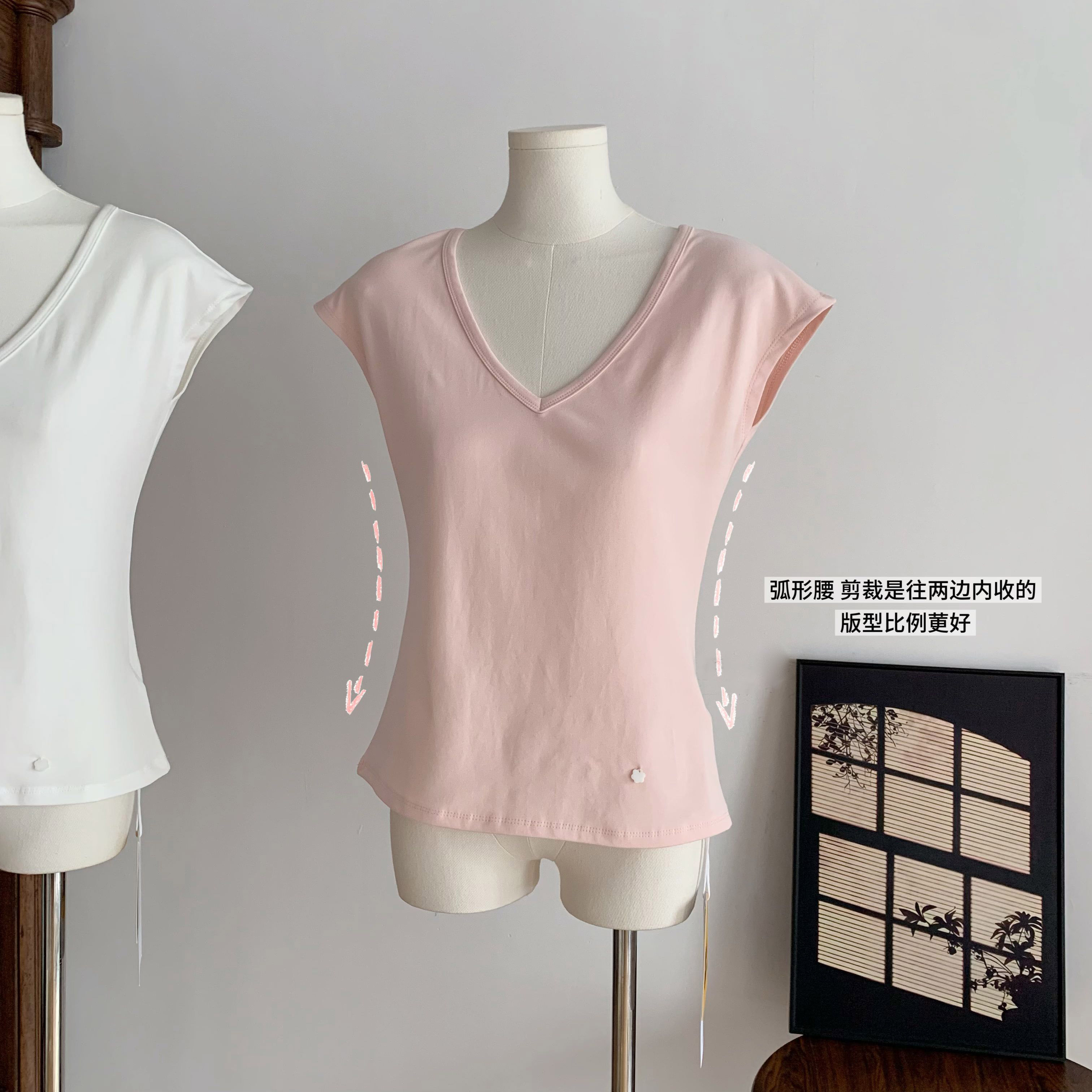chill 챠오어 빛 연 주형 품격 몸매 가꾸기 순수한 욕망 섹시함 비스듬한 어깨 티셔츠 흔들다 칼라 허리 수축 슬림해 보이는 맨위