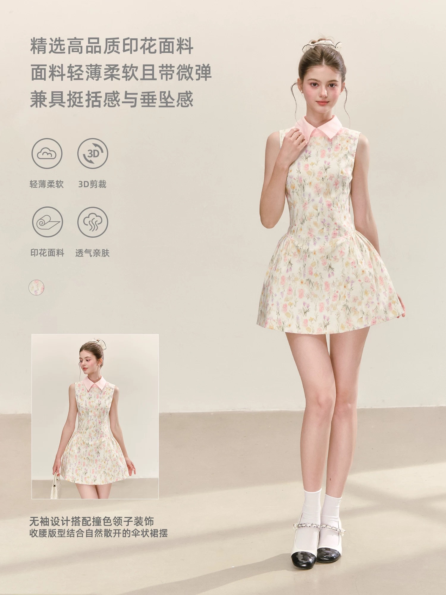 qdqd 슈퍼 잘 생긴 ~ 중 해변가 휴가 꽃무늬 치마 여름 주름 허리 수축 슬림해 보이는 민소매 달콤함 여성 드레스