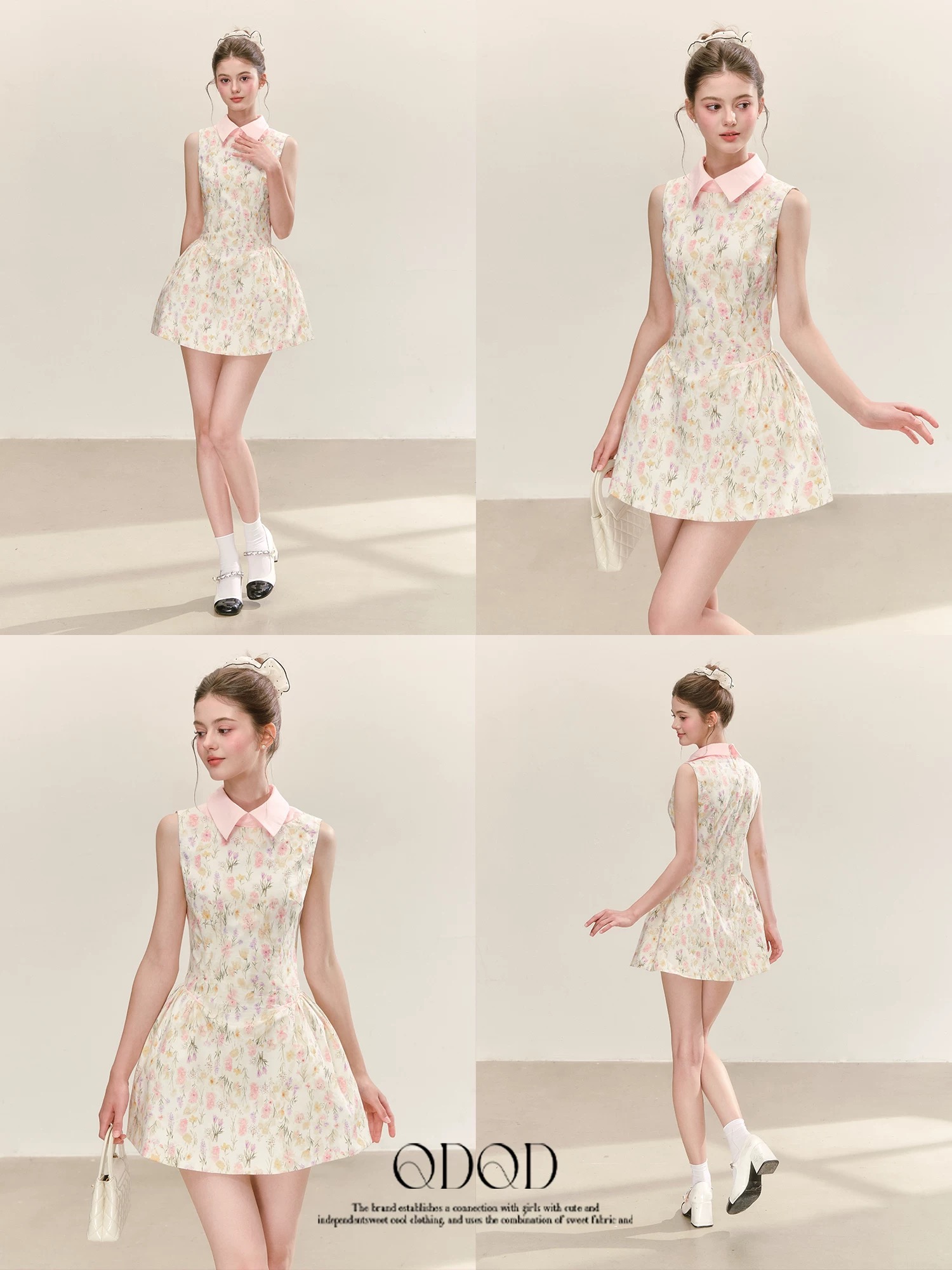 qdqd 천 금빛 바람 꽃무늬 드레스 봄 여름 레트로 우아함 민소매 허리 수축 레이스업 슬림해 보이는 품격 A라인 스커트 여성