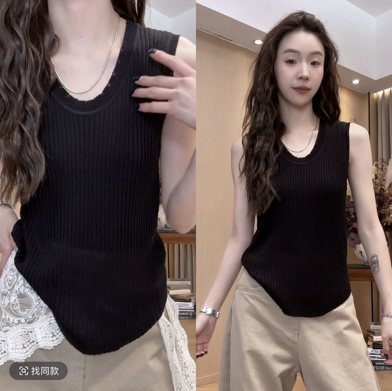 루어 루어 홈 프린트 패션 모통이 칼 바지 허리밴드 캐주얼 바지 외부 스레드 민소매 검정색 라운드 넥 뒤로 심장 안에 가져 가라.