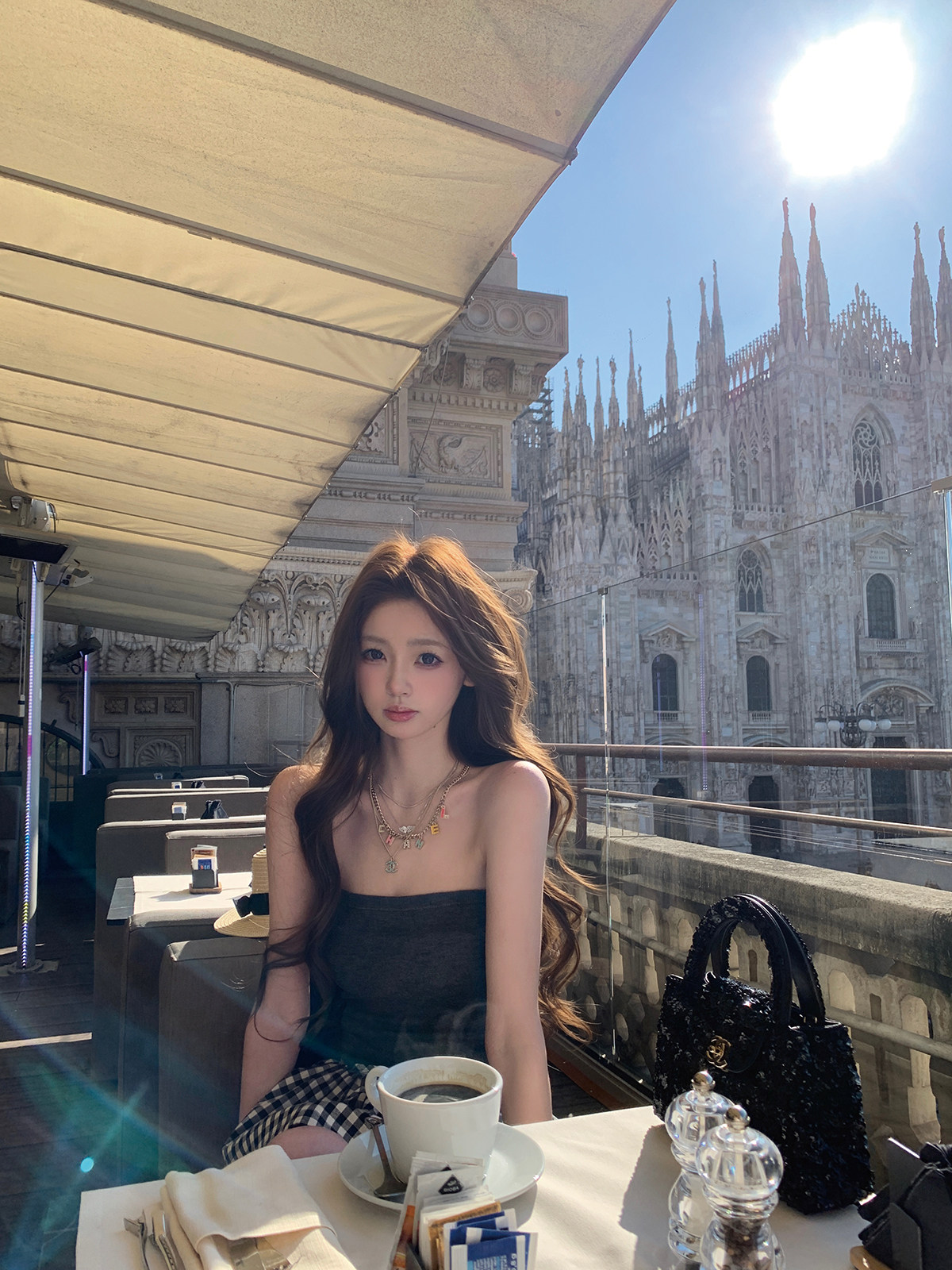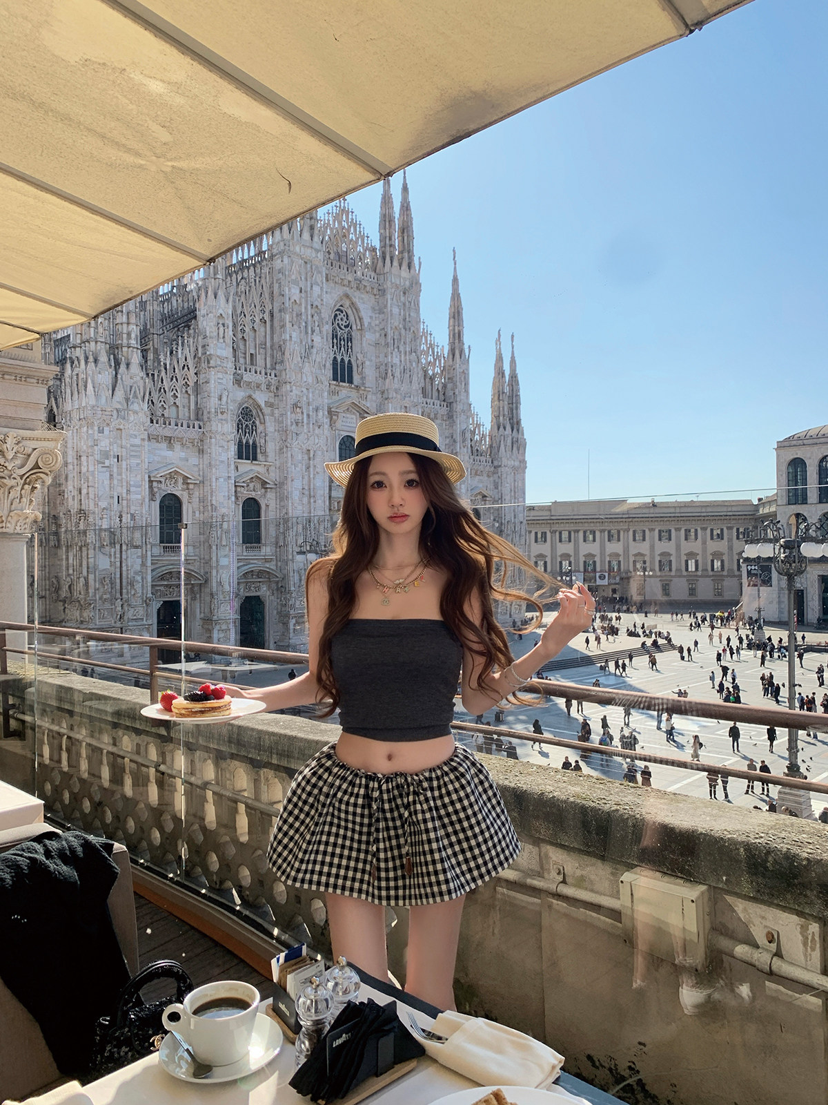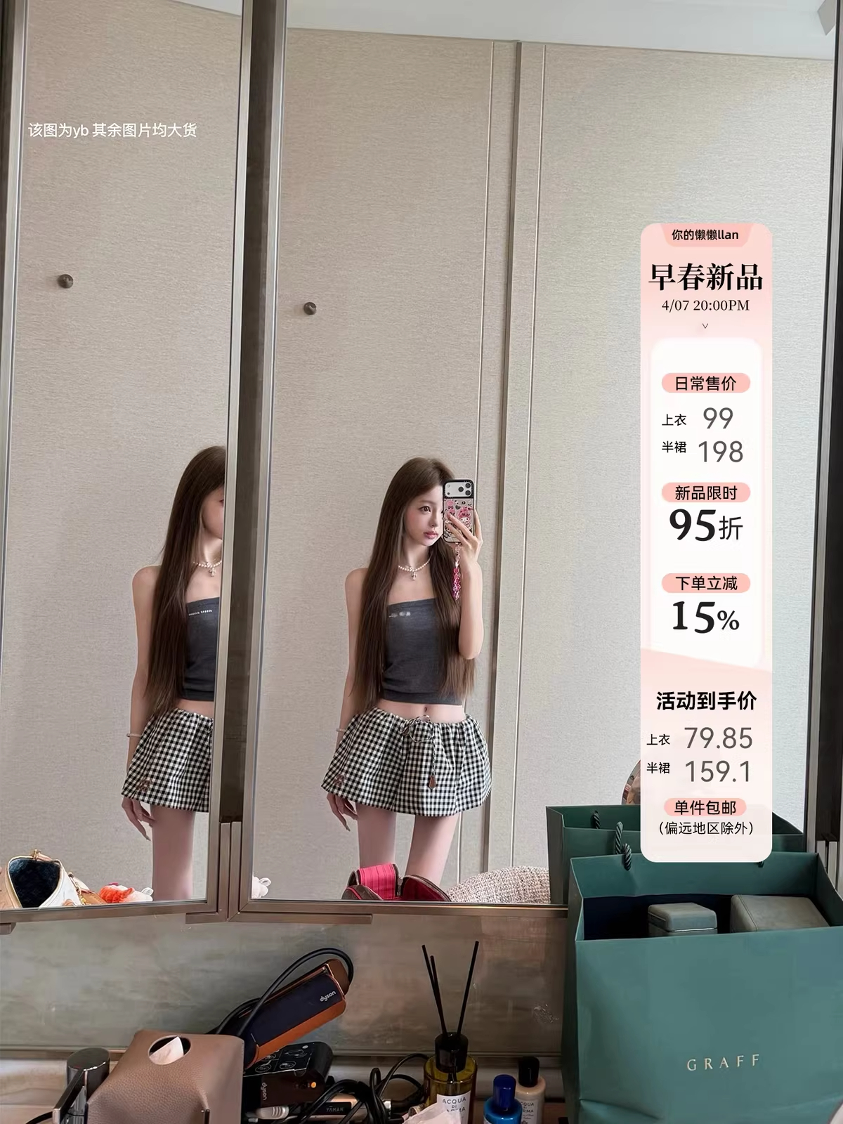 04 07 20 00 너 ~ 중 게으른 llan 사설 서비스 miu 세트 니트 튜브탑 체크무늬 반 스커트 세트 그룹