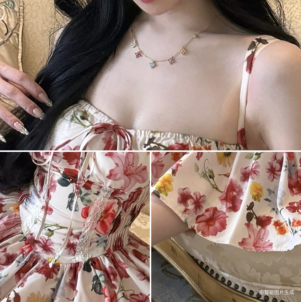 그리드 새싹 소녀 린 린 있음 바쁜 귀여운 소녀 바람 몸매 가꾸기 슬림해 보이는 레이스 레이스 절묘한 투피스 세트