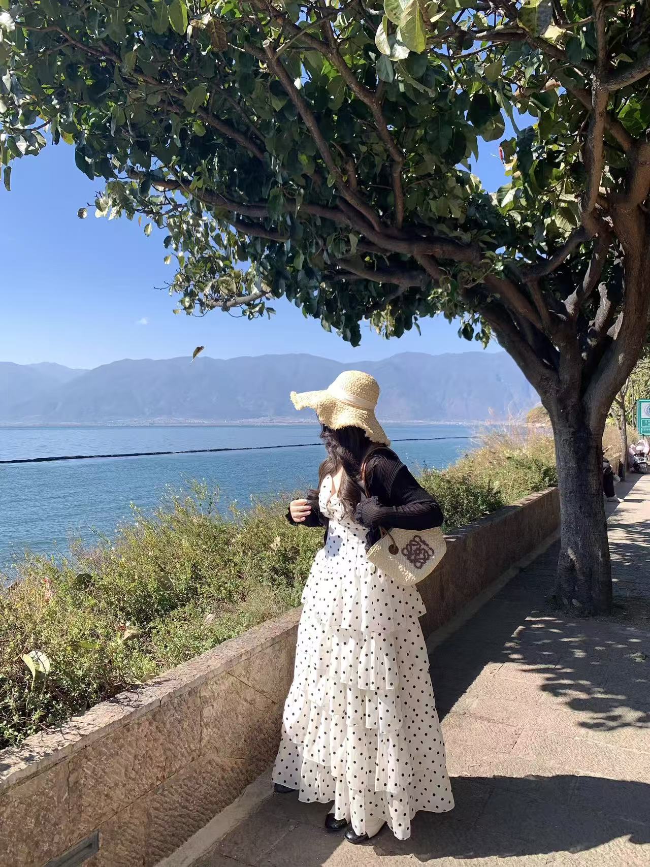 실사 빅 사이즈 프랑스식 차 휴식 부드러운 품격 V넥 여성 드레스 허리 수축 슬림해 보이는 디자인 센스 해변 롱 스커트