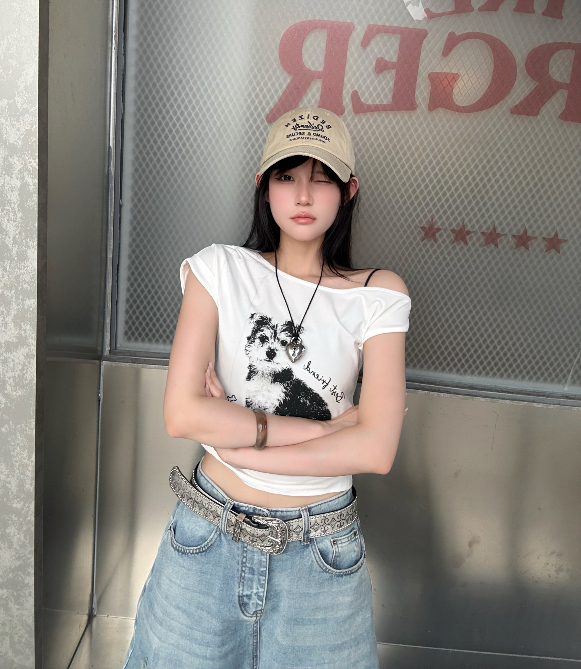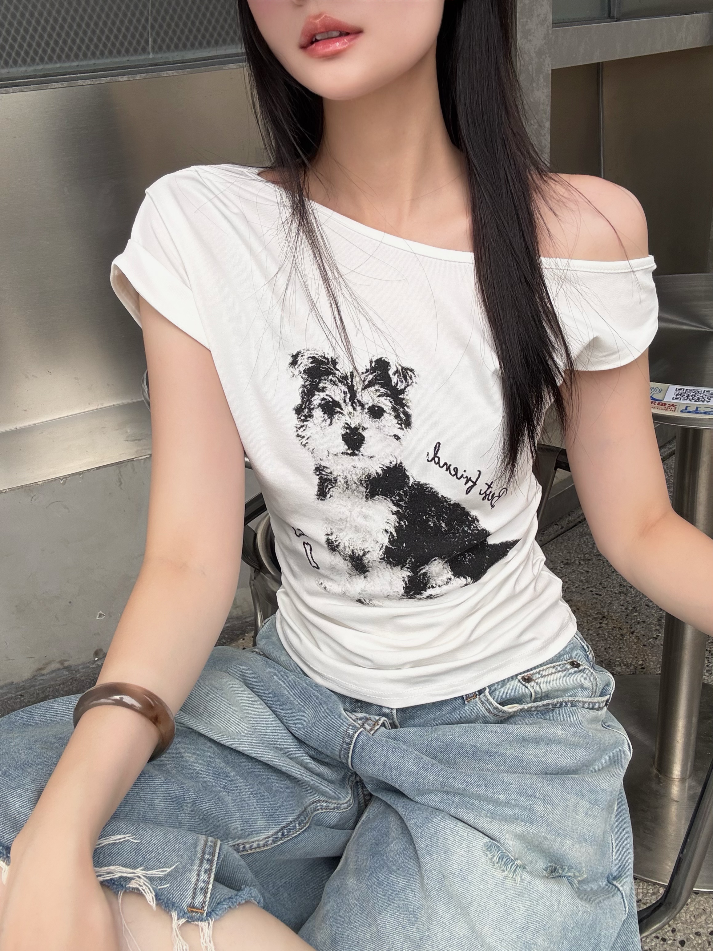 실사 정가 몸매 가꾸기 슬림해 보이는 긍정적 인 어깨 반팔 티셔츠 프린트 레오파드 무늬 로우 웨이스트 미니 스커트 반신 스커트 여성 여름