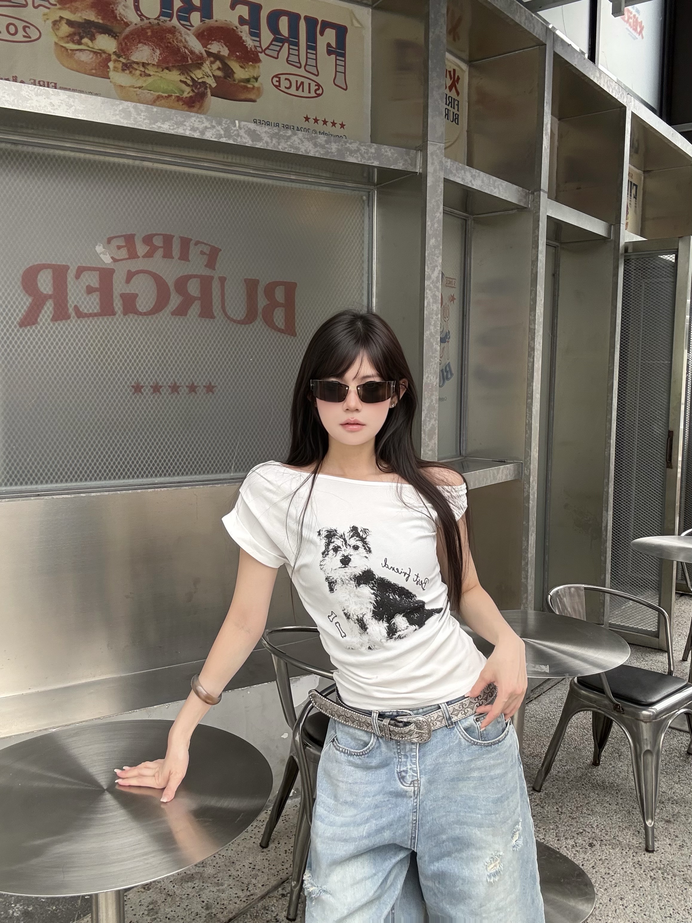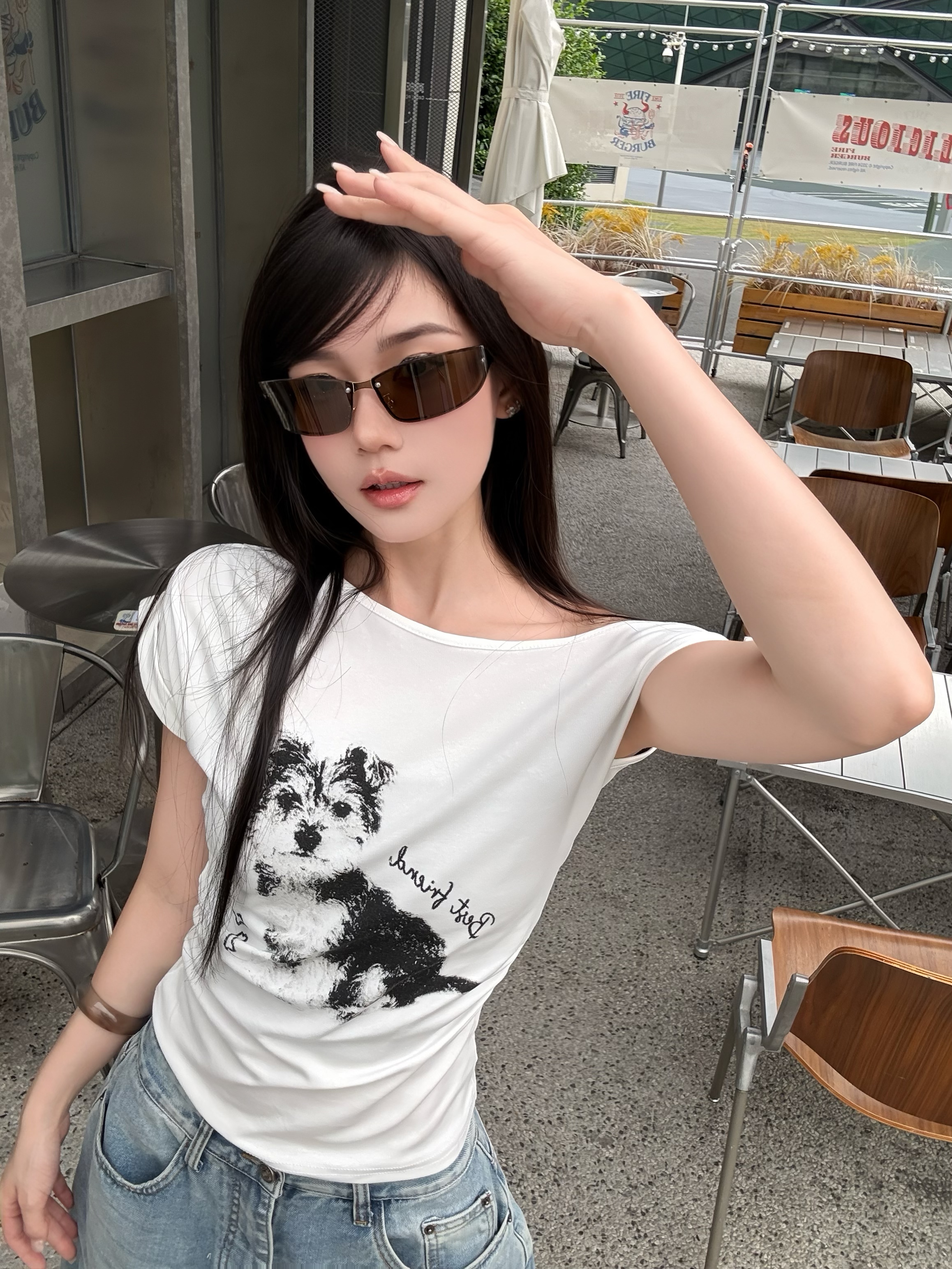 실사 정가 2026 여름 순수한 욕망 다용도 u 칼라 패키지 버클 타이트 반팔 티셔츠 여성 핫걸 몸매 가꾸기 쇼트 스타일 맨위