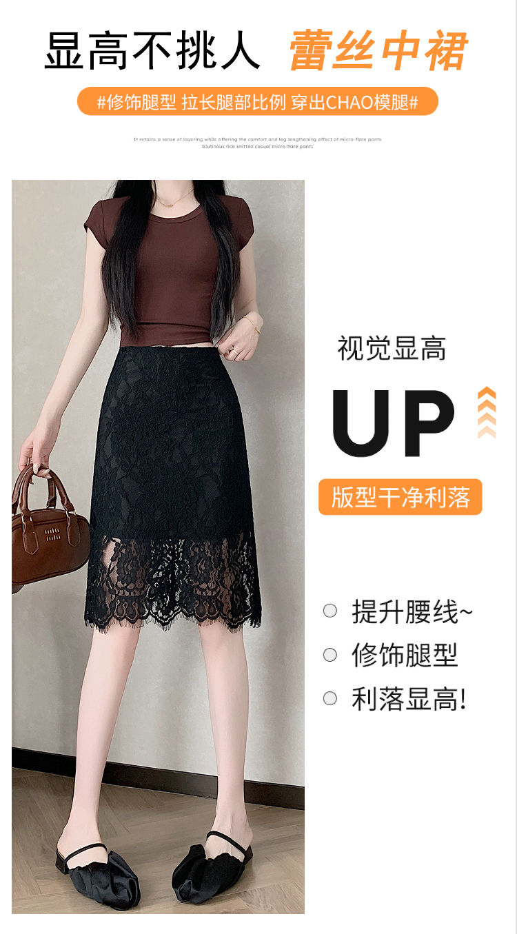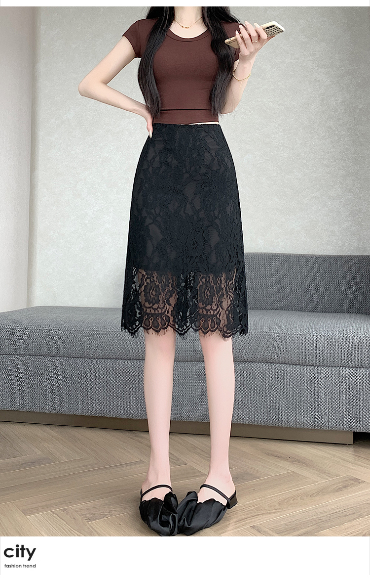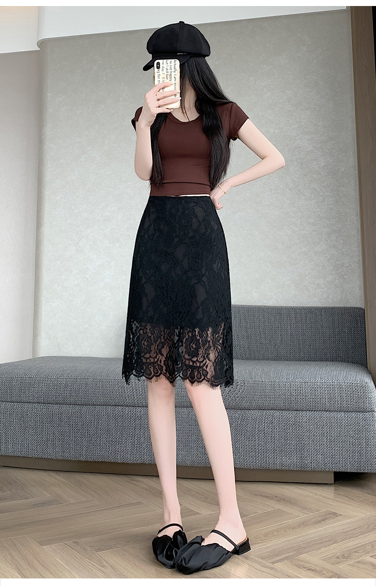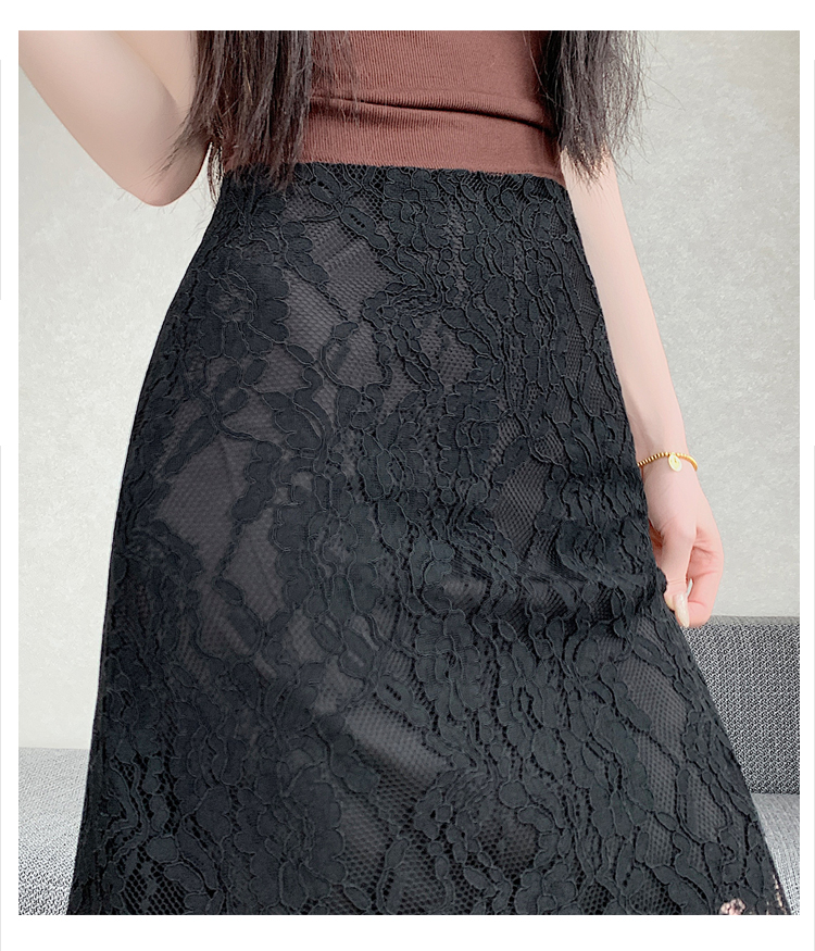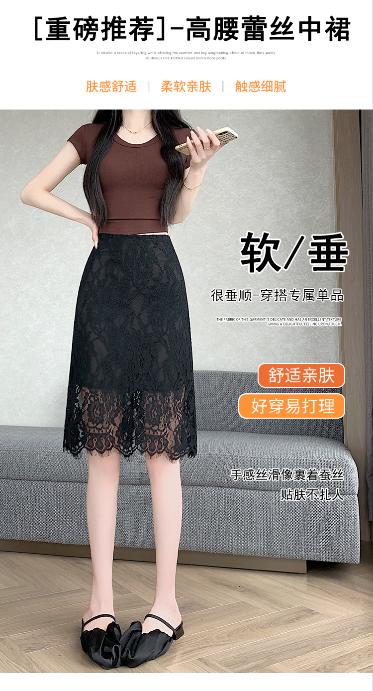 실사 2026 여름 새로운 한국 스타일 하이웨이스트 부드러운 바람 망사 패치워크 레이스 중간 스커트 패션 다용도 A라인 스커트