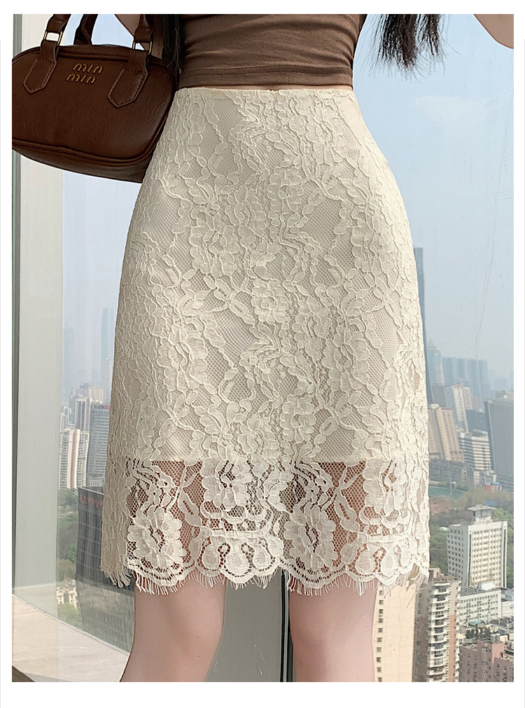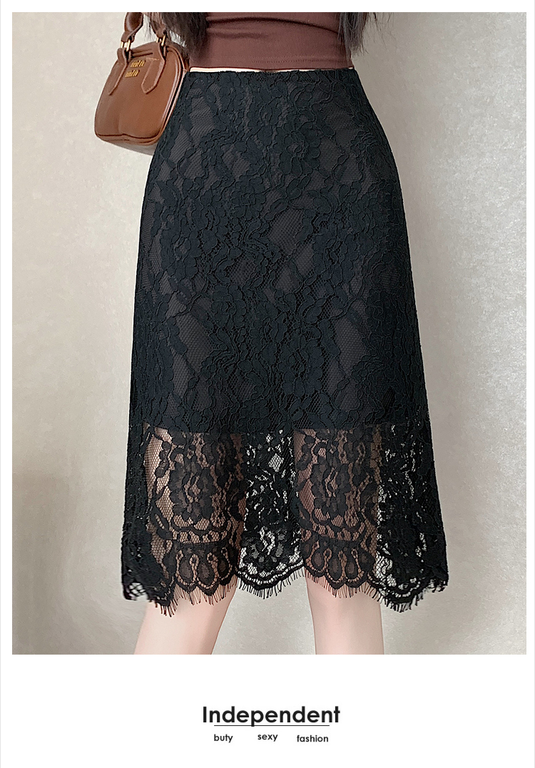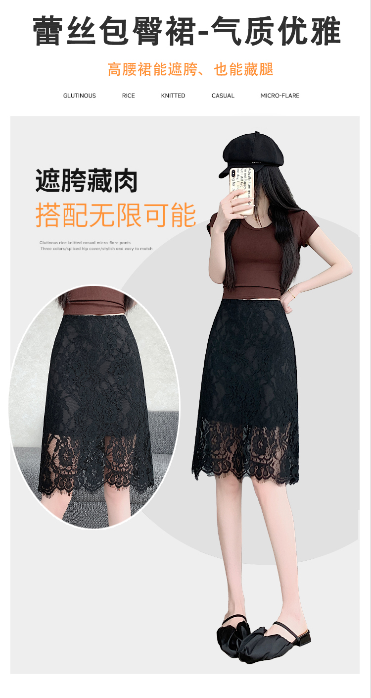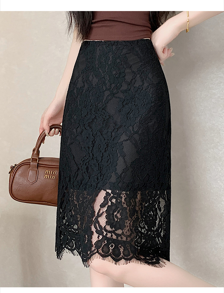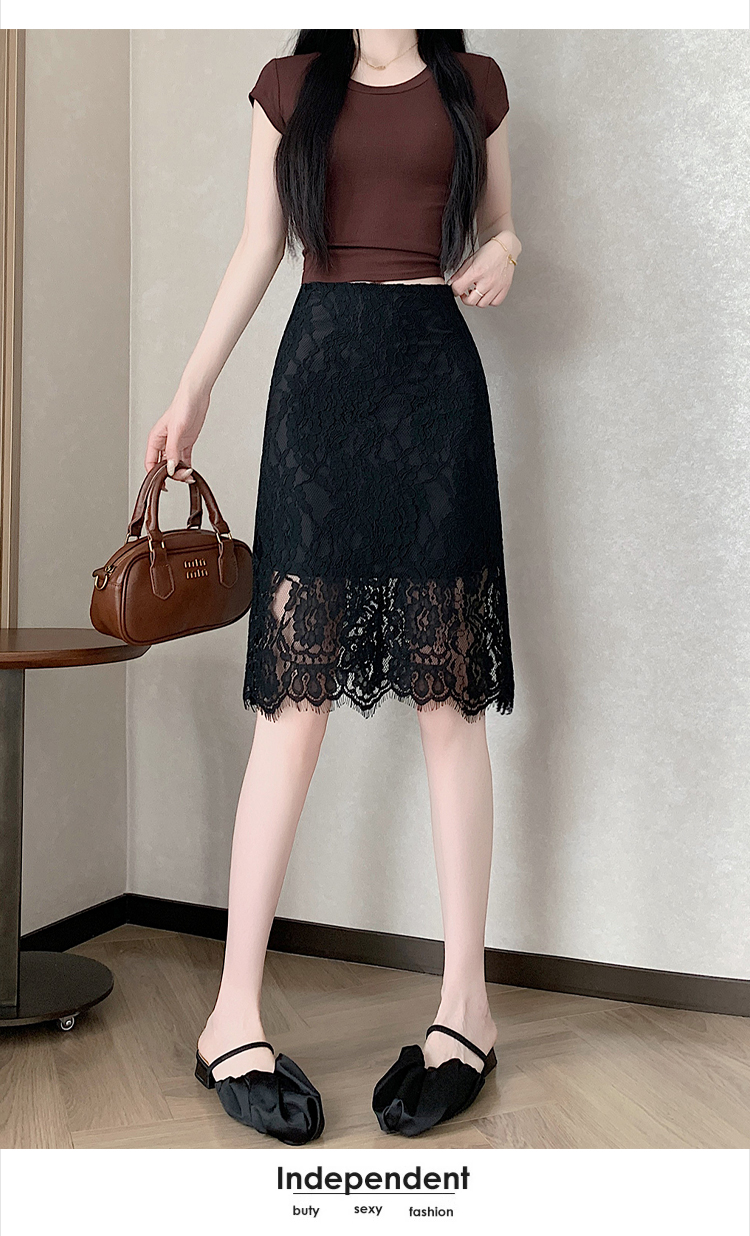 실사 2026 여름 새로운 한국 스타일 하이웨이스트 부드러운 바람 망사 패치워크 레이스 중간 스커트 패션 다용도 A라인 스커트