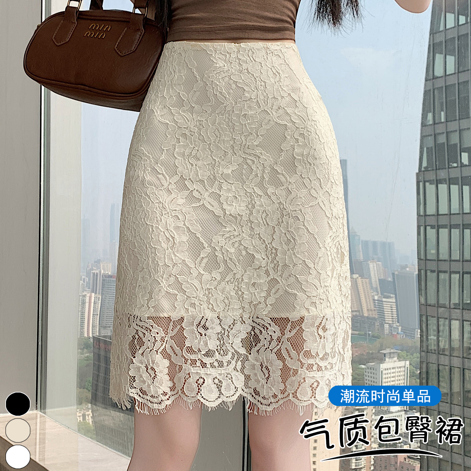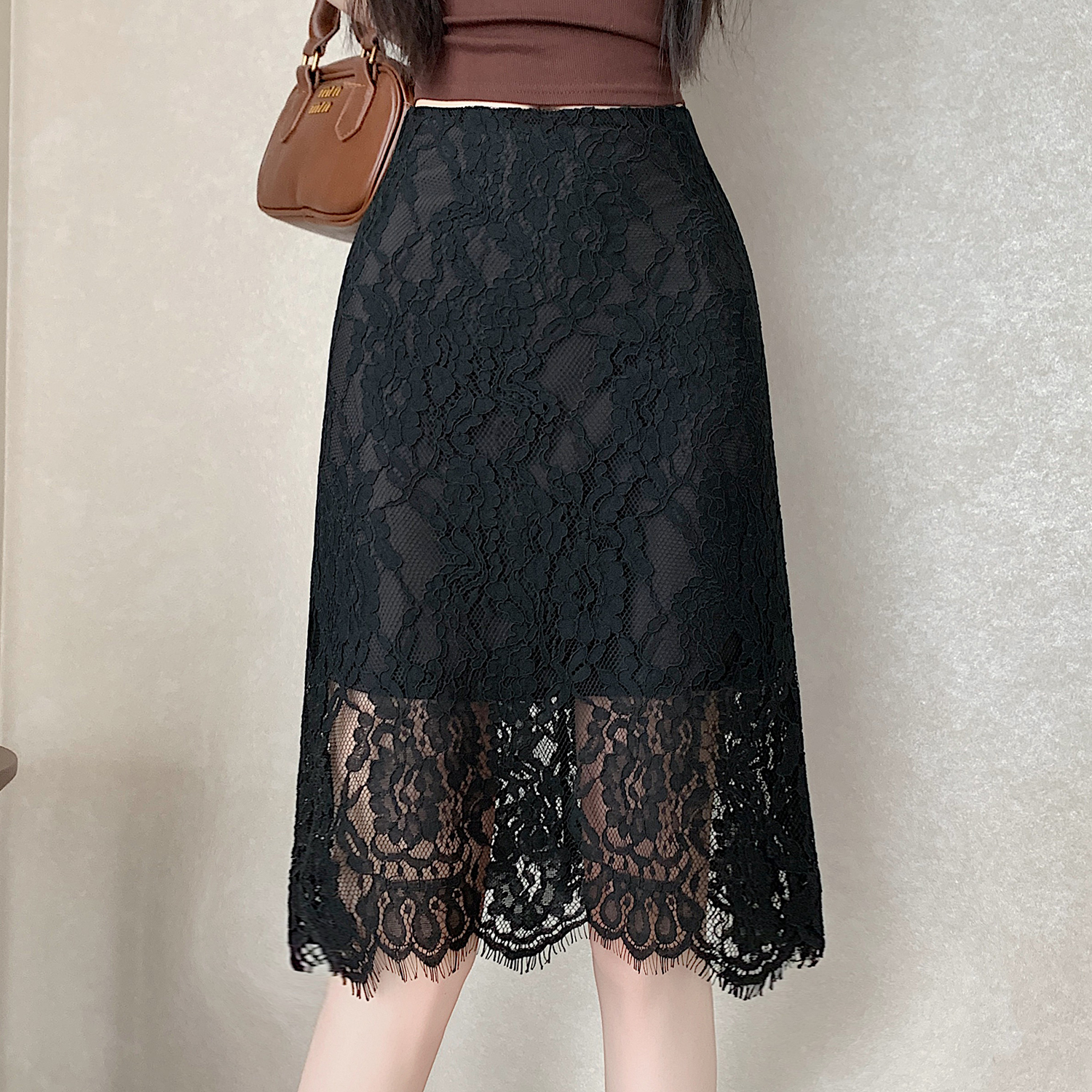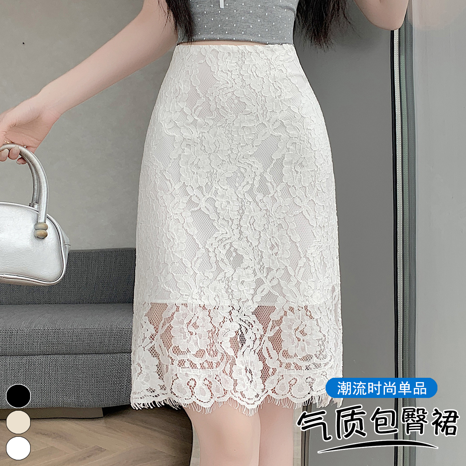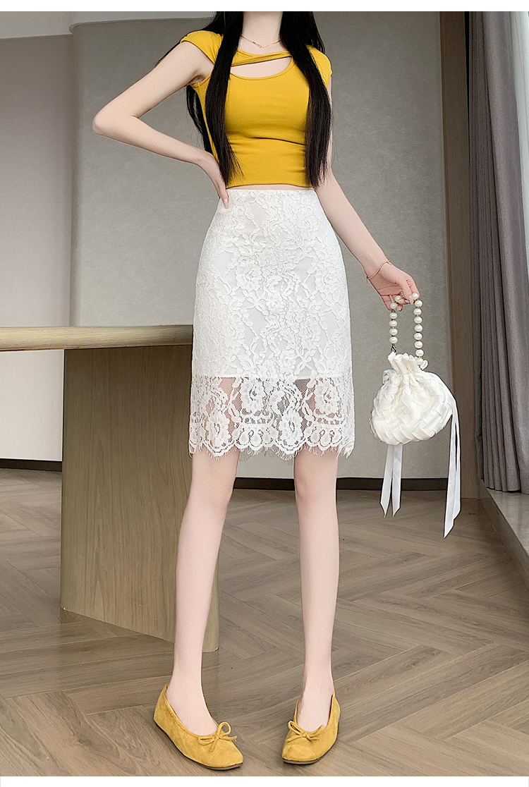 실사 2026 여름 새로운 한국 스타일 하이웨이스트 부드러운 바람 망사 패치워크 레이스 중간 스커트 패션 다용도 A라인 스커트