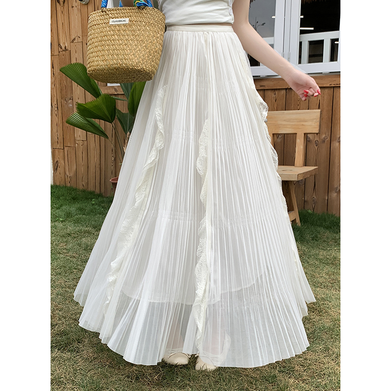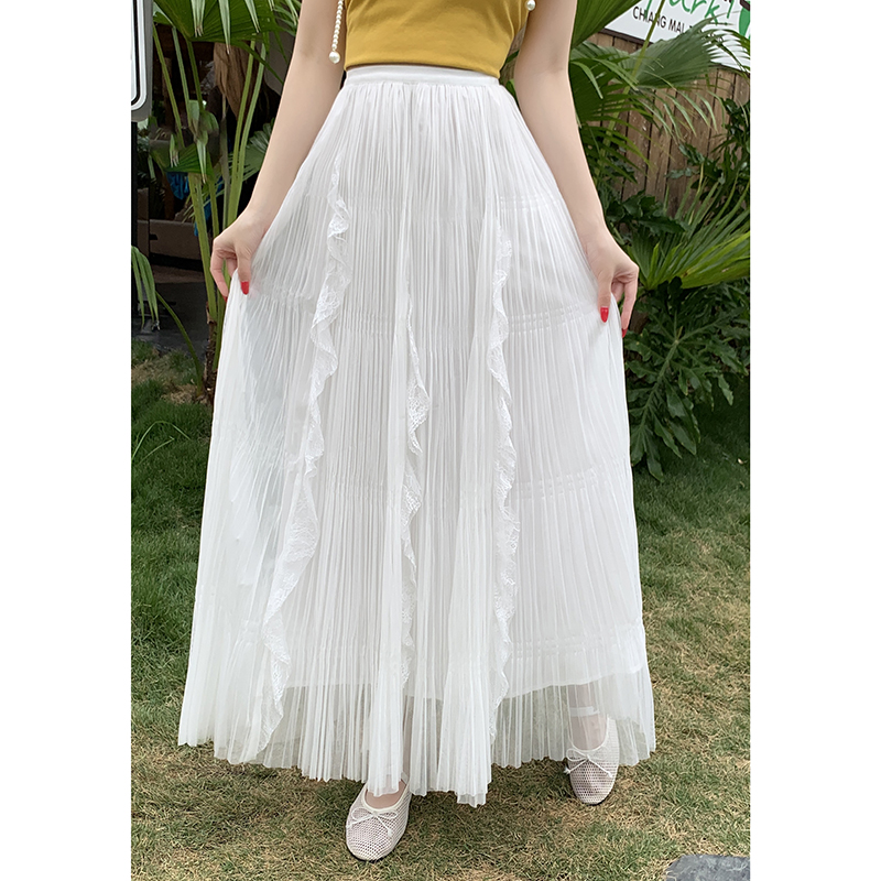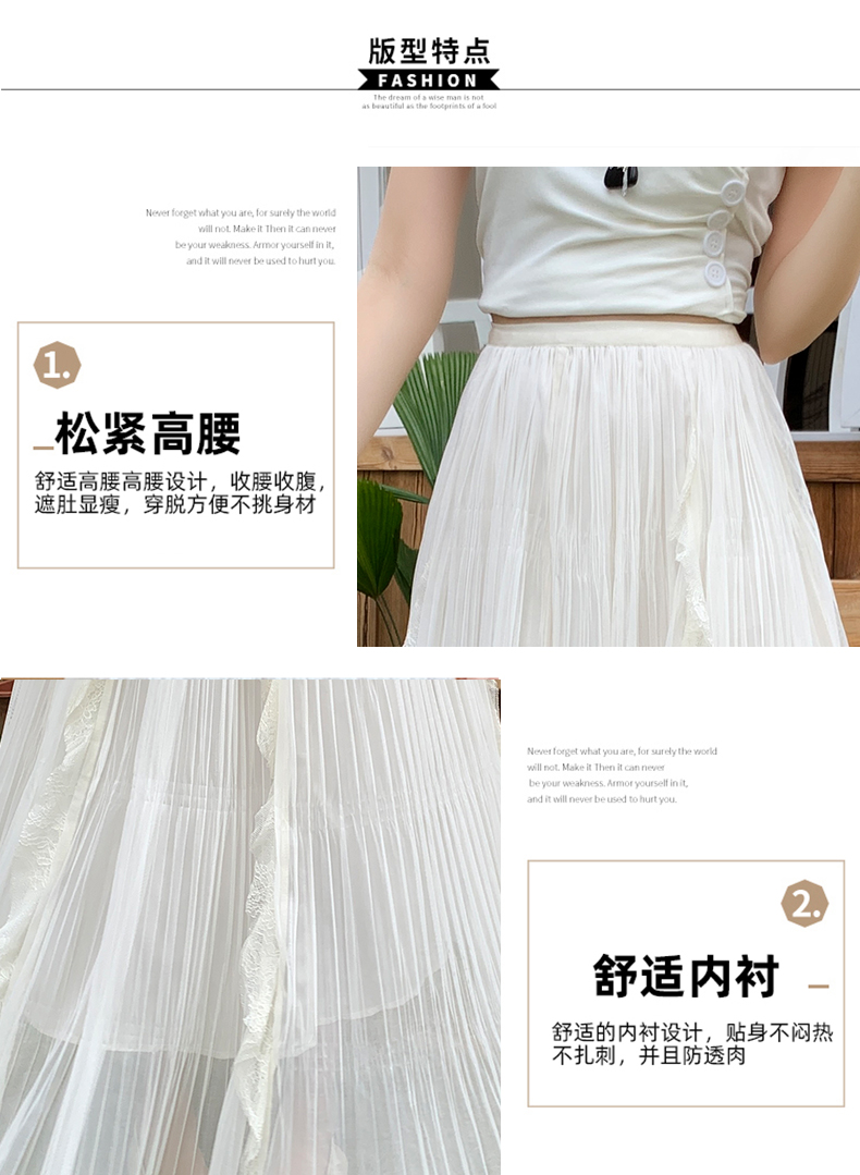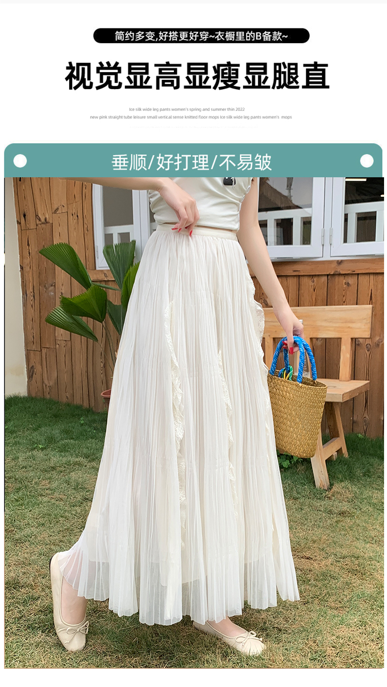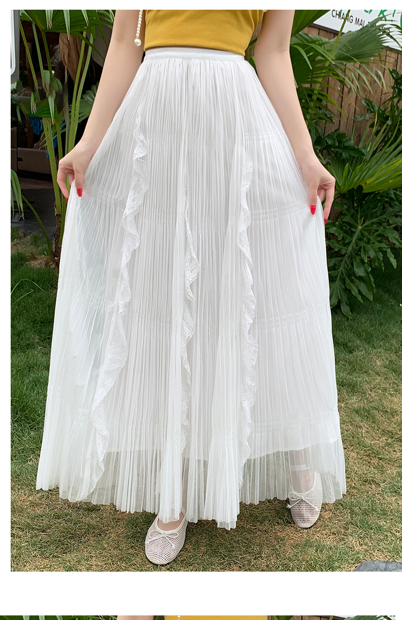 실사 높음 물품 레이스 조각 다시마 치마 한국 스타일 부드러운 품격 슬림해 보이는 중간 길이 거즈 스커트 슈퍼 요정 반신 스커트 여성
