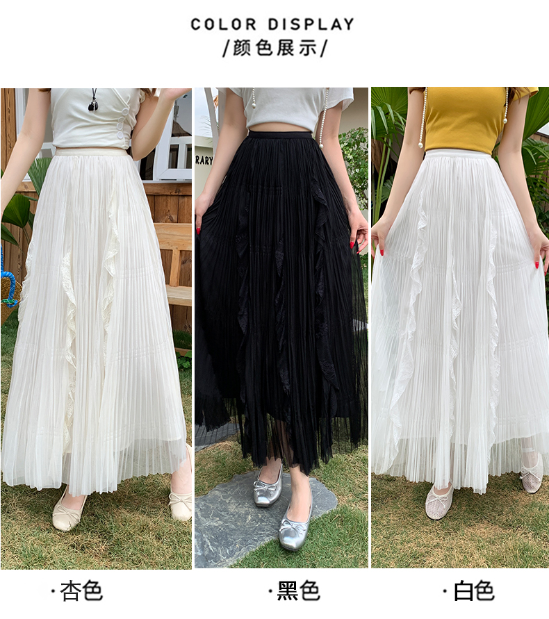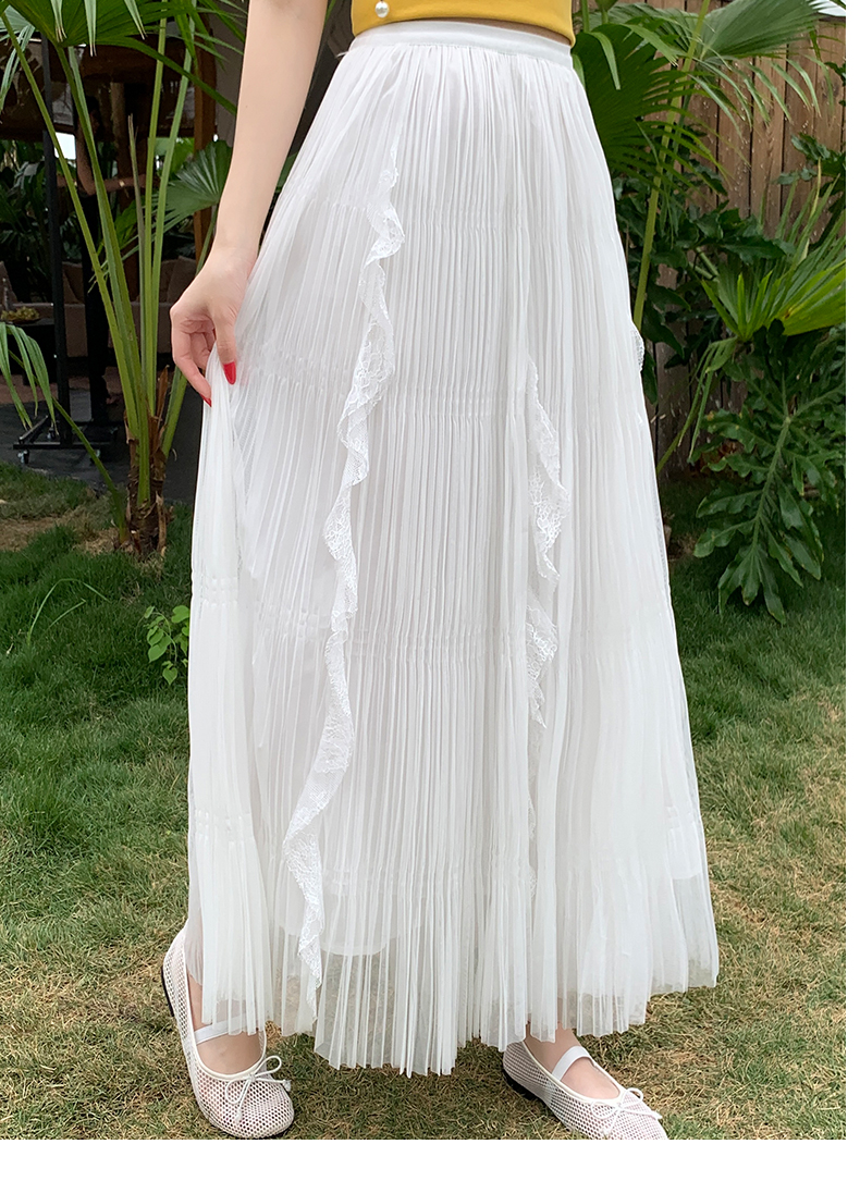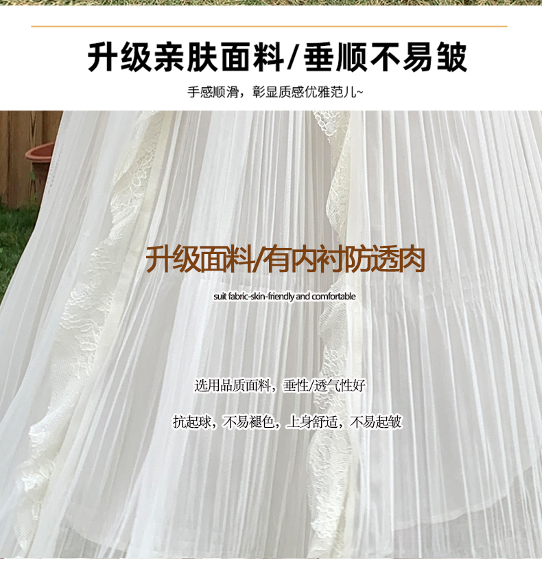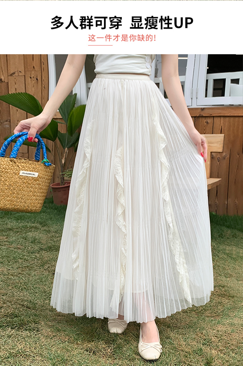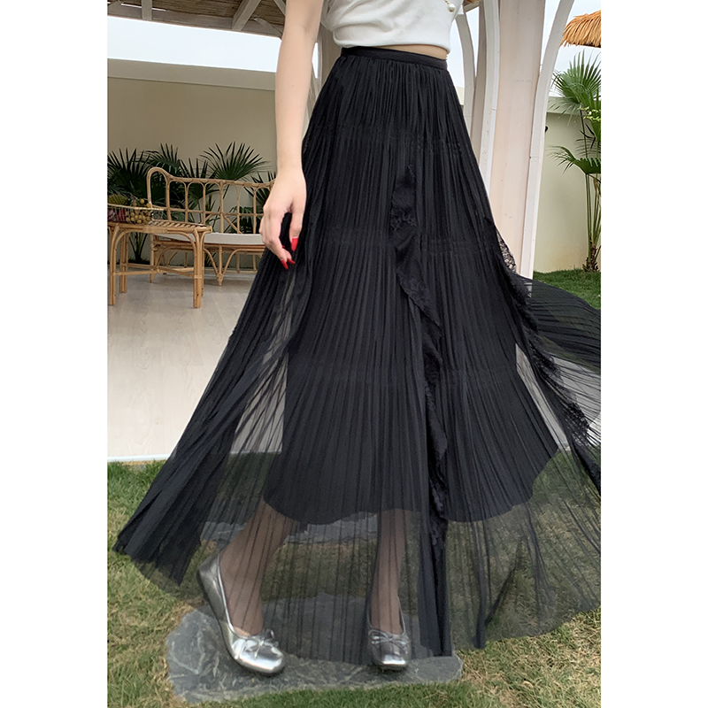 실사 높음 물품 레이스 조각 다시마 치마 한국 스타일 부드러운 품격 슬림해 보이는 중간 길이 거즈 스커트 슈퍼 요정 반신 스커트 여성