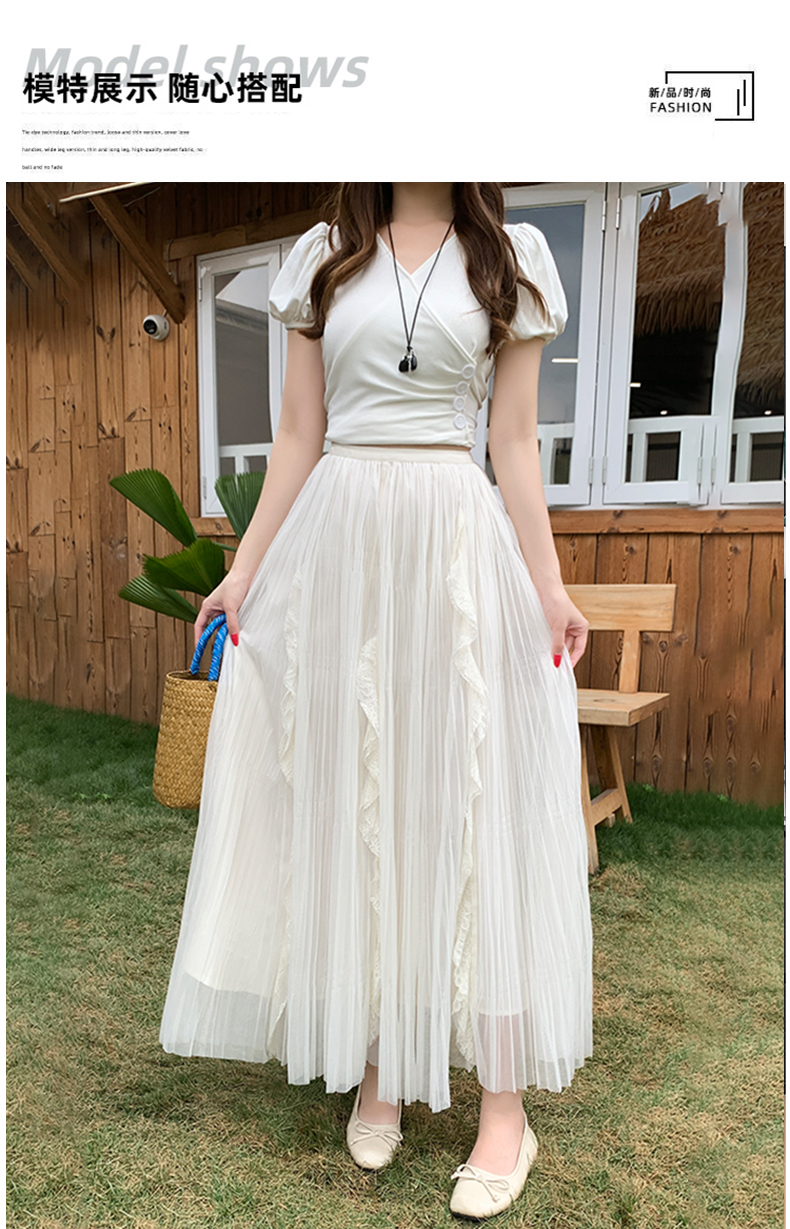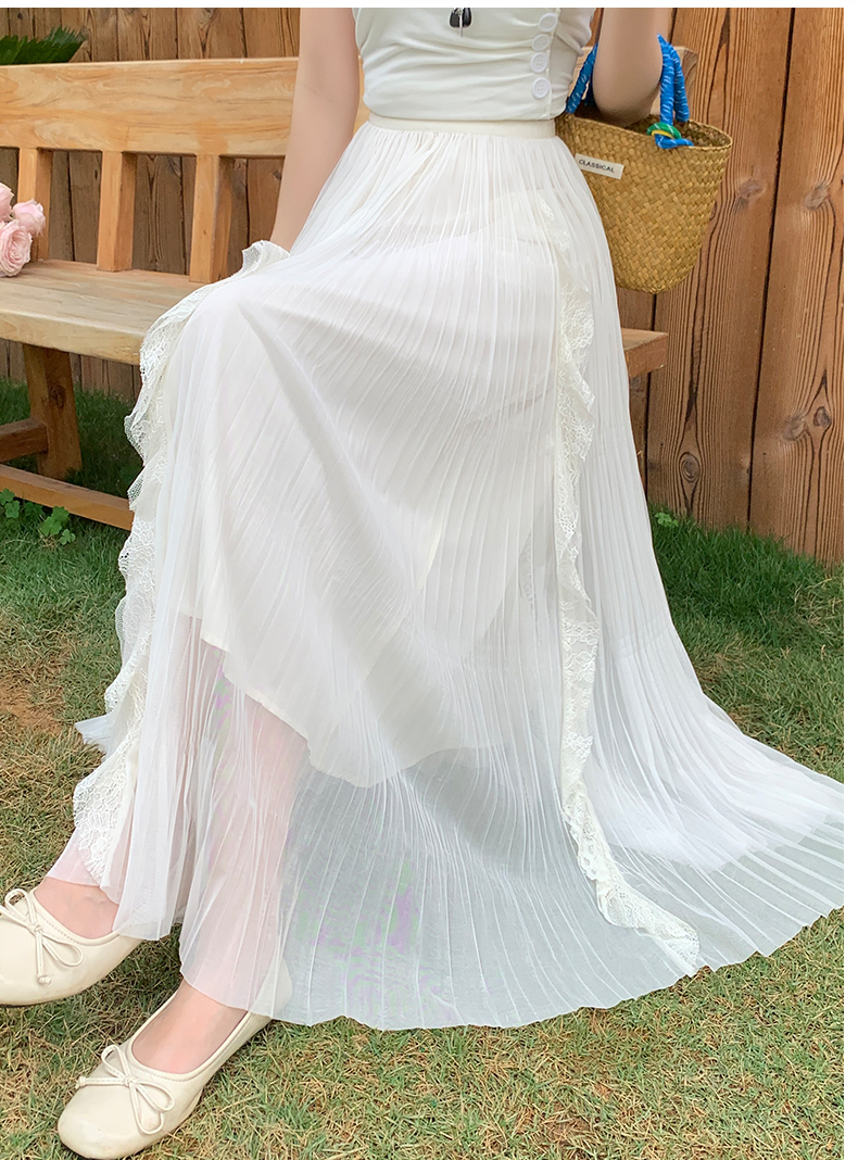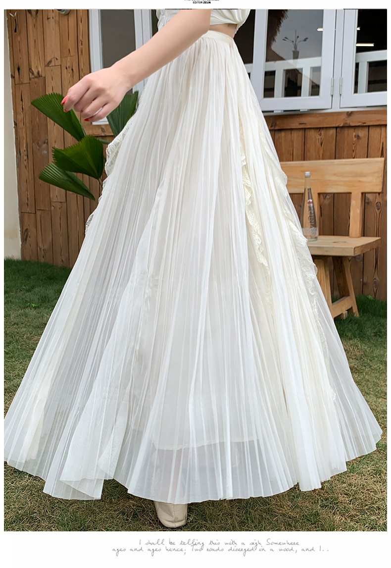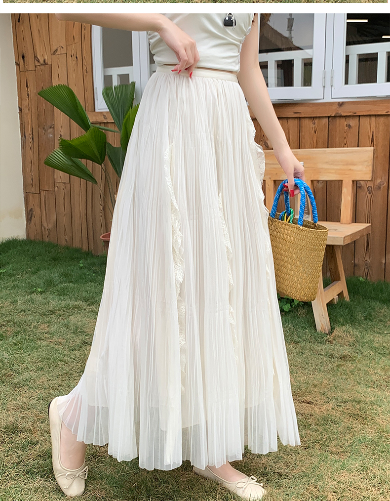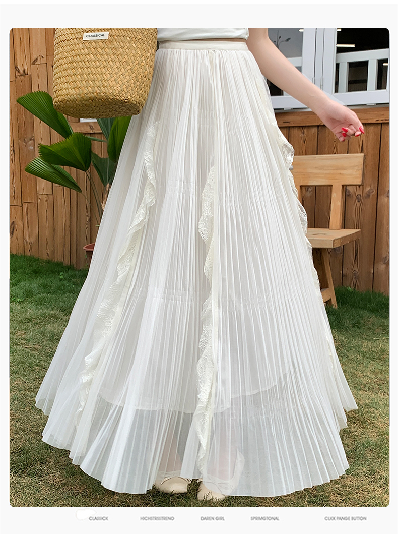실사 높음 물품 레이스 조각 다시마 치마 한국 스타일 부드러운 품격 슬림해 보이는 중간 길이 거즈 스커트 슈퍼 요정 반신 스커트 여성