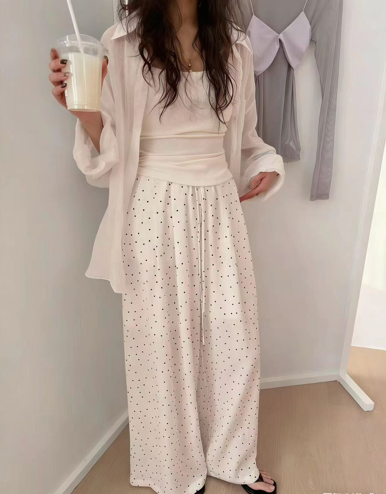 여름 섹션 새로운 느긋한 바람 슬림해 보이는 대 와이드 다리 캐주얼 바지 여성