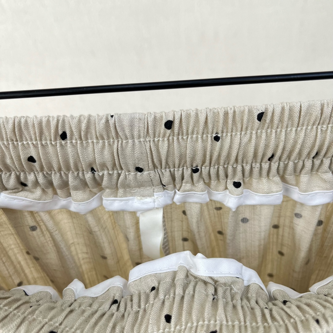 한국 스타일 프릴 9 포인트 꽃밭 바지 여성 여름 디자인 센스 허리밴드 루즈핏 와이드 레깅스 바지