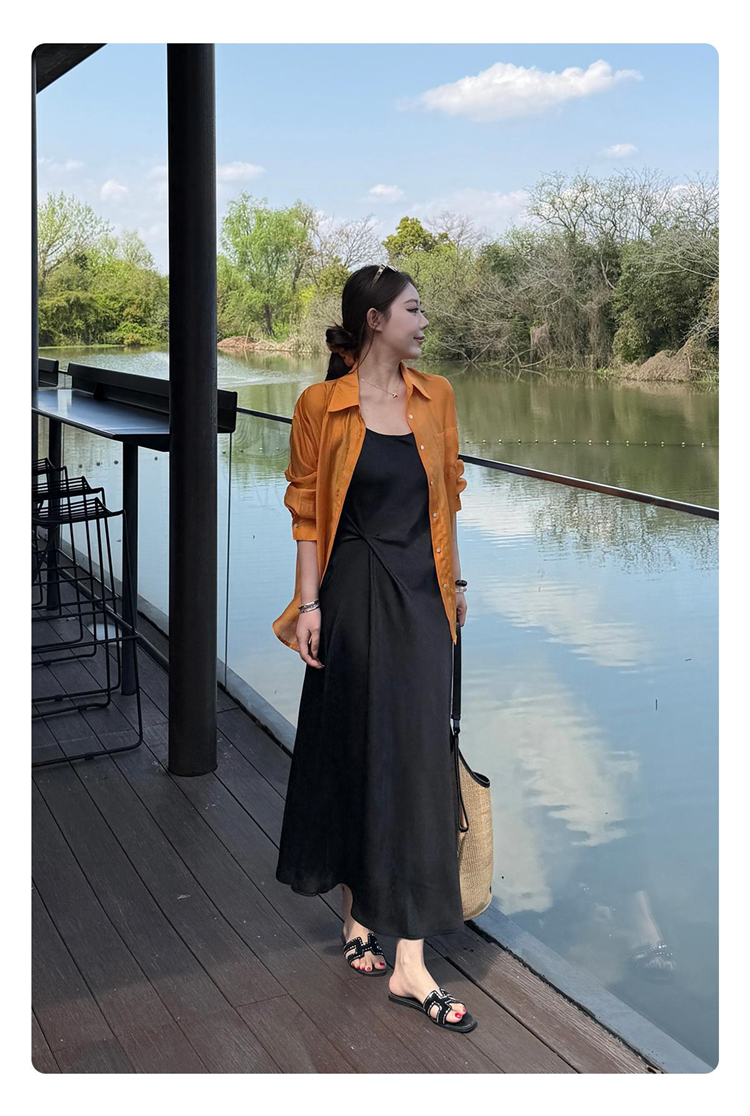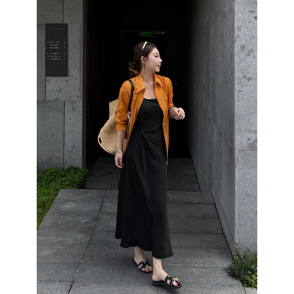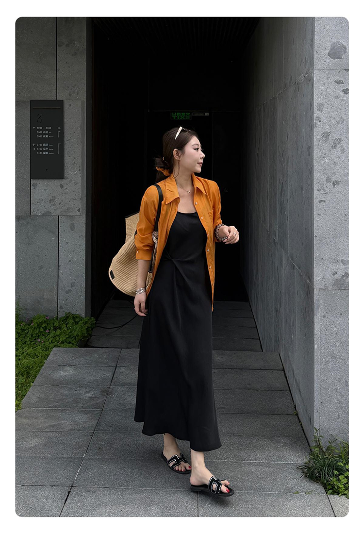 새로운 품격 고급 프랑스식 도트 무늬 V넥 슬립 다용도 슬림해 보이는 스택 착용 드레스