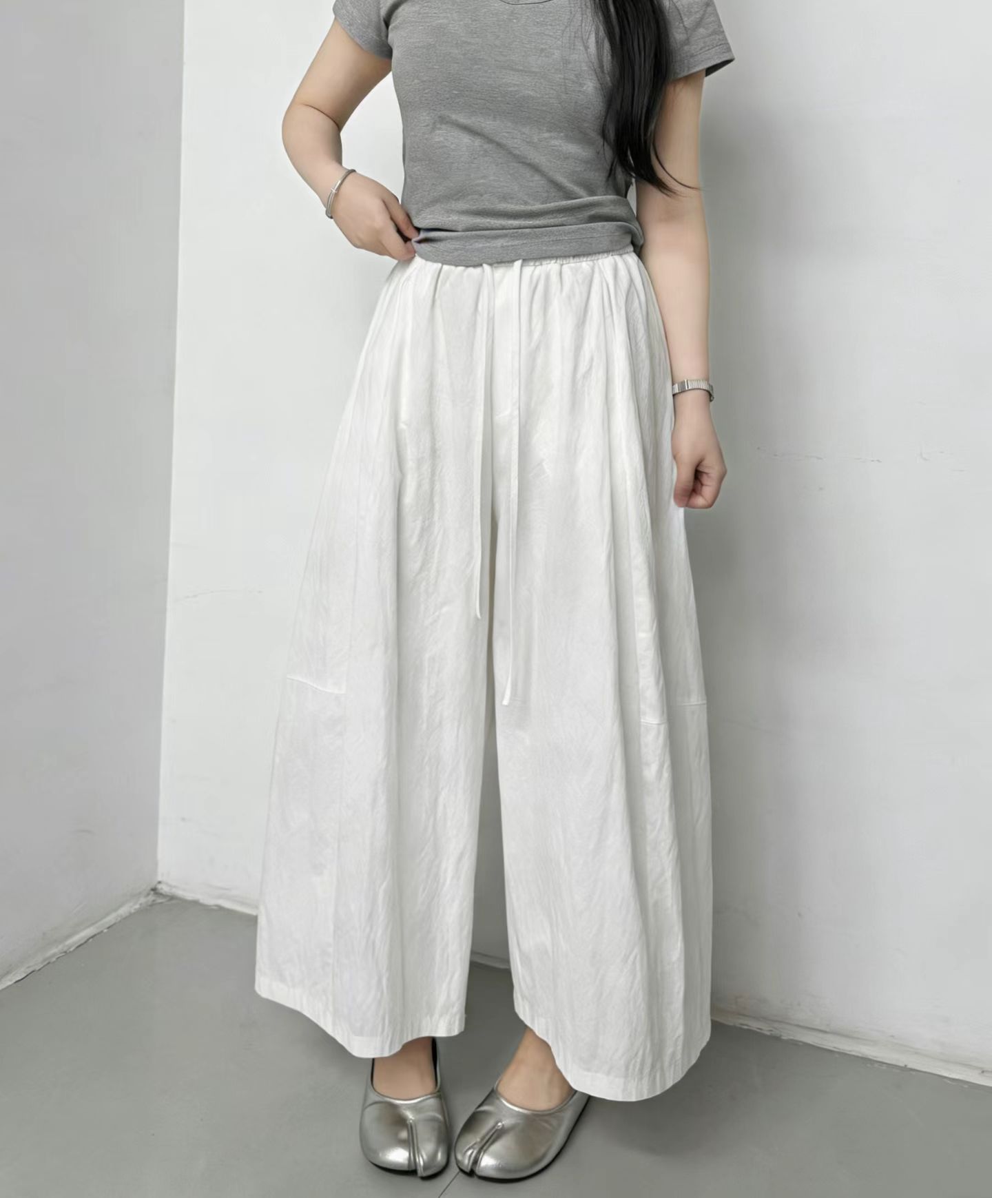 물리적 인지도 있음 업데이트 한 부서 하이웨이스트 캐주얼 바지 와이드 레그 팬츠 원 바오 바지