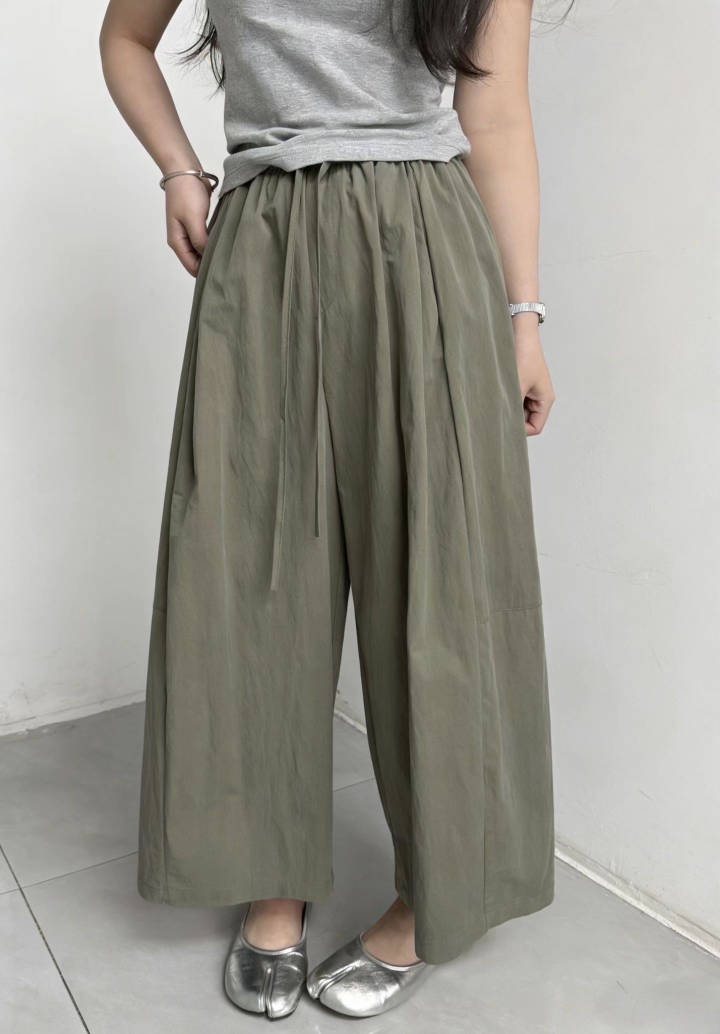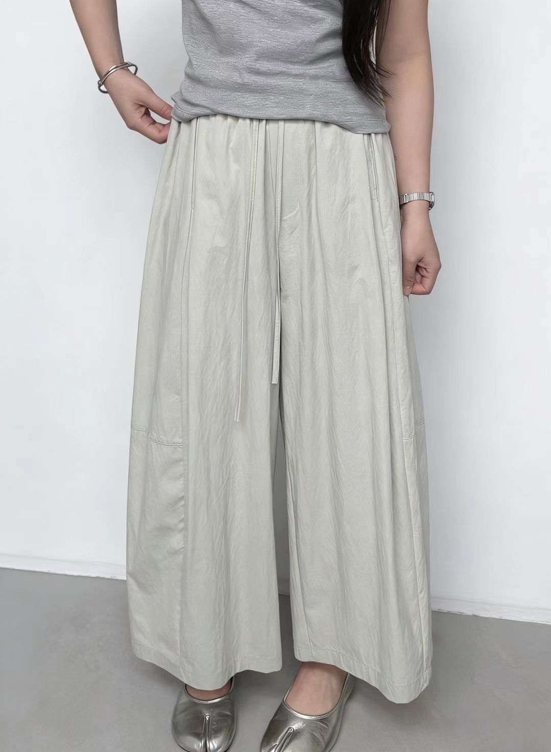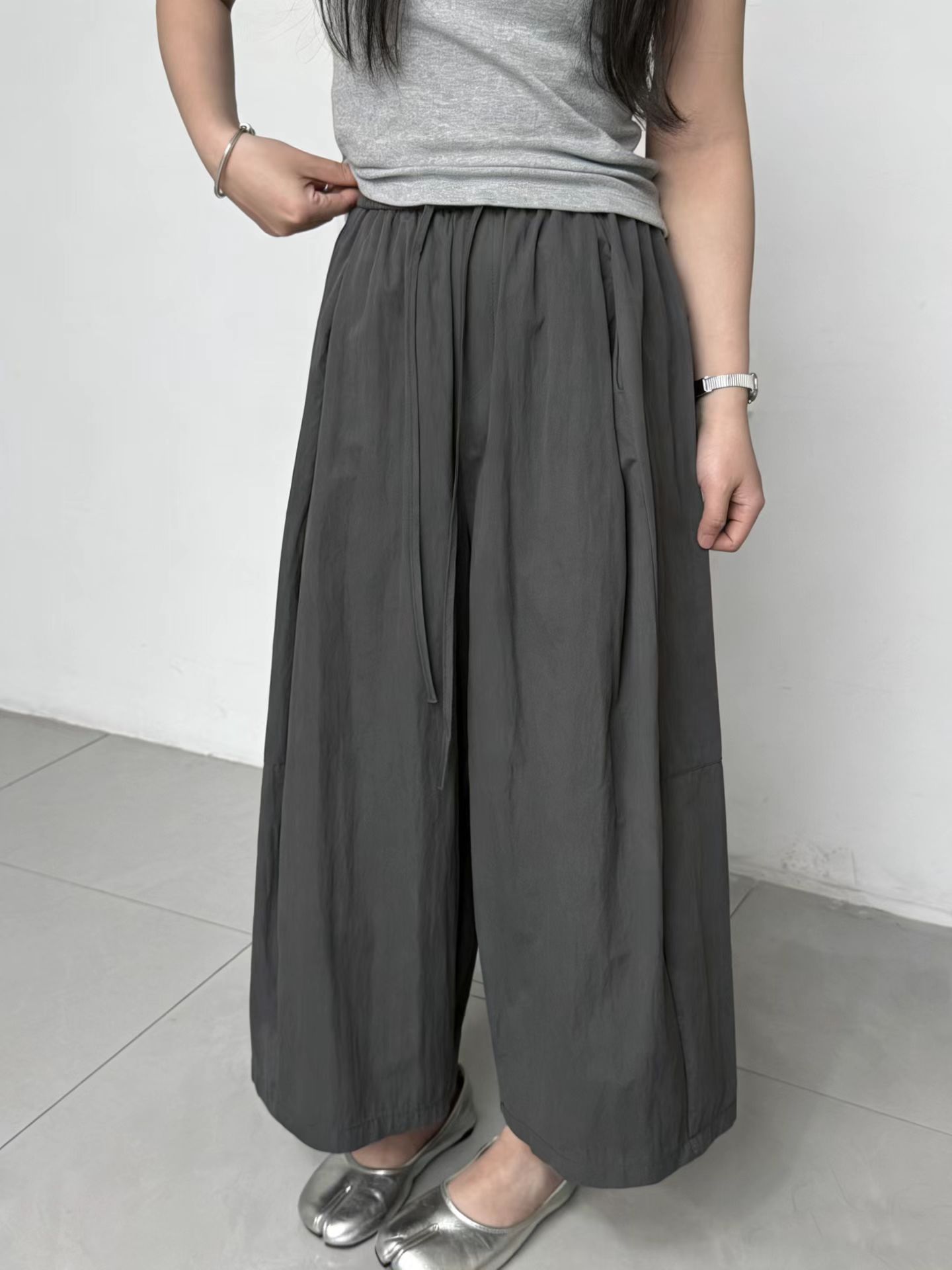 물리적 인지도 있음 업데이트 느긋한 바람 하이웨이스트 펌프 로프 루즈핏 캐주얼 바지 여성 여름 속도 건조한 바닥 청소 와이드 레그 팬츠