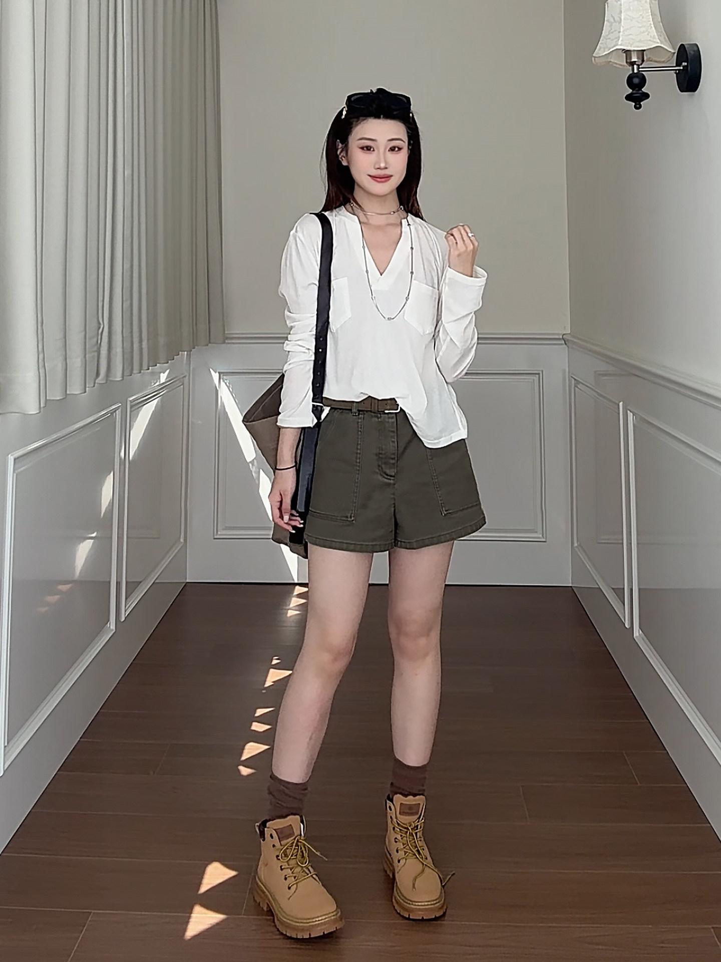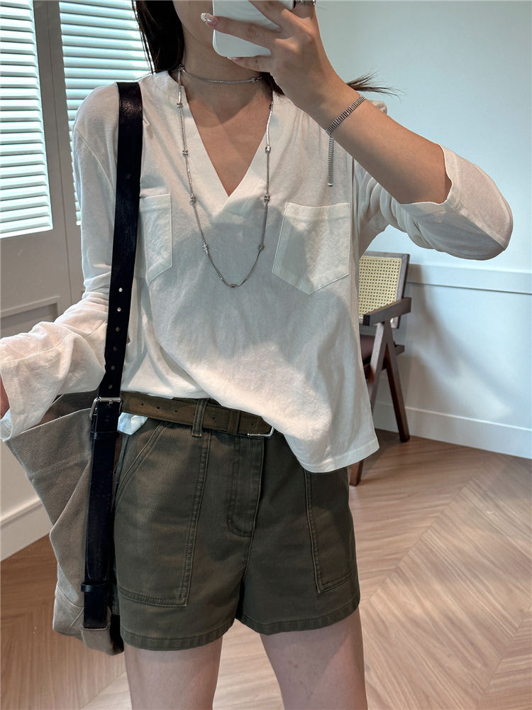광장 칼라 긍정적 인 어깨 반팔 티셔츠 여름 허리 수축 슬림해 보이는 맨위
