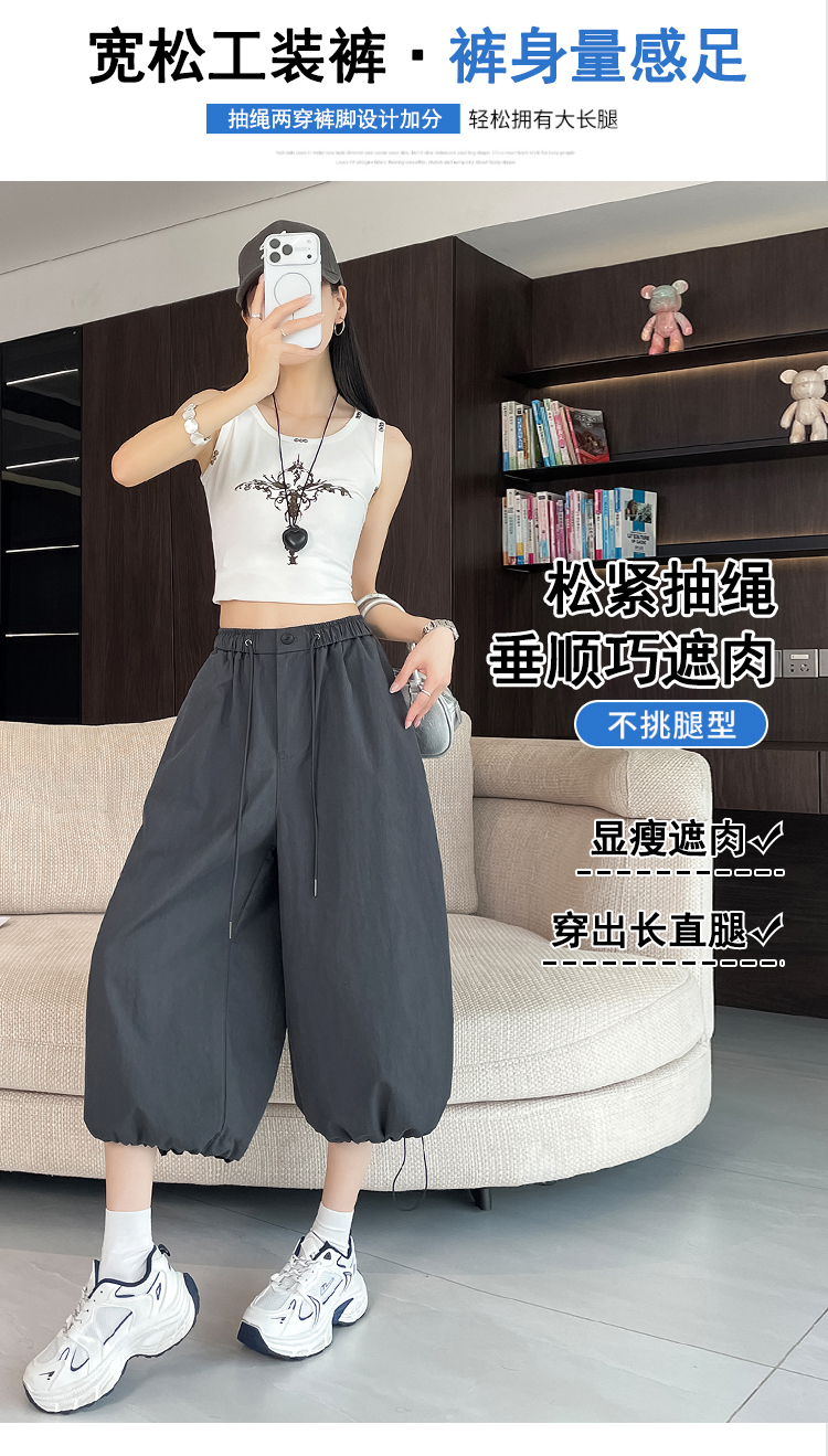 실사 디자인 센스 워크웨어 팬츠 여름 새로운 루즈핏 패션 다용도 바지 캐주얼 다용도 와이드 레그 팬츠