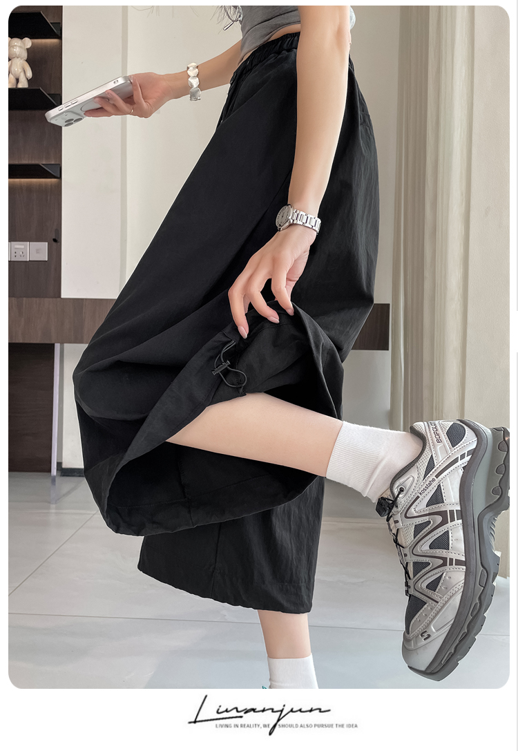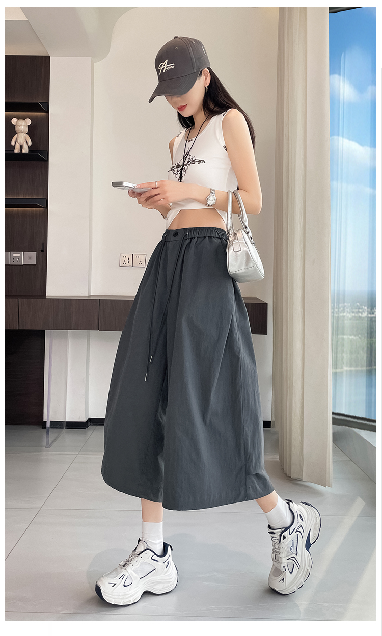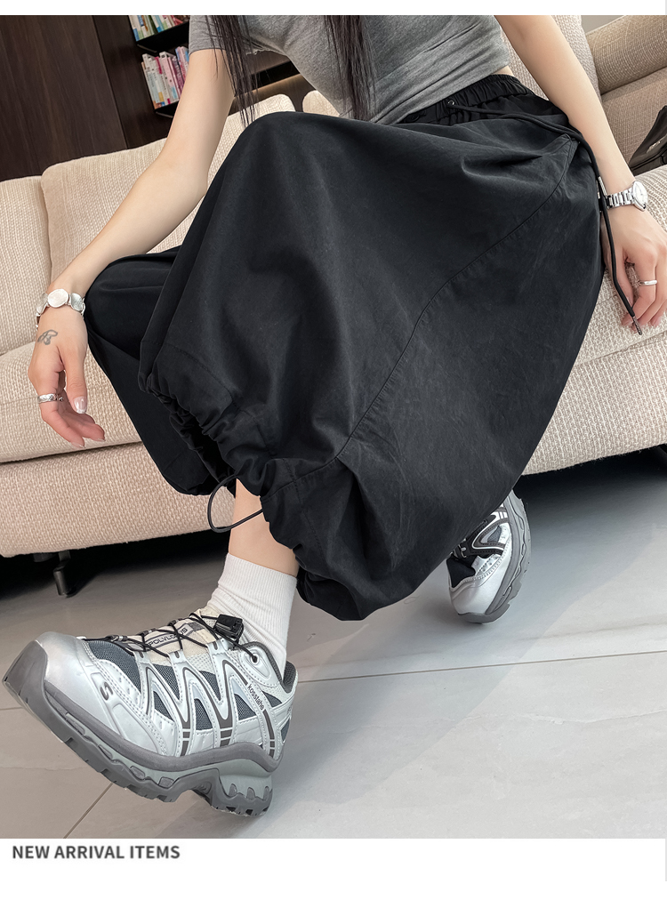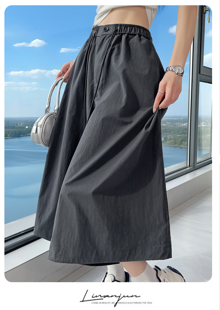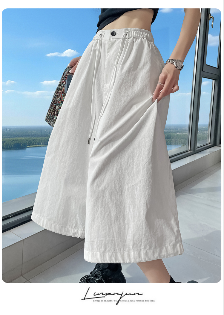 실사 질감 센스 한 마디 반신 스커트 2026 여름 하이웨이스트 슬림해 보이는 패션 다용도 레이스업 캐주얼 빅 플레어 스커트