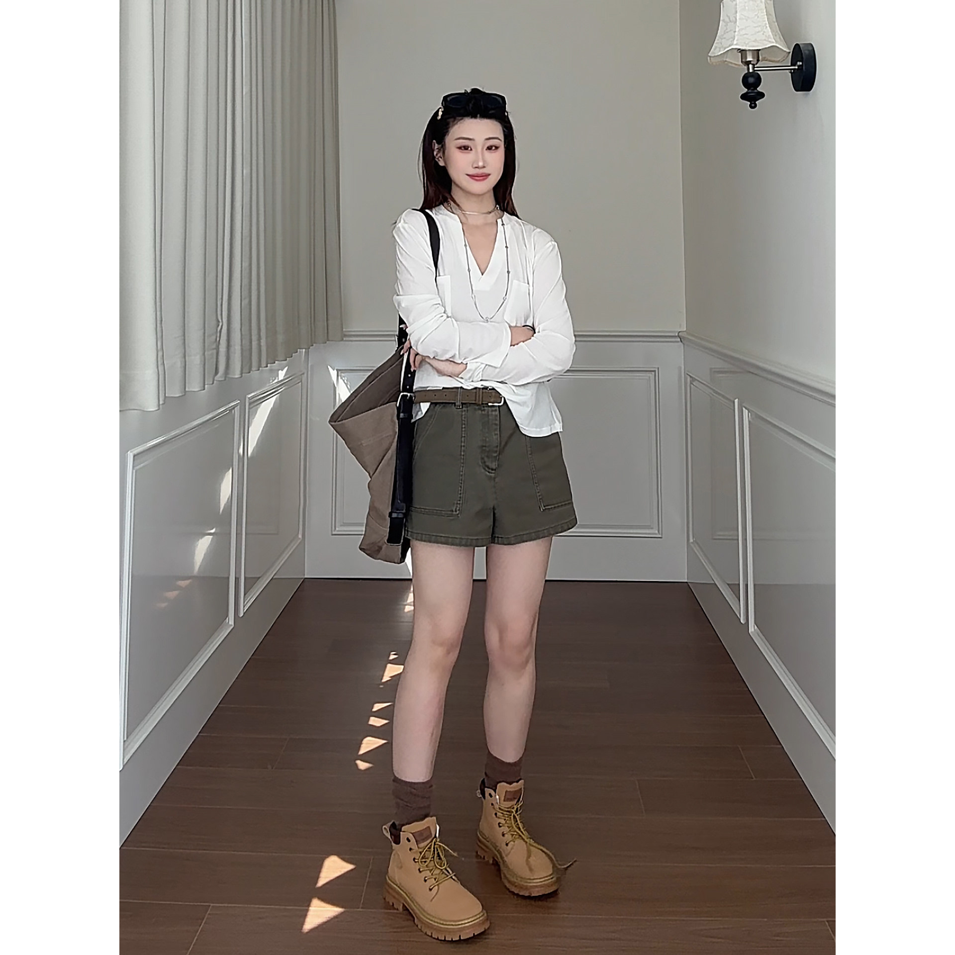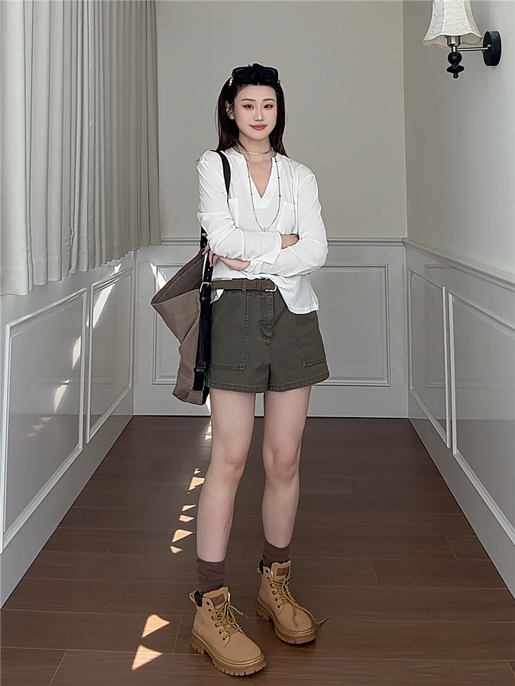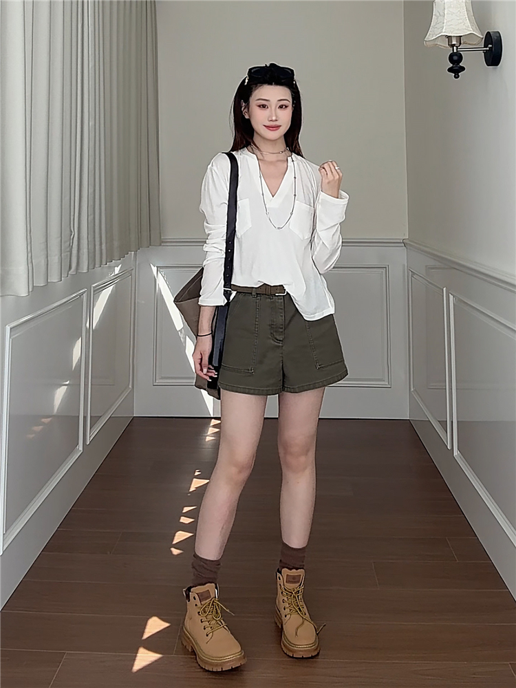광장 칼라 긍정적 인 어깨 반팔 티셔츠 여름 허리 수축 슬림해 보이는 맨위