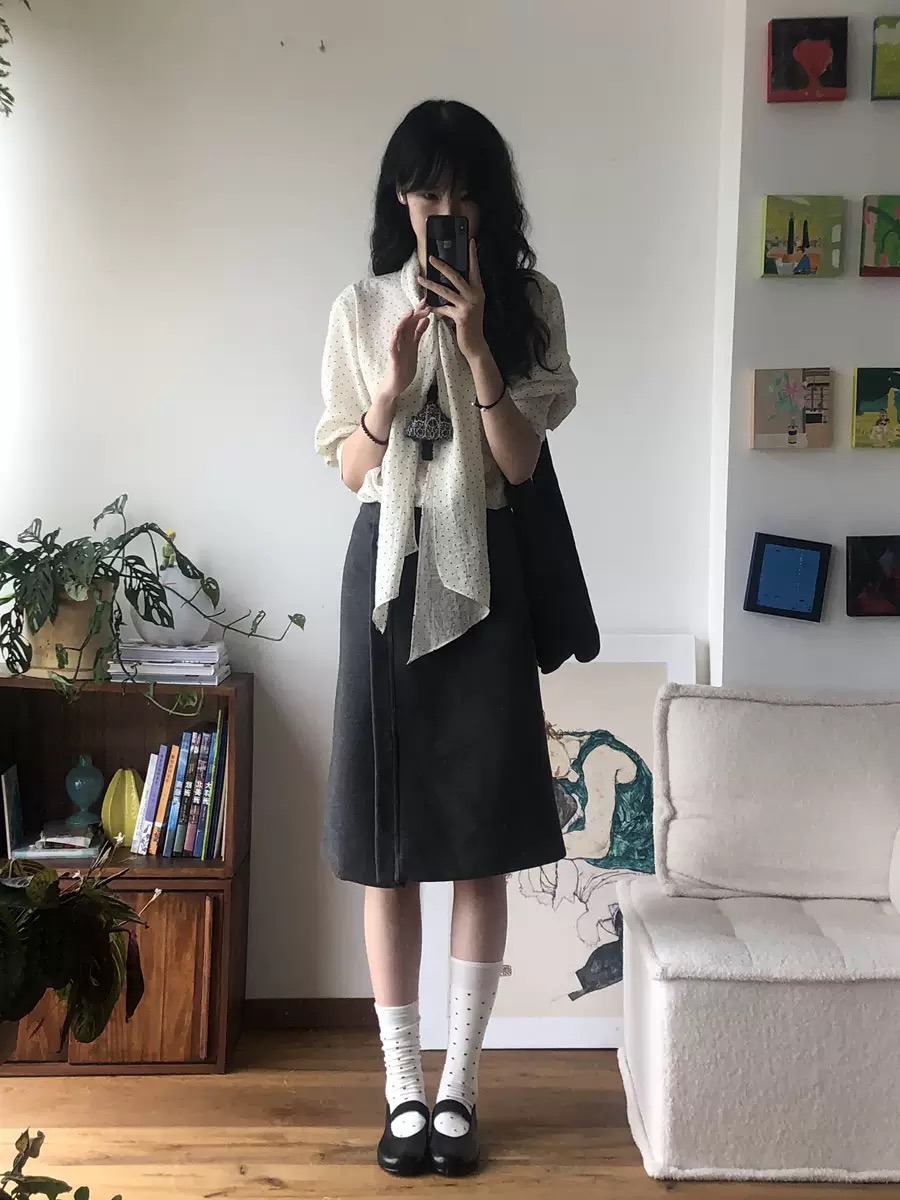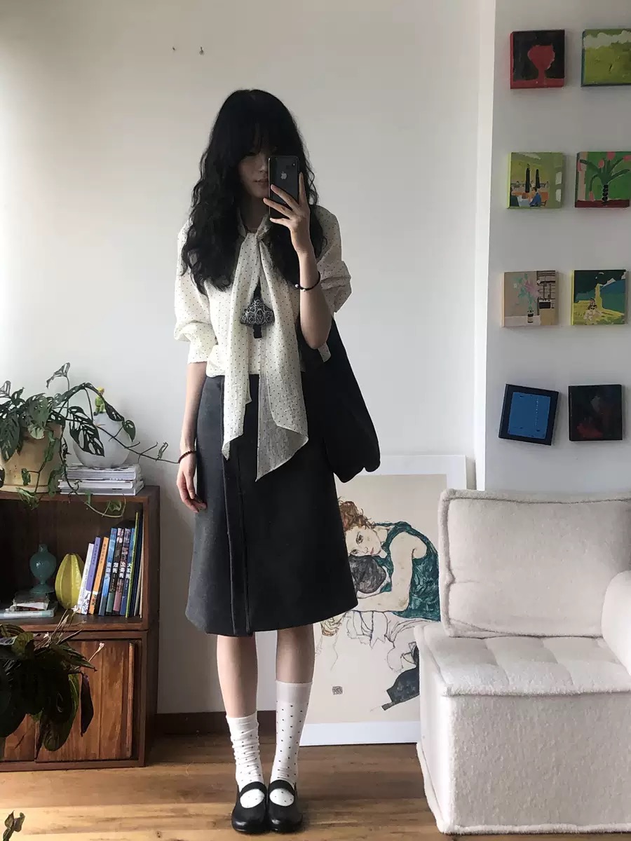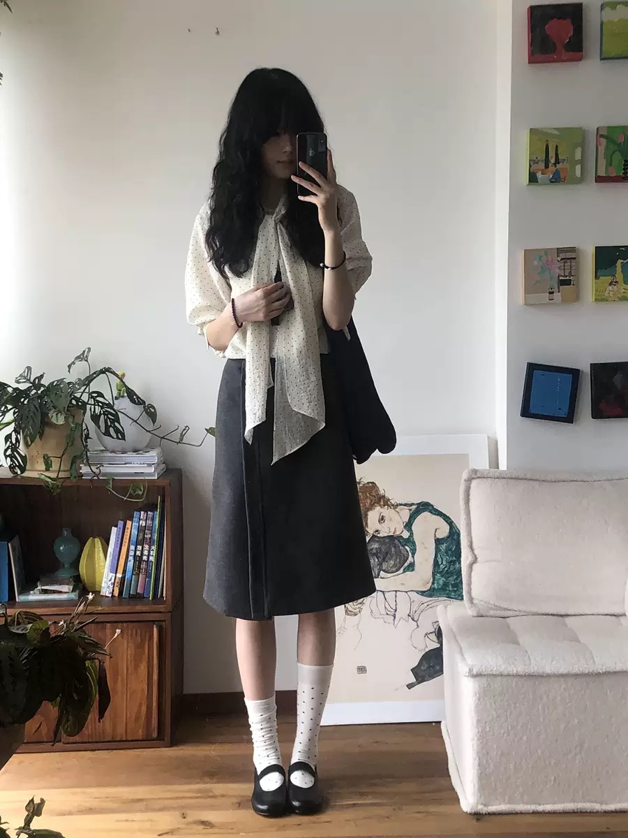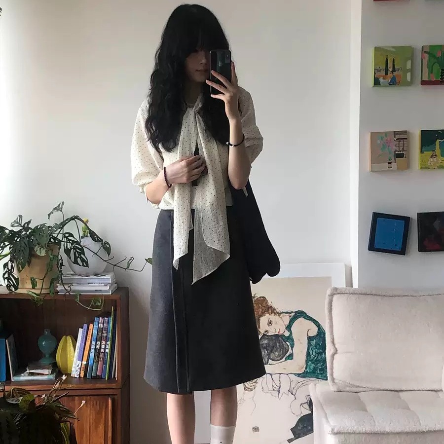 대화 라이 경기 서울 레트로 출퇴근 데님 세트 여성 2026 여름 새로운 고급 센스 셔츠 한 마디 반신 스커트