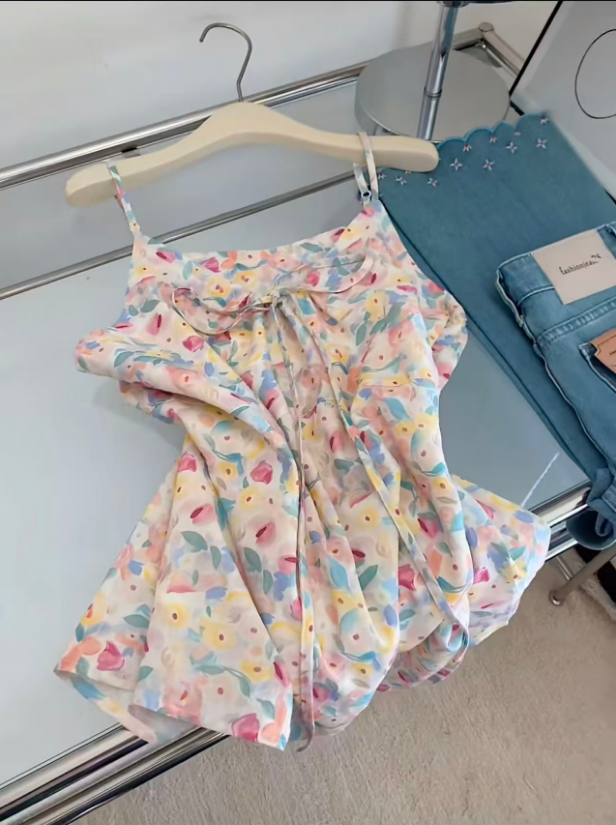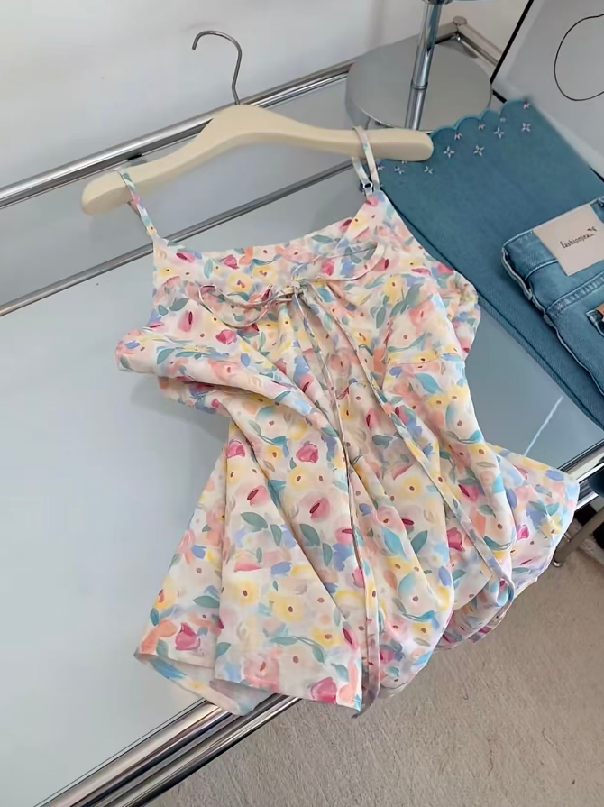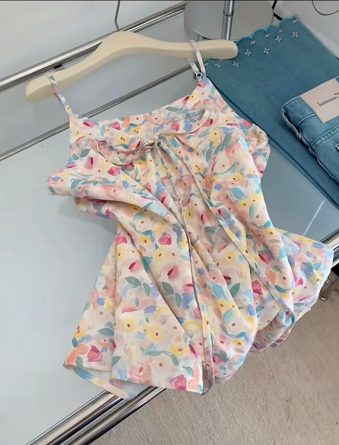 패션 외국 가스 핑크색 프릴 캐미솔 여름 외출용 민소매 맨위 여성 디자인 센스 작은 대중 여름