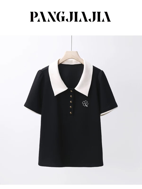 빅 사이즈 여성 의류 도파민 황색 자수 페이크 레이어드 반팔 셔츠 맨위 여름 새로운 루즈핏 품격 셔츠