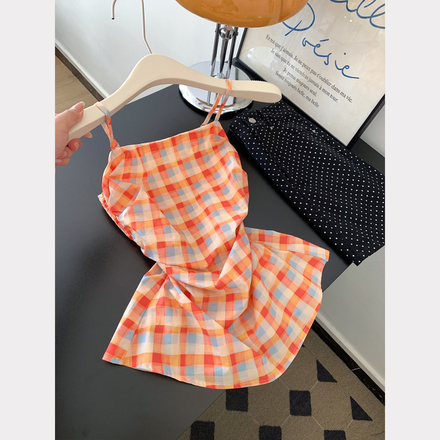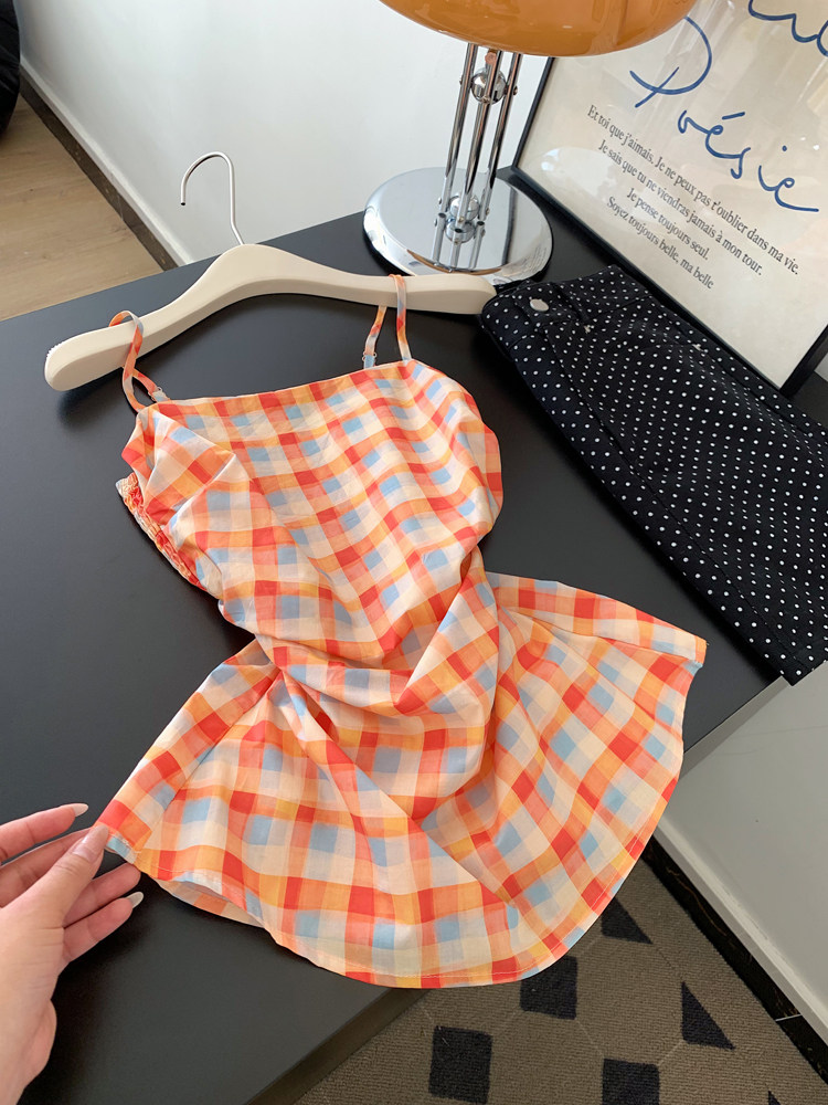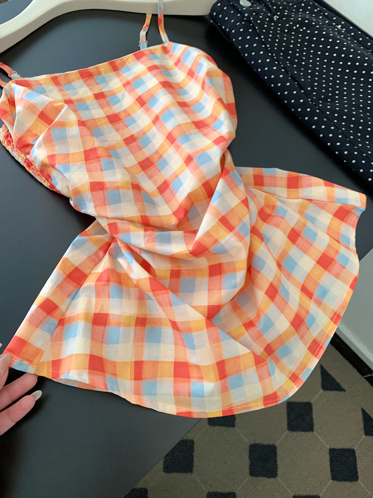 주황색 체크무늬 백리스 루즈핏 슬립 스택 착용 조끼 여성 인사이드 가져 가라. 수 있습니다. 외출용 핫걸 민소매 맨위 2026 여름