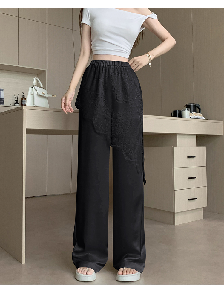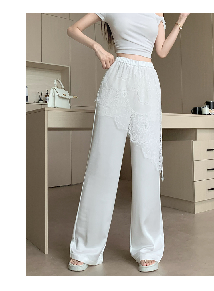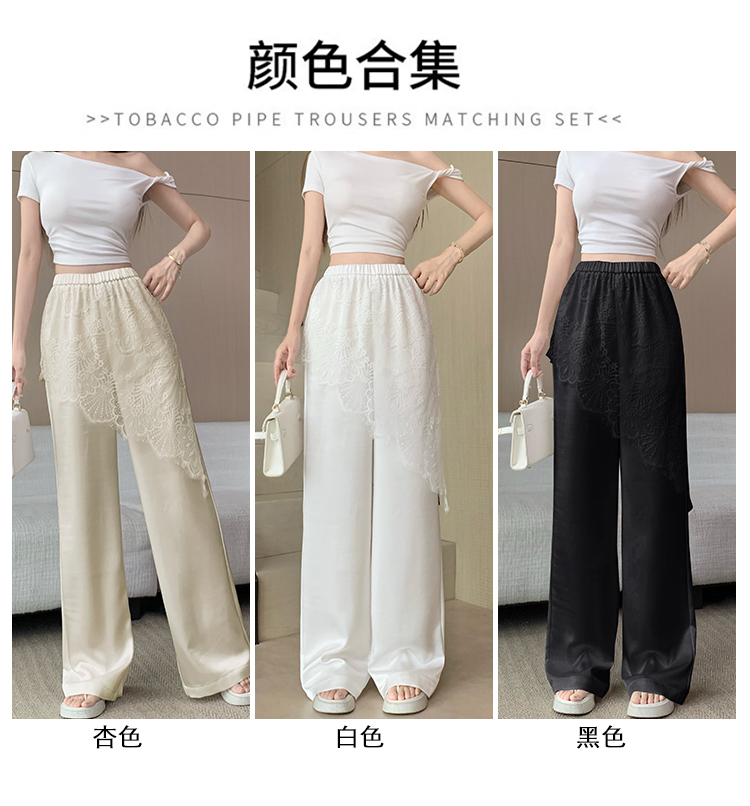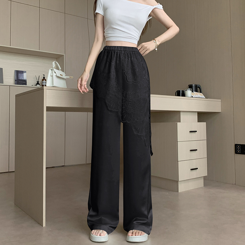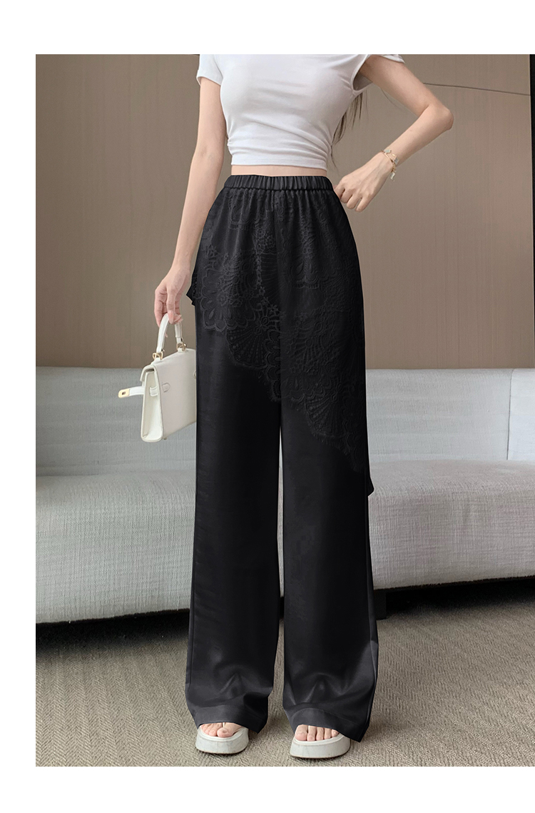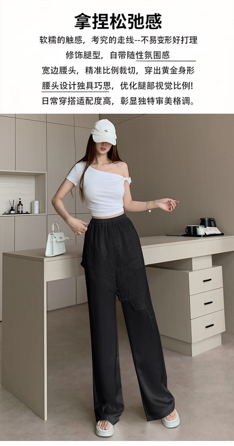 디자인 센스 레이스 조각 아세트산 새틴 와이드 레깅스 바지 여름 얇은 스타일 하이웨이스트 슬림해 보이는 도루 센스 캐주얼 스트레이트 팬츠