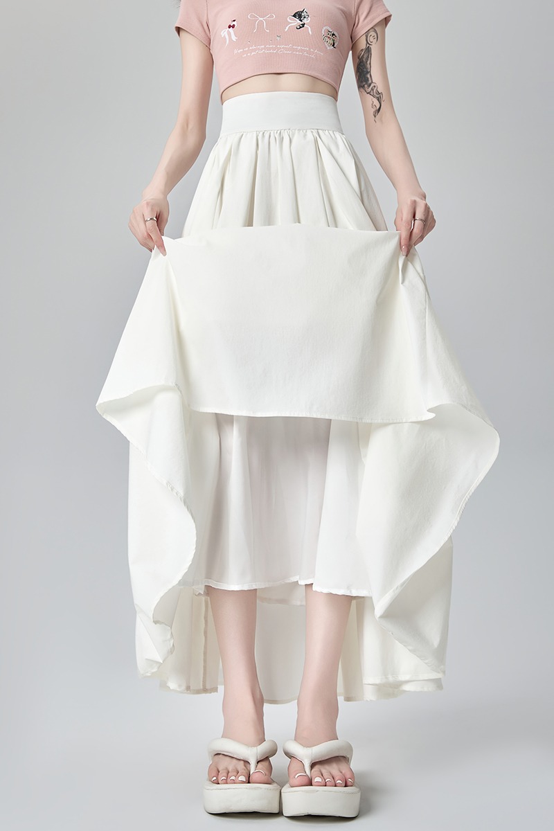 실사 발레 바람 케이크 드레스 반신 스커트 여성 여름 디자인 센스 하이웨이스트 슬림해 보이는 프릴 한 마디 퍼프 미니 스커트
