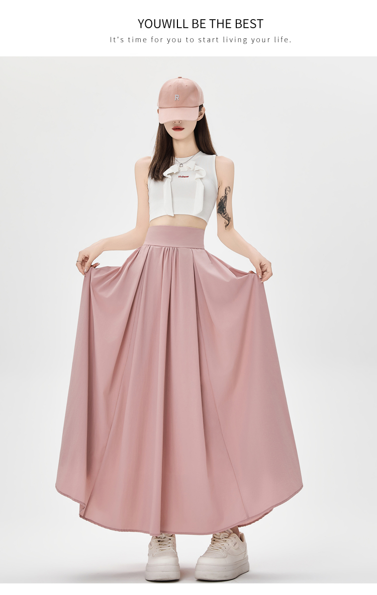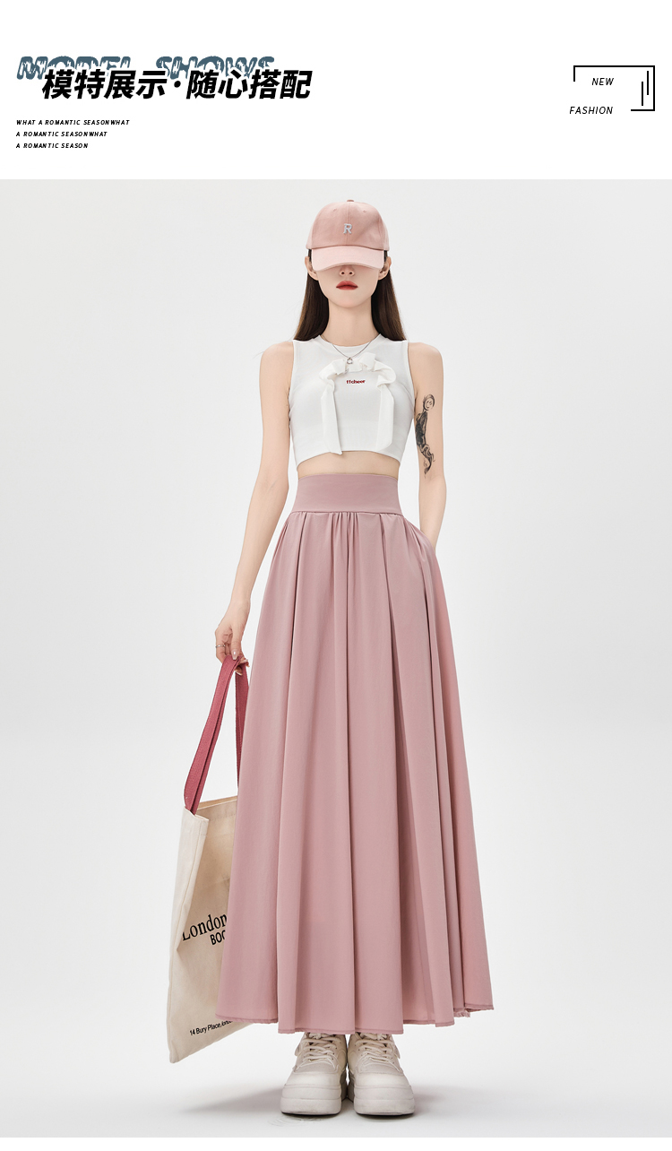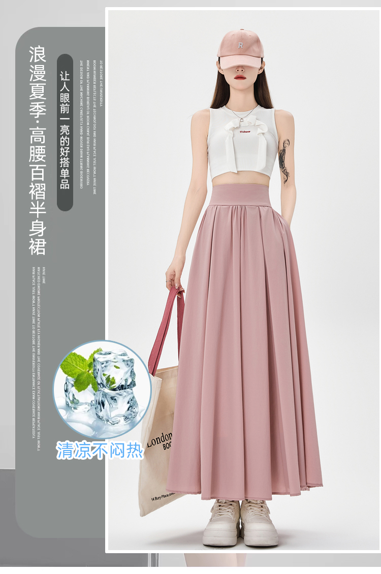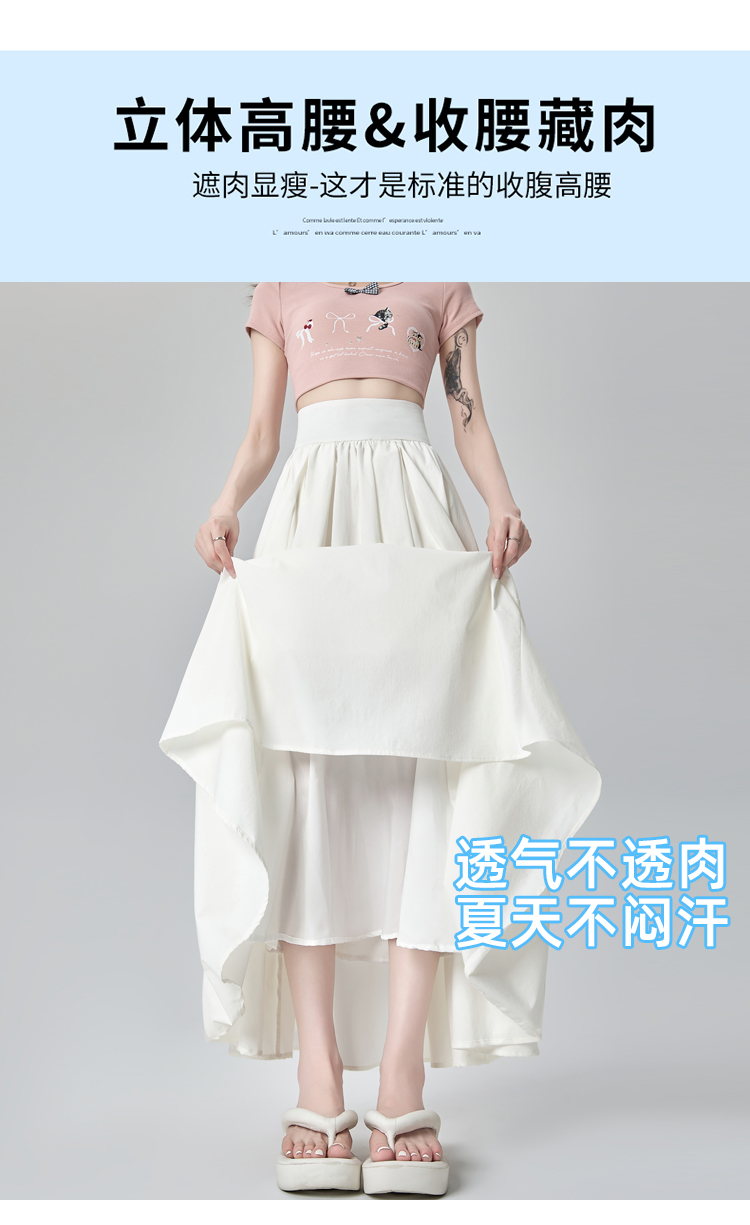 실사 쉬폰 망사 플리츠 반신 스커트 여성 여름 2026 하이웨이스트 슬림해 보이는 도루 센스 한 마디 우산 치마 큰 진자 롱 스커트