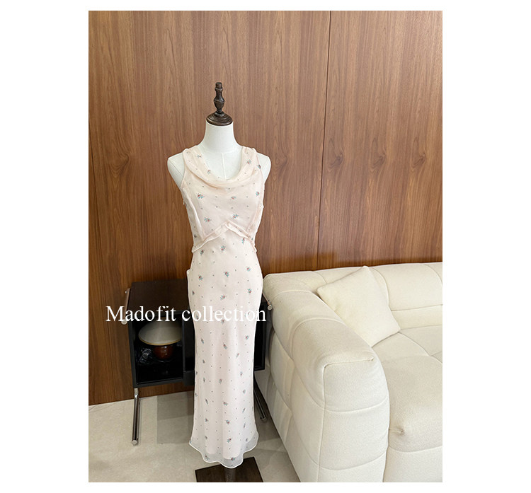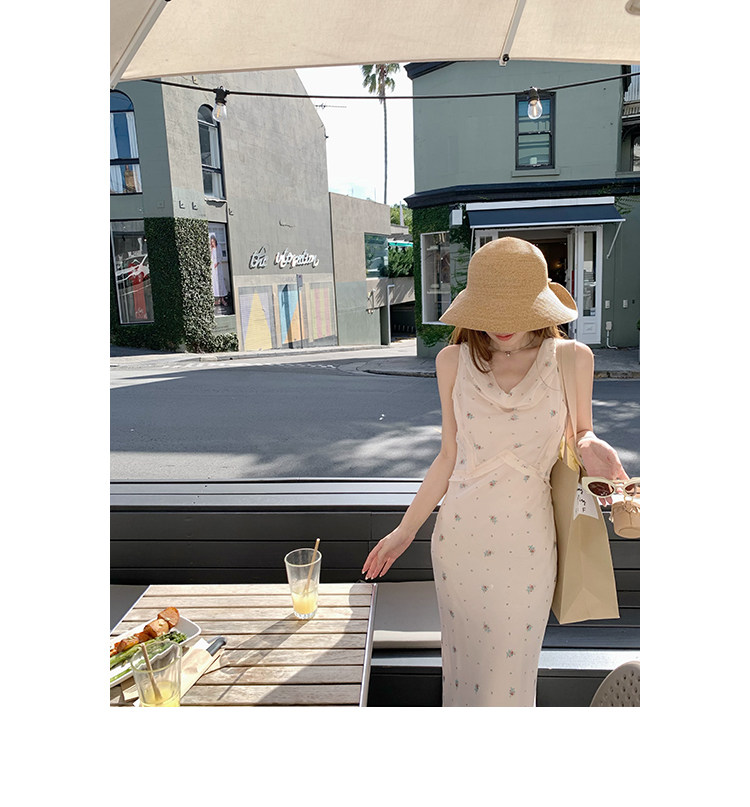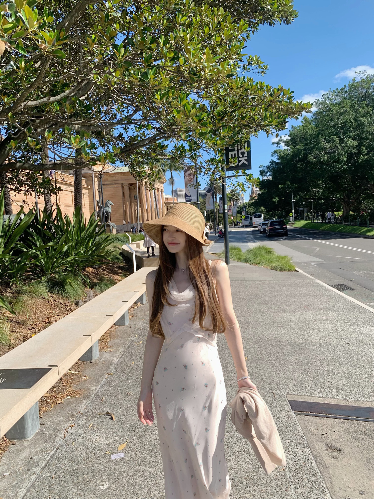 잉여금 도자기 실크 첩 미소 헤일로 염색 드레스 슬립 두 조각 여성 세트 여름 휴가 롱 스커트