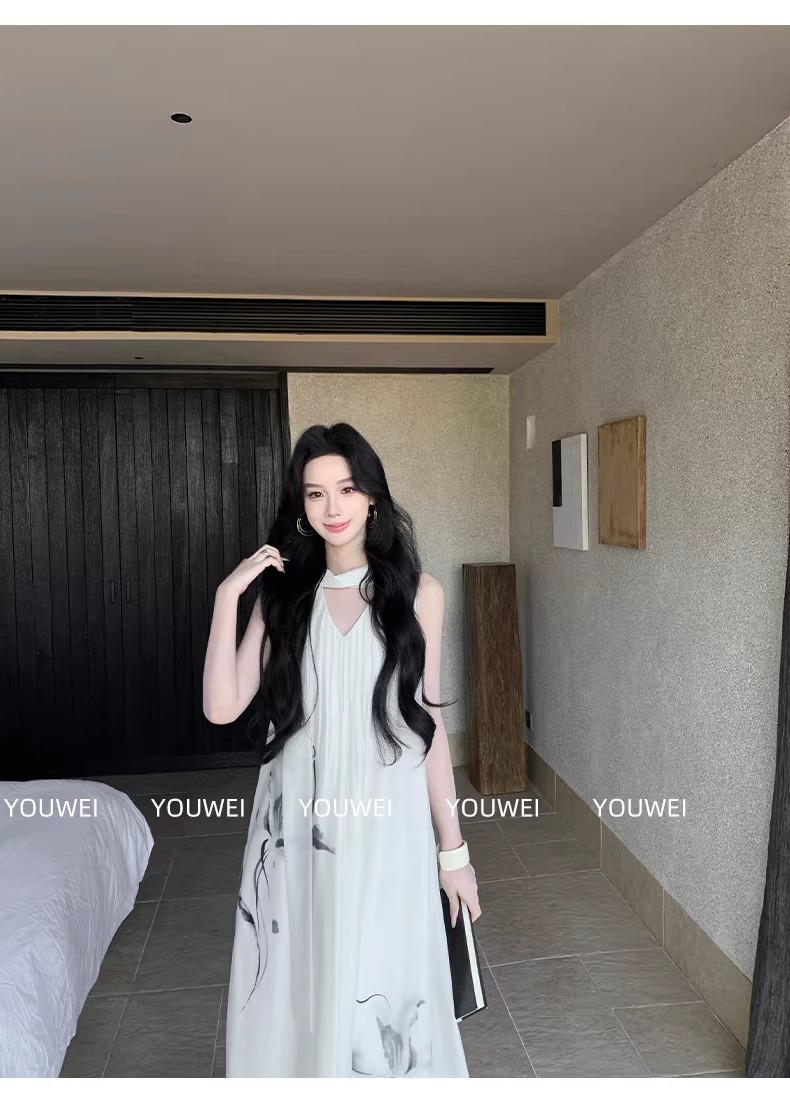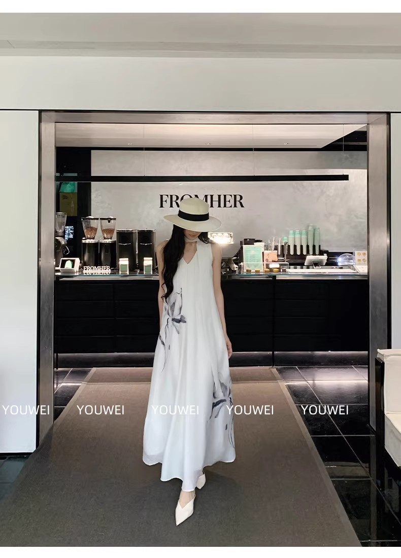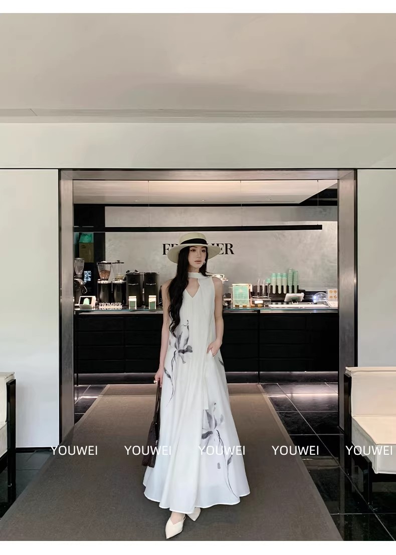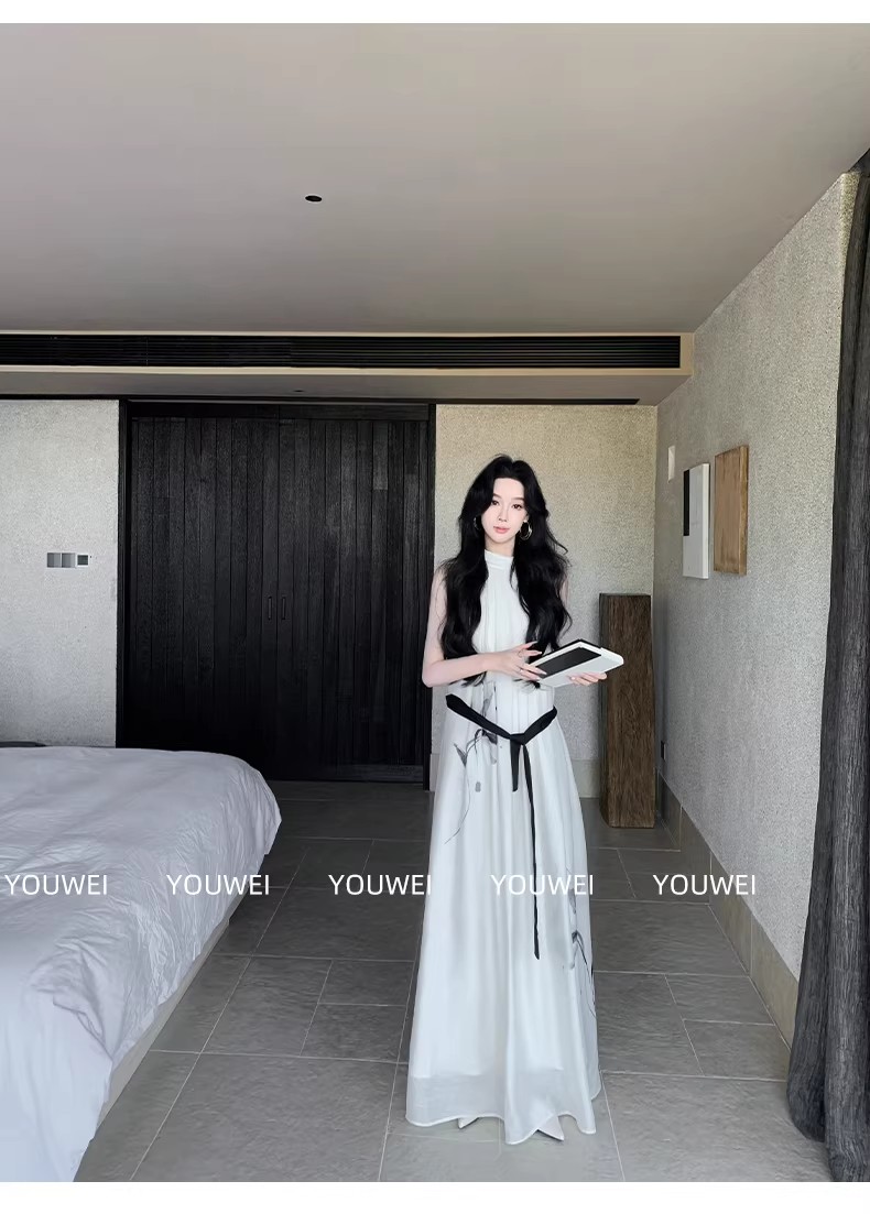 sisi jiang 달 그림자 유리 프랑스식 우아함 허리 수축 휴가 망사 자카드 품격 행침 목 롱 스커트