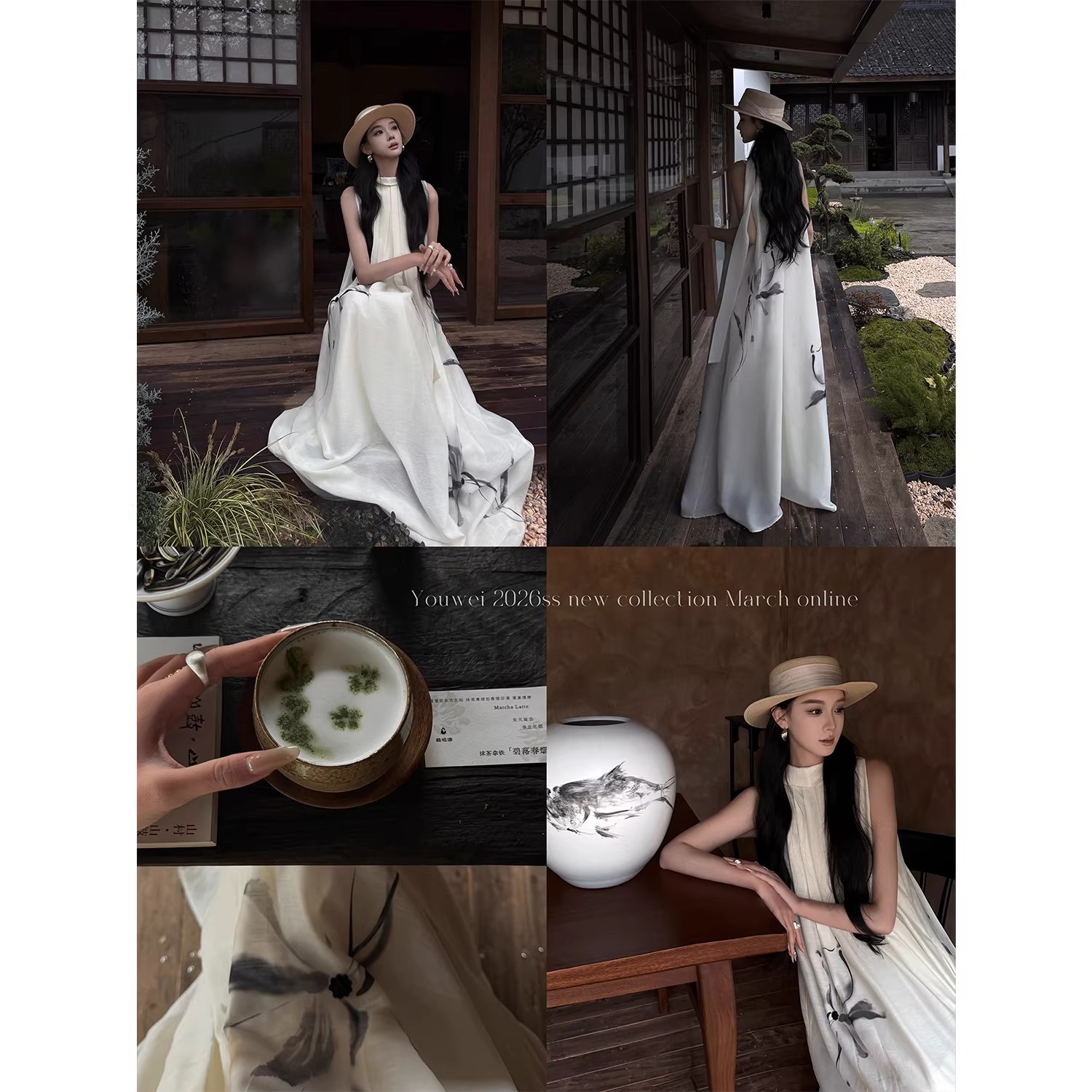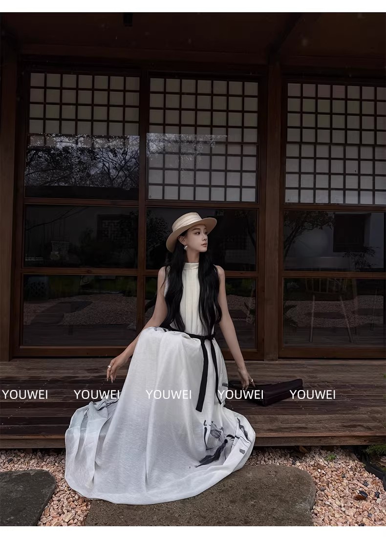 있음 후안 youwe 이른 봄 맨위 2026 새로운 민소매 조끼 여성 여름 외출용 스트레이트 한 마디 반신 치마 세트