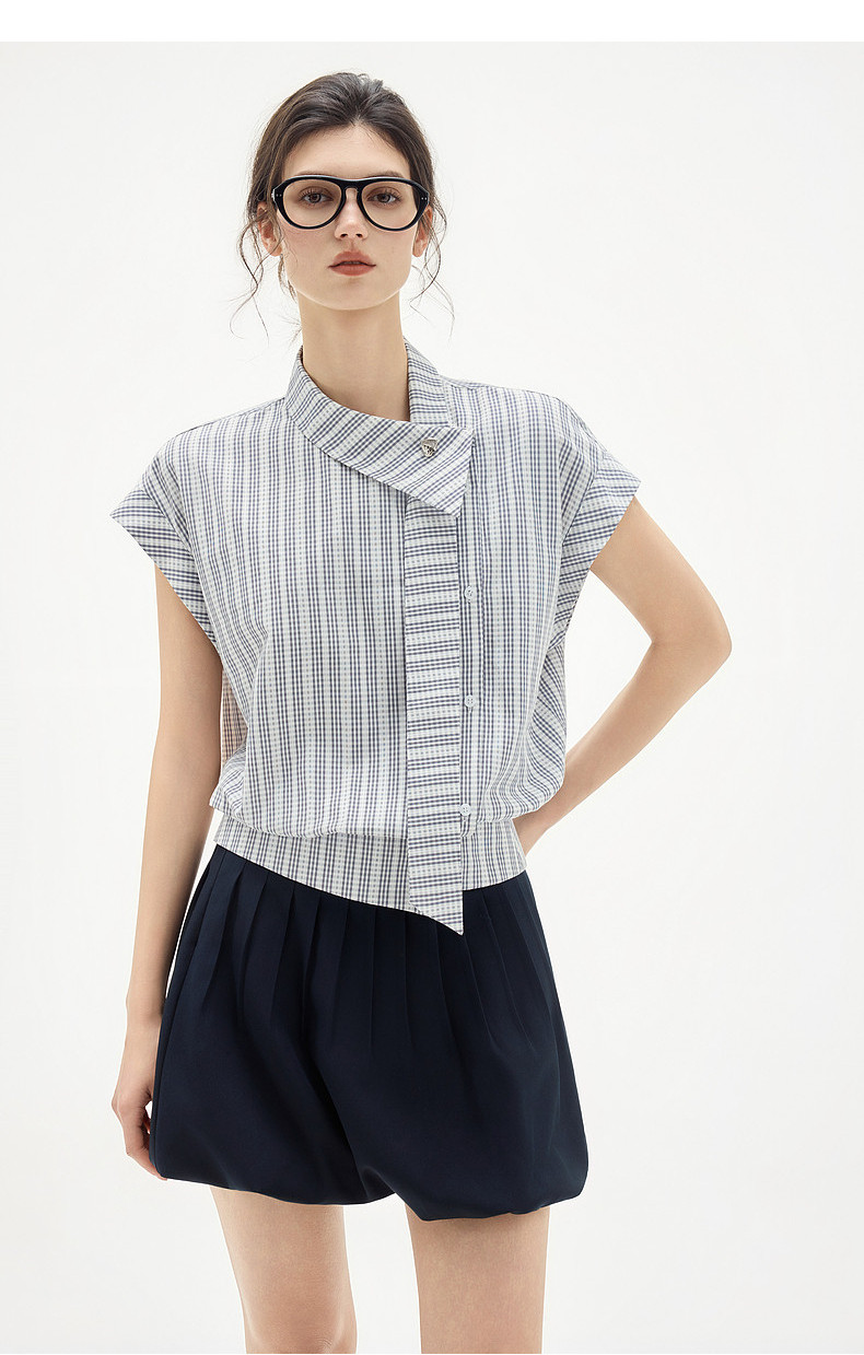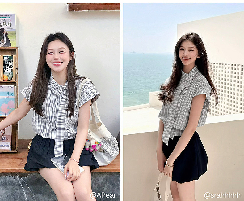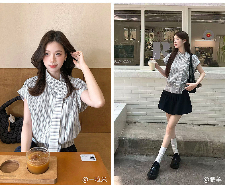 wuuus 사랑 여름 doe 스타일 6 분 소매 작은 셔츠 칼라 걷는 동안 선 배색