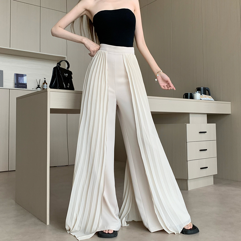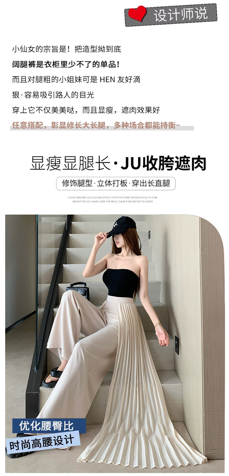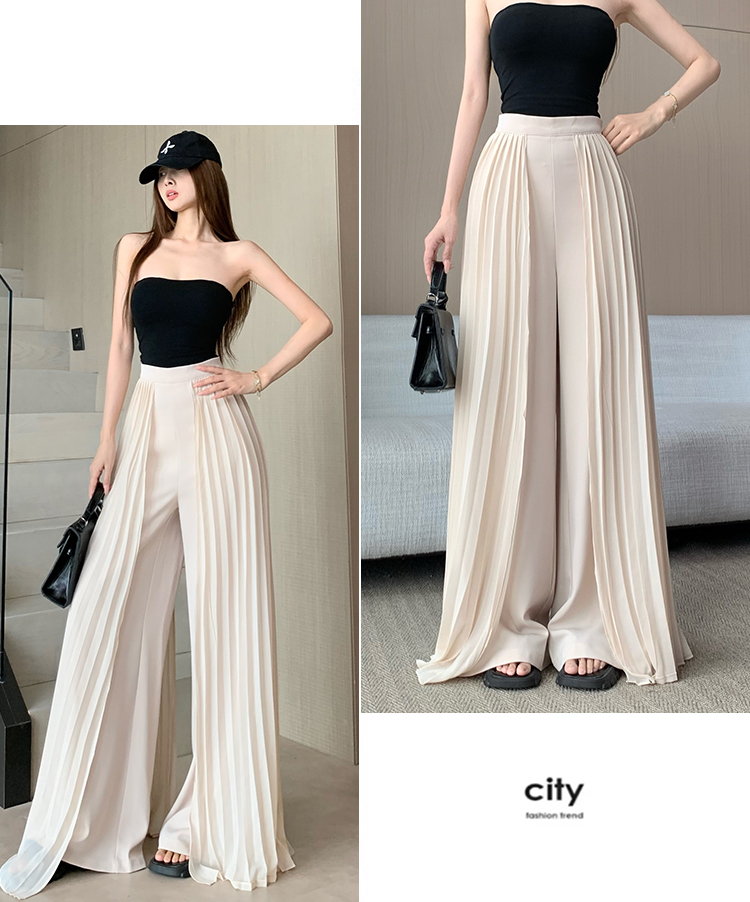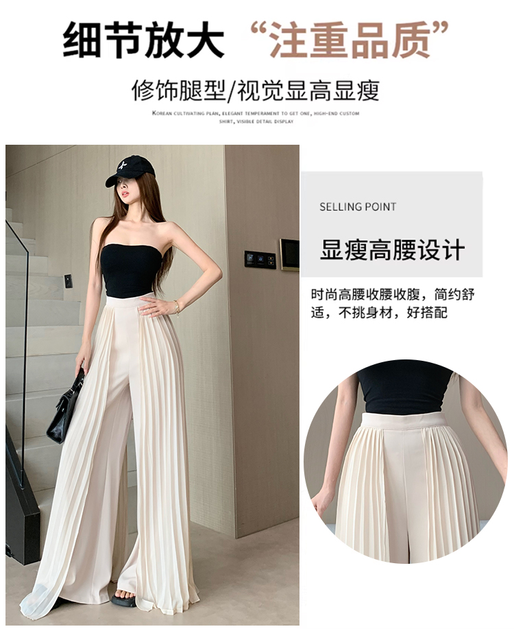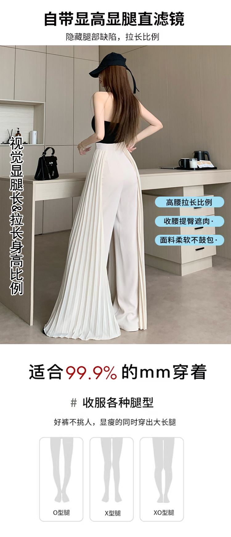 고급 센스 플리츠 품격 쉬폰 우아한 하이웨이스트 슬림해 보이는 도루 센스 와이드 레깅스 바지 디자인 센스 작은 대중 캐주얼 긴 바지
