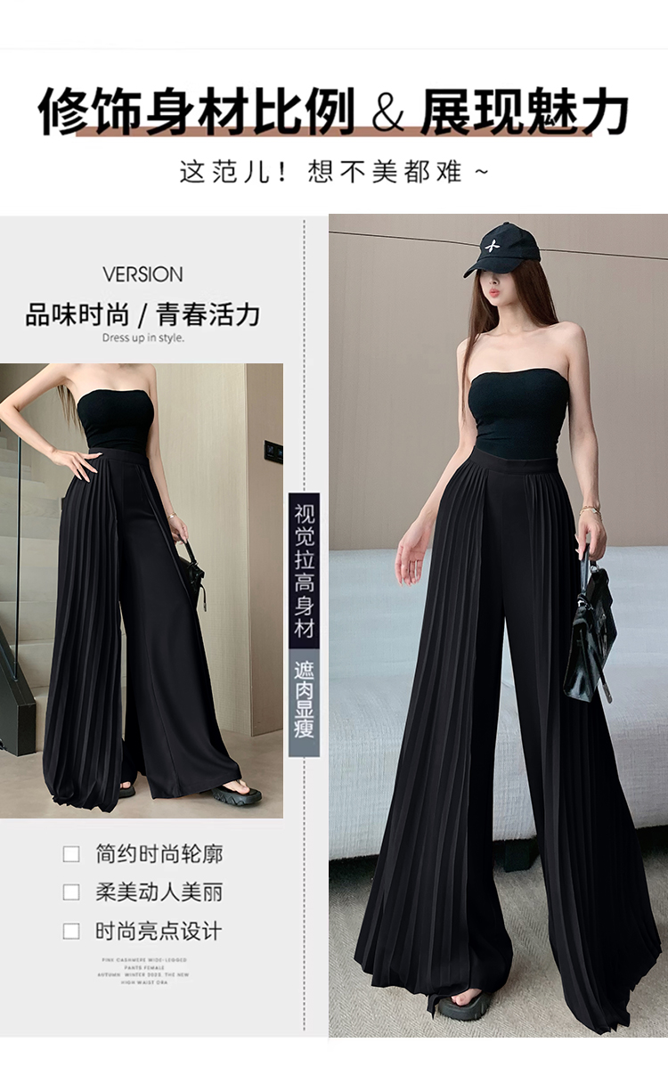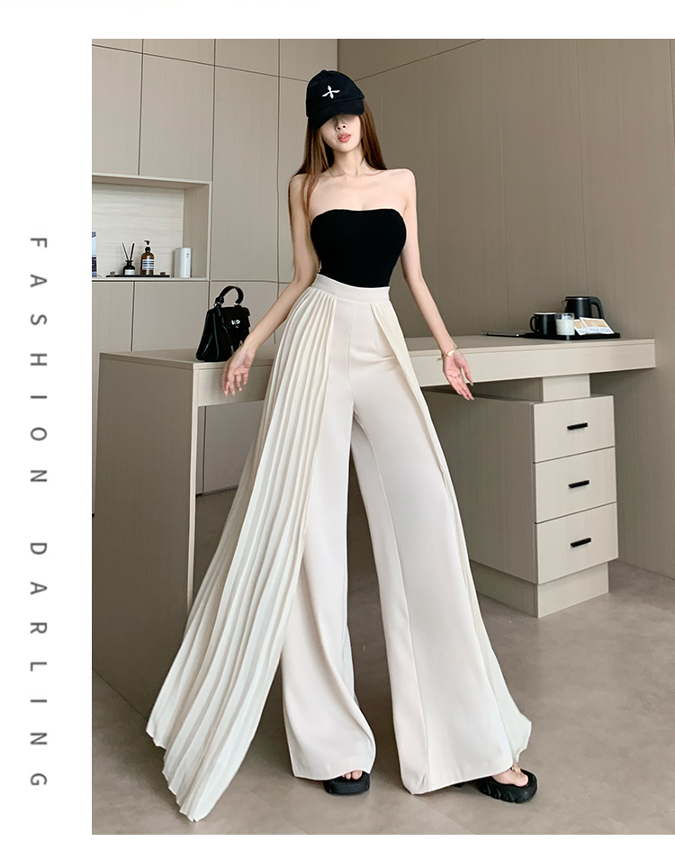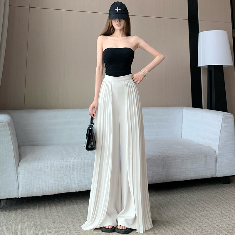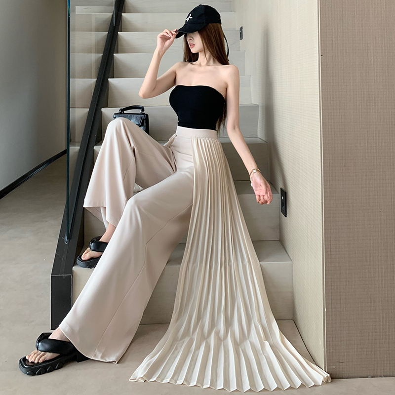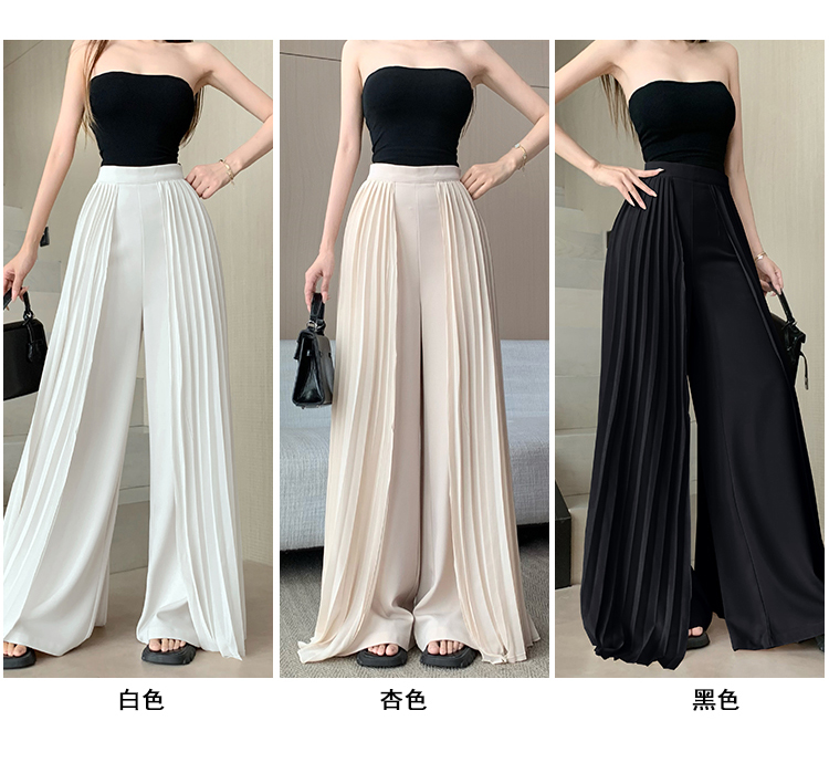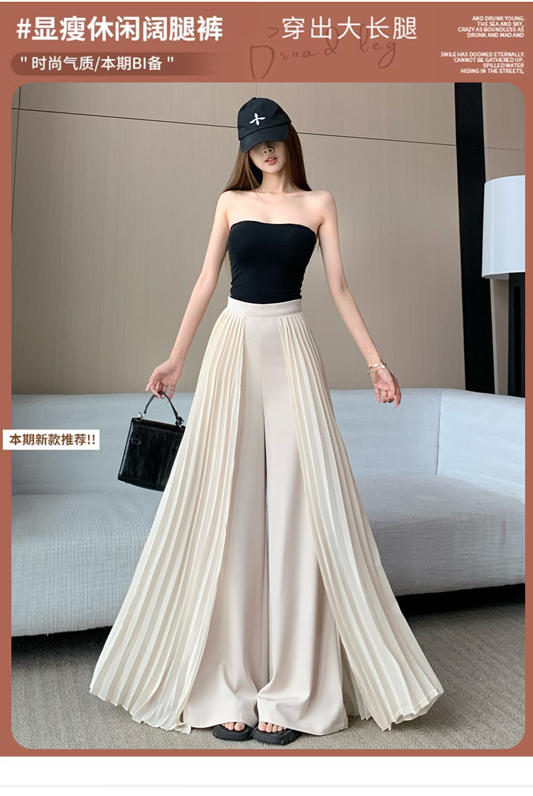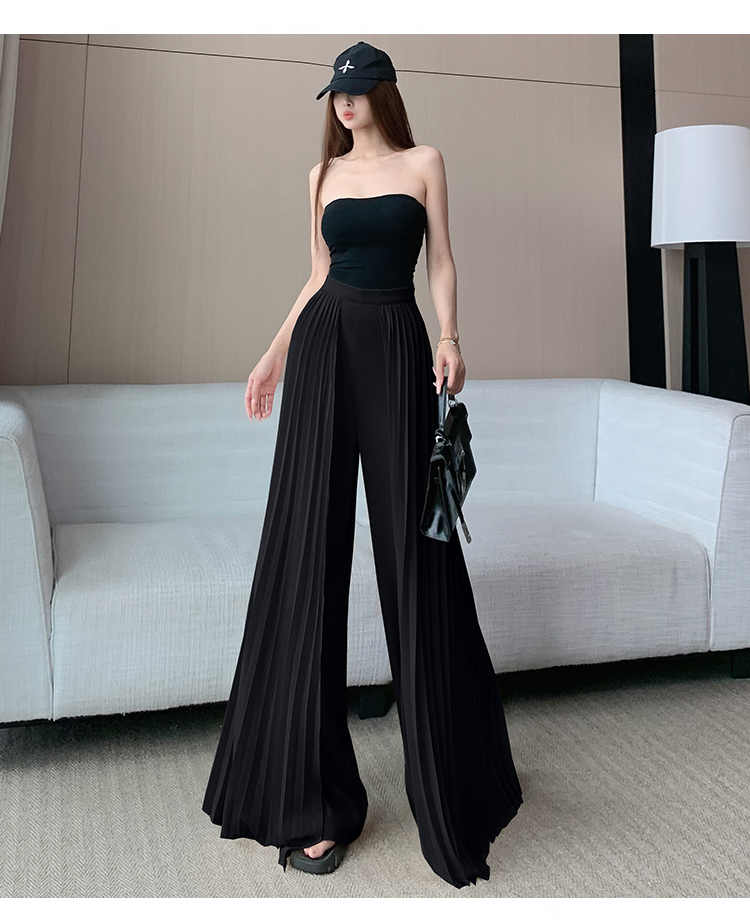 고급 센스 플리츠 품격 쉬폰 우아한 하이웨이스트 슬림해 보이는 도루 센스 와이드 레깅스 바지 디자인 센스 작은 대중 캐주얼 긴 바지