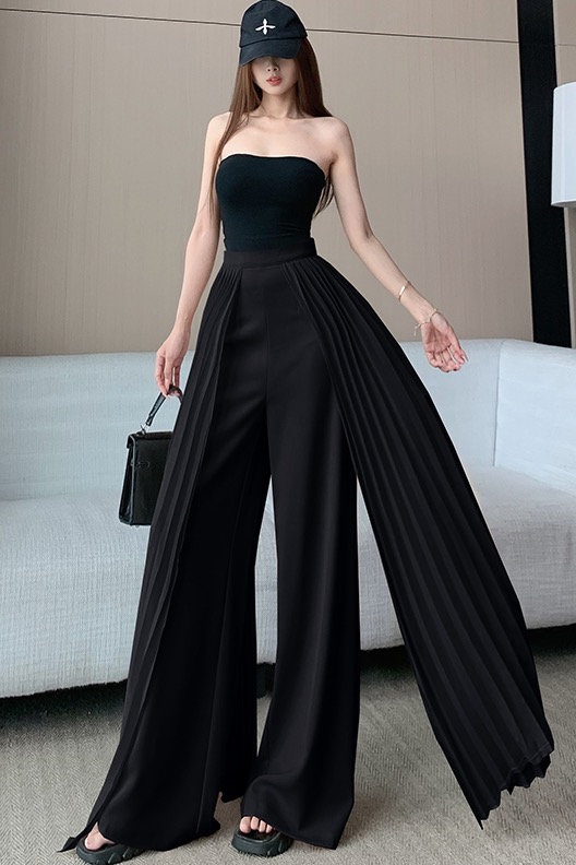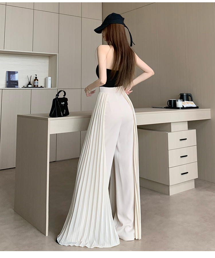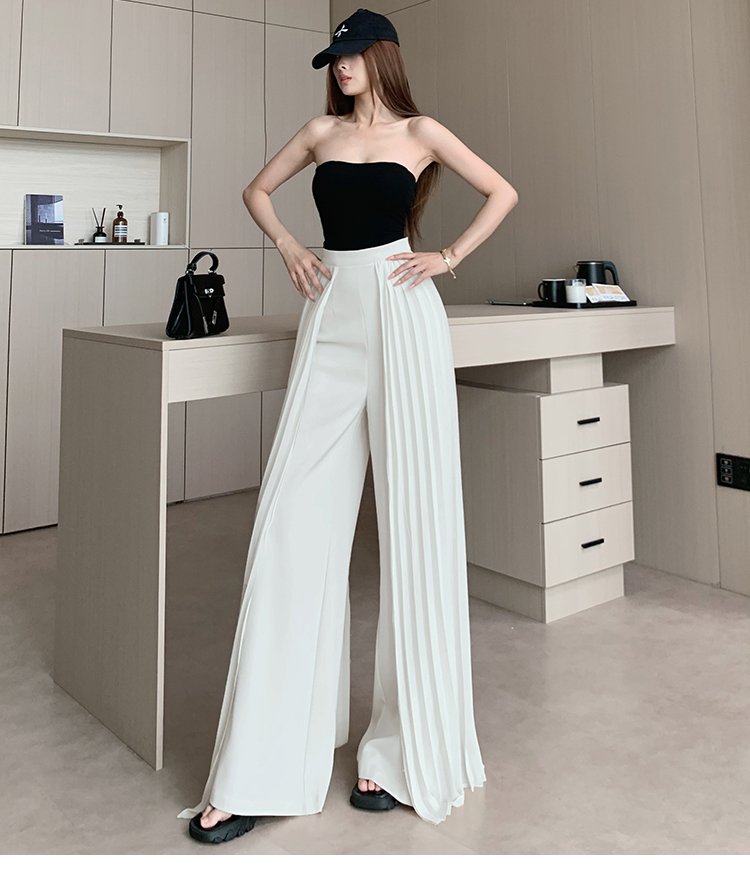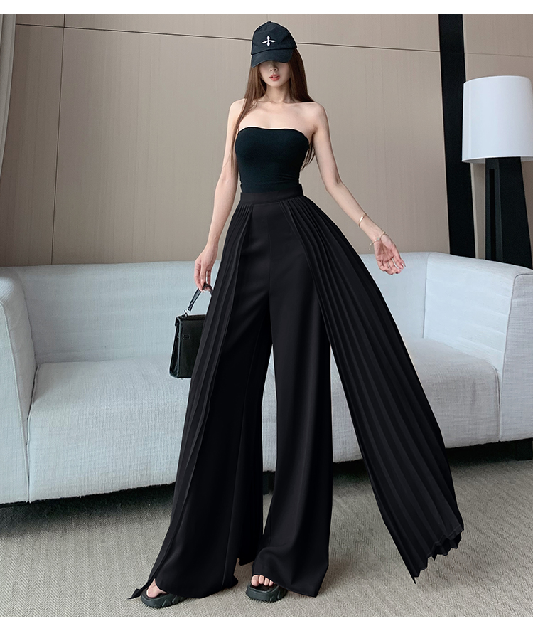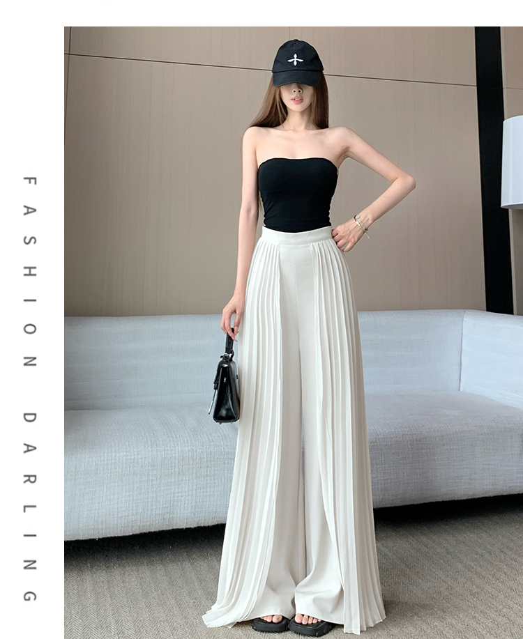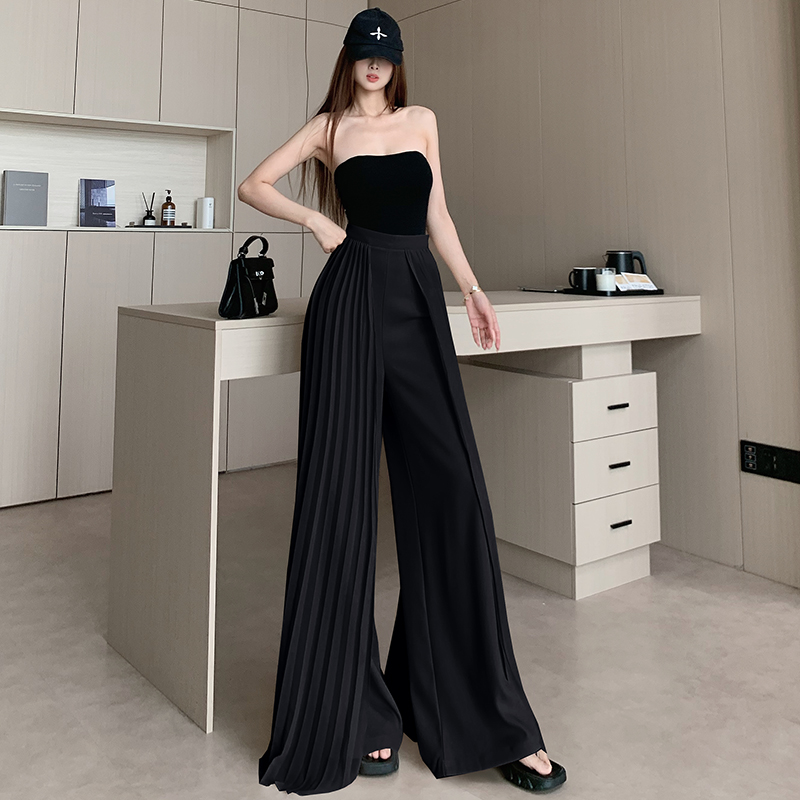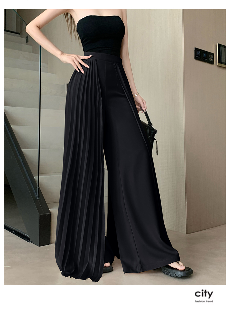 고급 센스 플리츠 품격 쉬폰 우아한 하이웨이스트 슬림해 보이는 도루 센스 와이드 레깅스 바지 디자인 센스 작은 대중 캐주얼 긴 바지