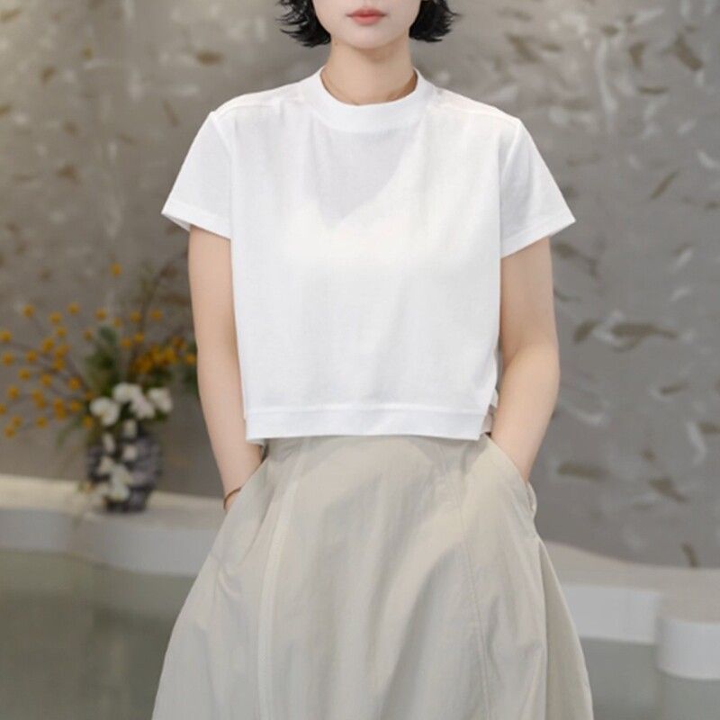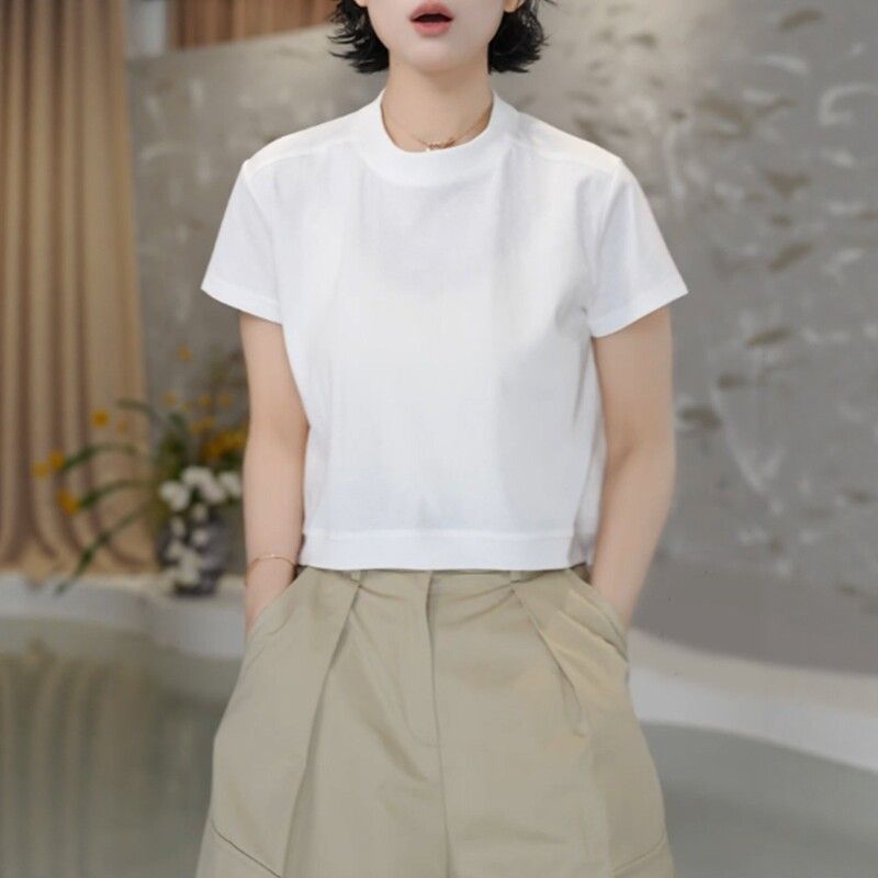 슈퍼 잘 생긴 레이스 조각 V넥 디자인 센스 풀오버 티셔츠 2026 여름 주름 허리 수축 다용도 반팔 맨위 여성