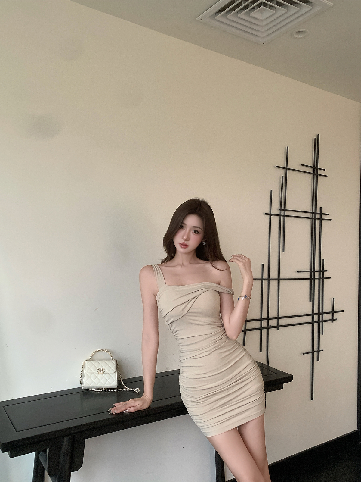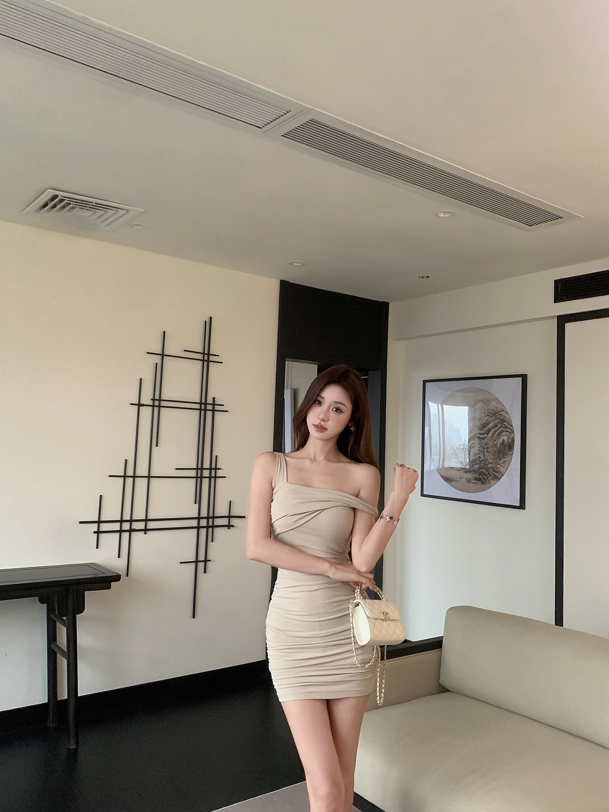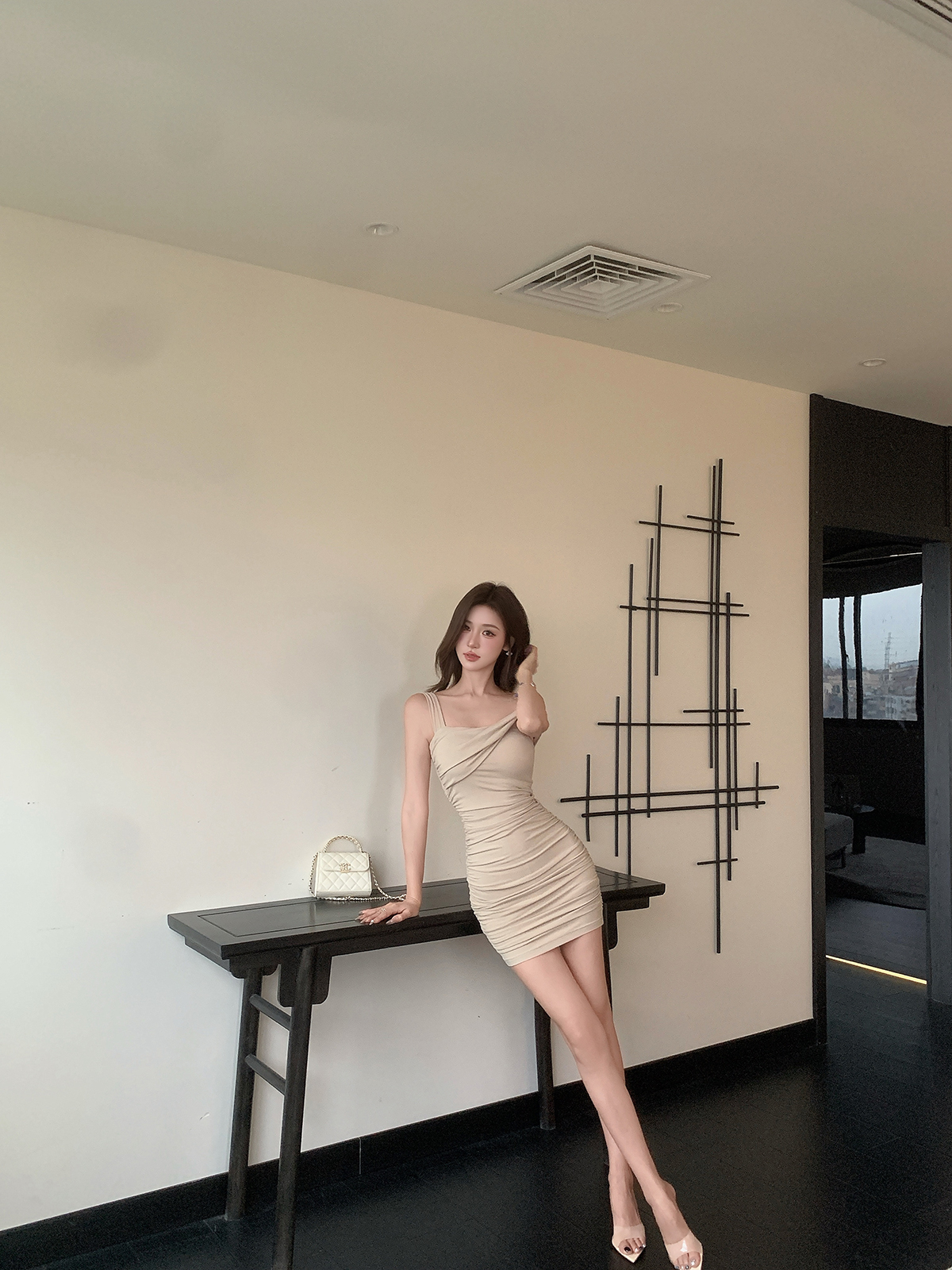 빛 럭셔리 바람 민소매 허리 수축 여성 드레스 트임 슬림해 보이는 디자인 센스 치마