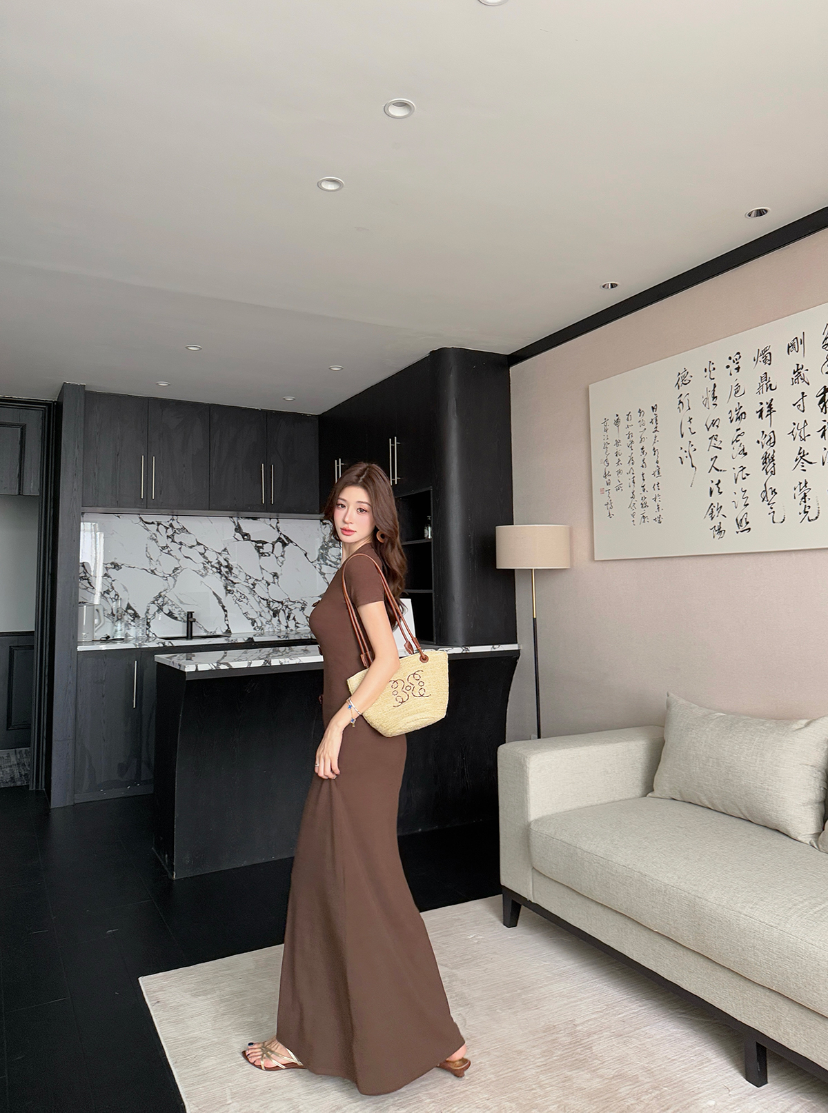 여름 새로운 연필 치마 매듭 켄 콩 미니멀리즘 센스 품격 비틀림 민소매 드레스 허리 수축 트임 롱 스커트