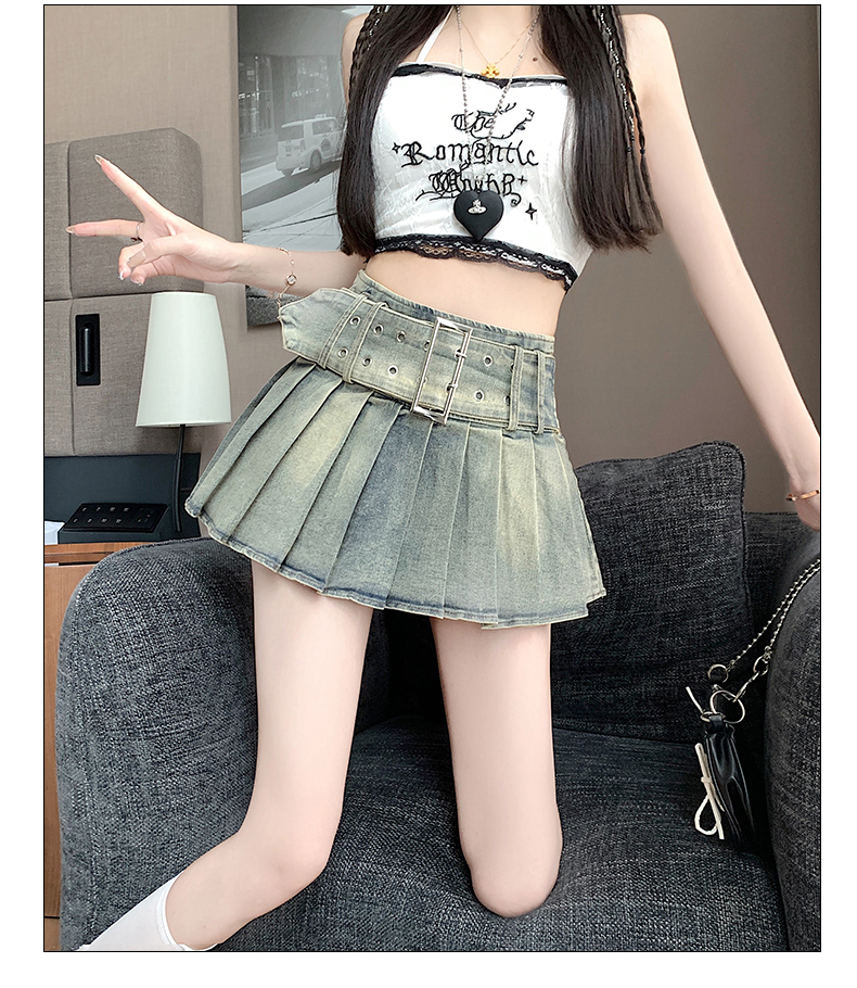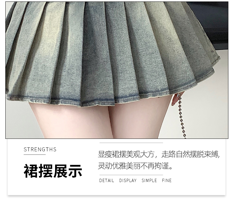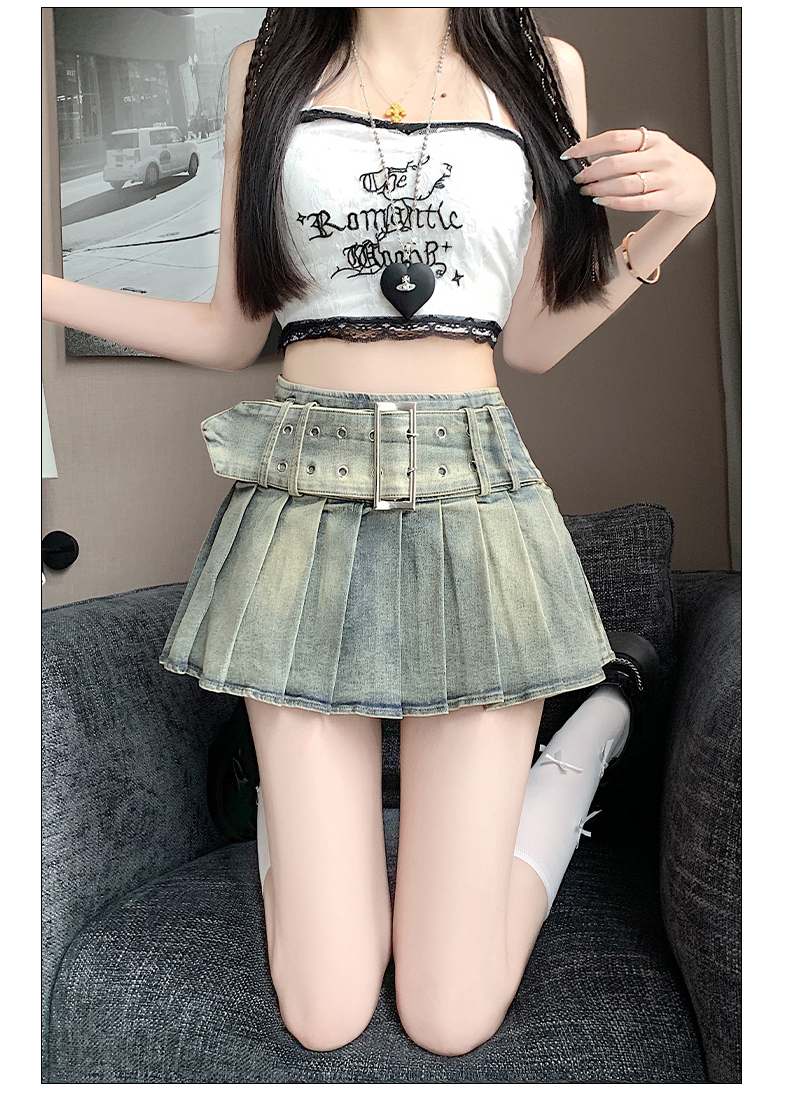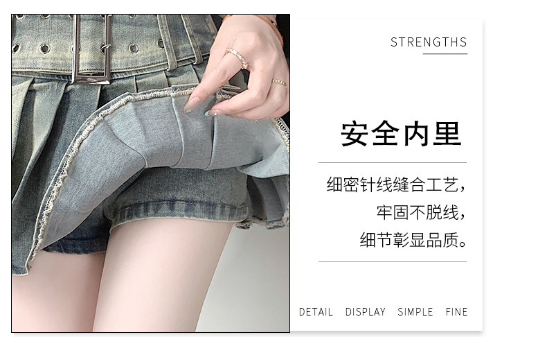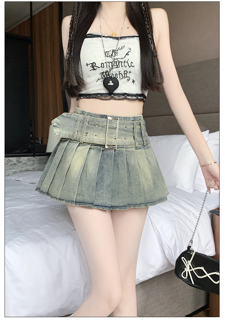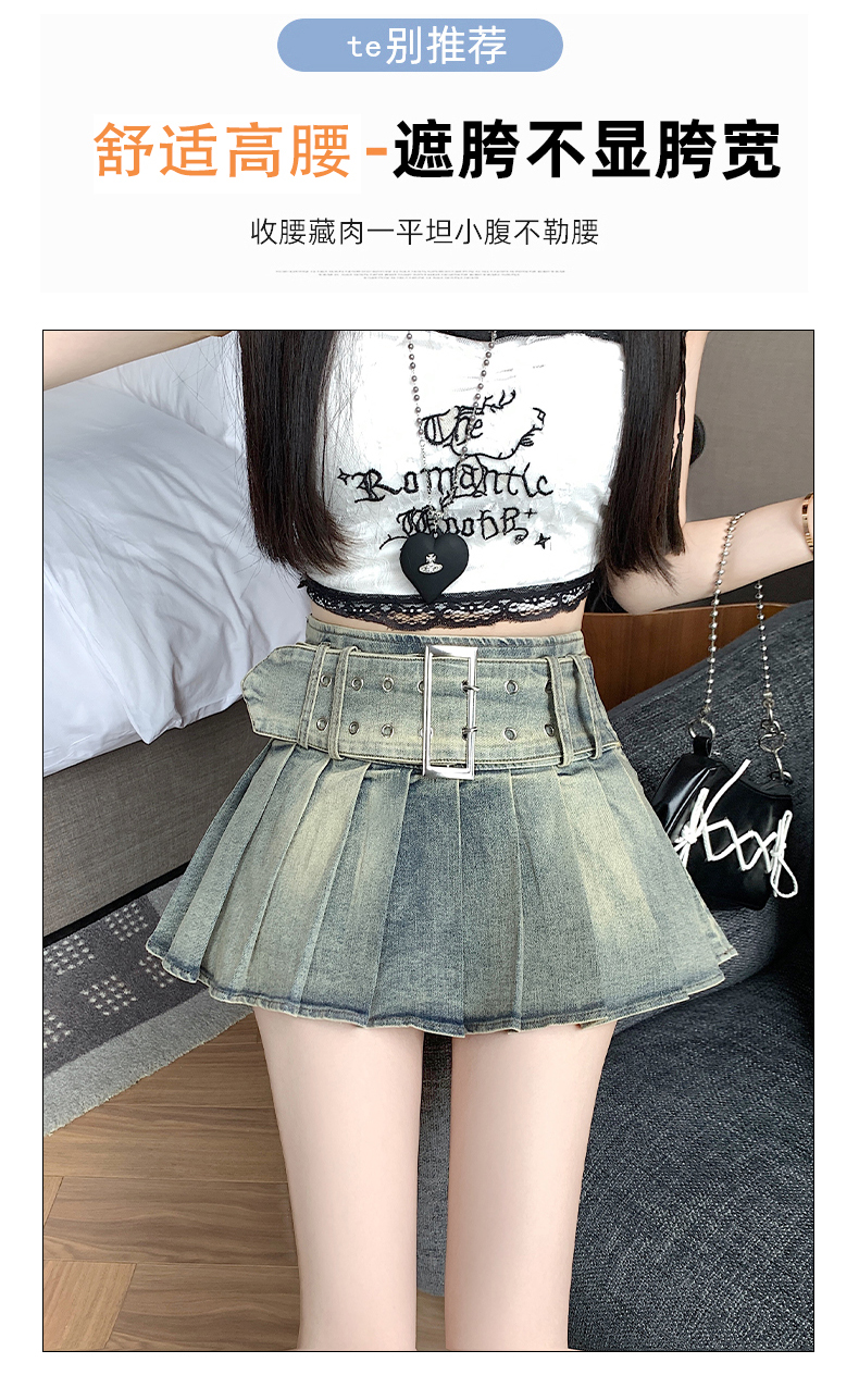 실사 2026 아메리칸 순수한 욕망 바람 핫걸 디자인 센스 신축성 데님 플리츠 반신 스커트 바지