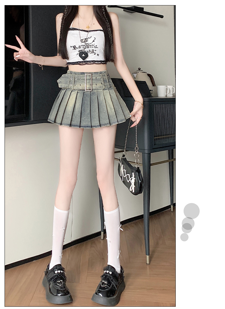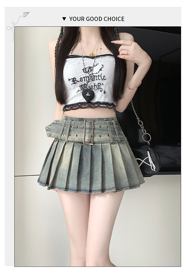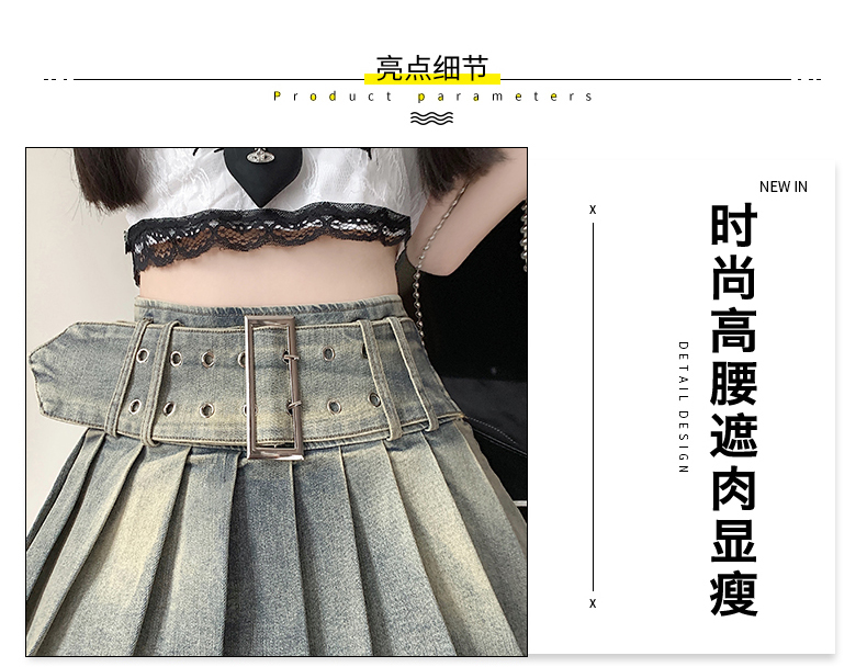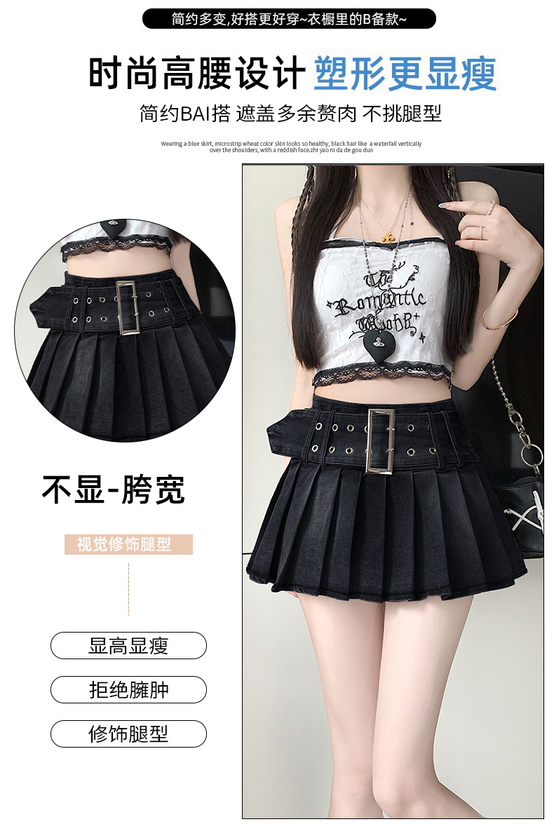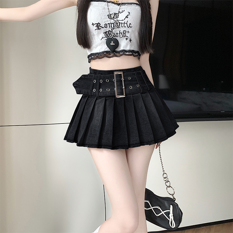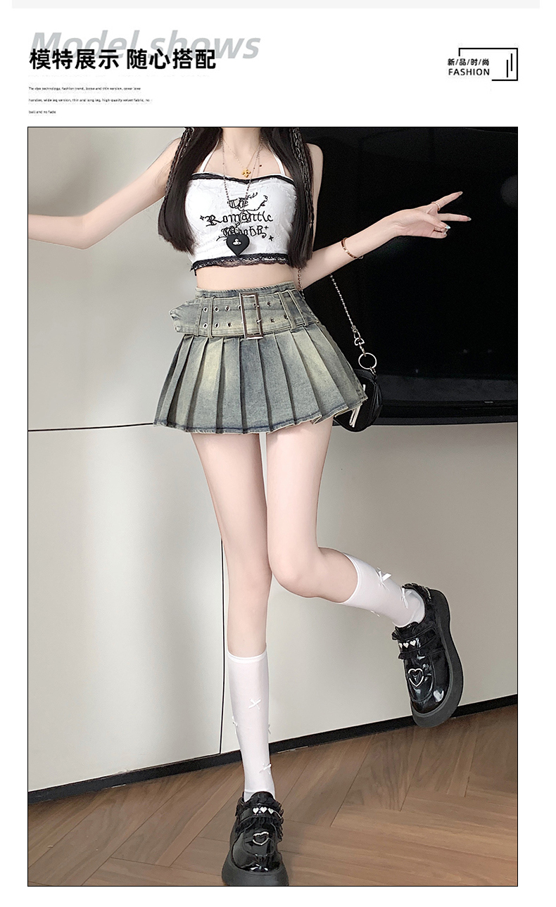 실사 2026 아메리칸 순수한 욕망 바람 핫걸 디자인 센스 신축성 데님 플리츠 반신 스커트 바지