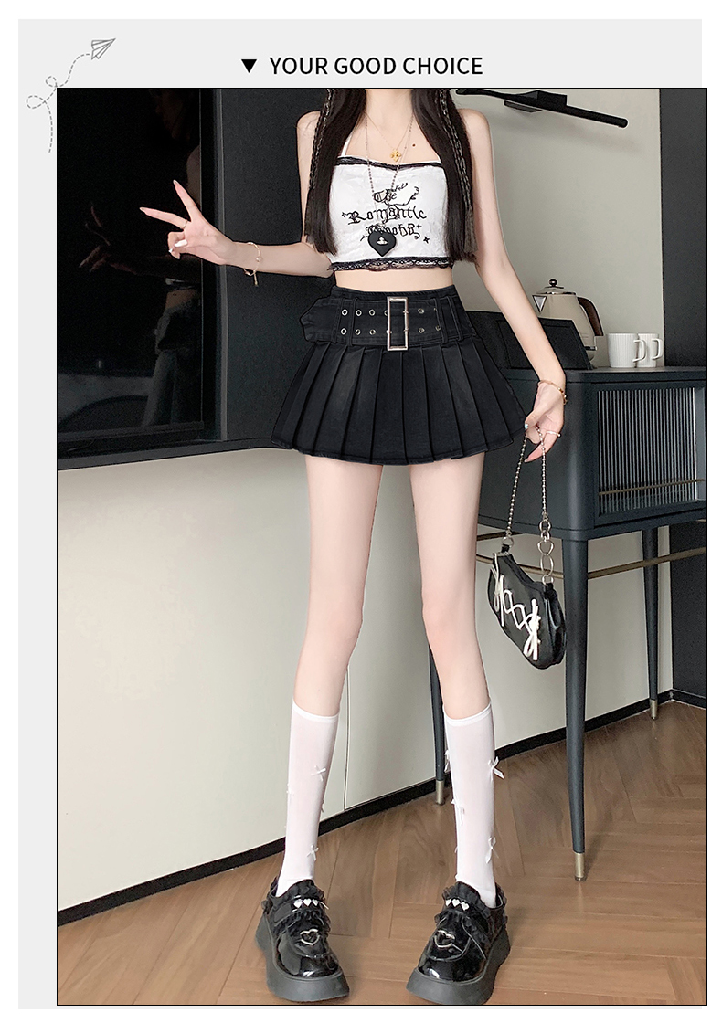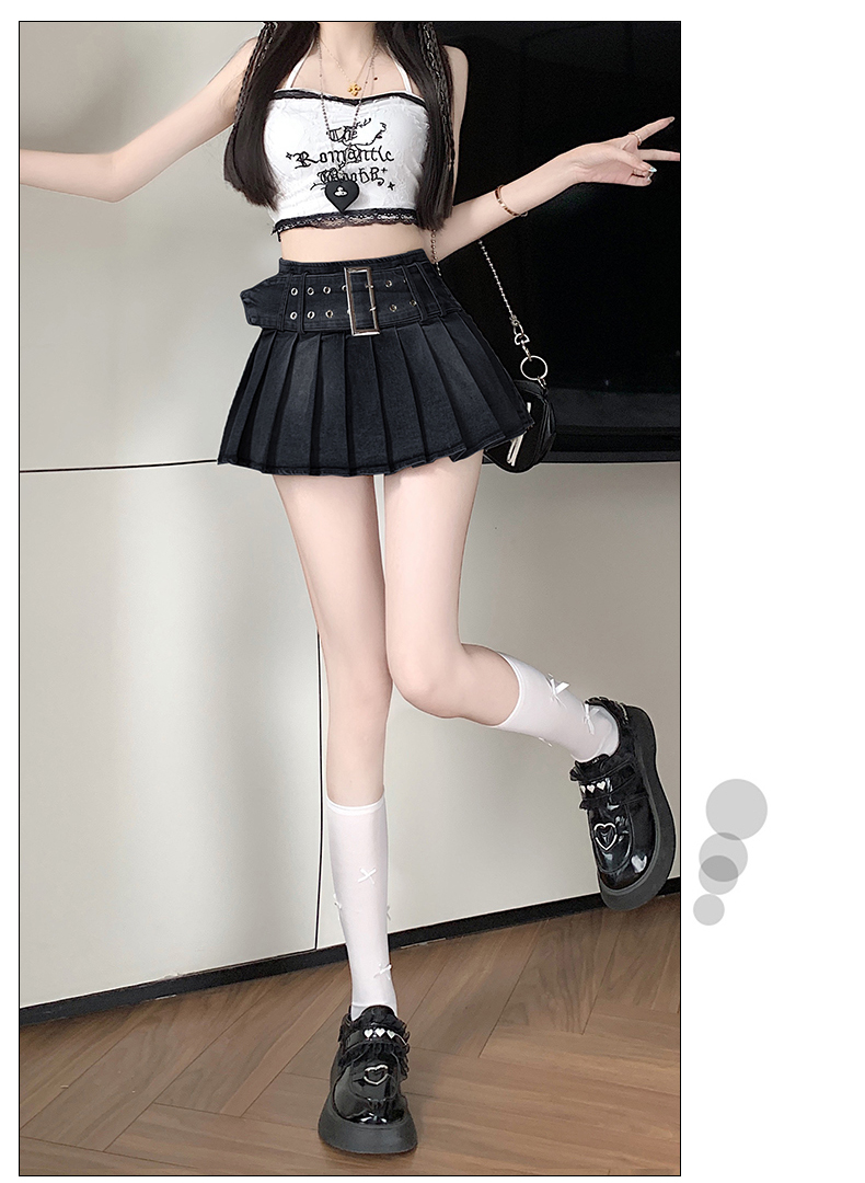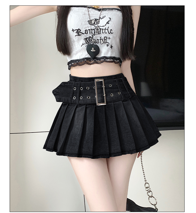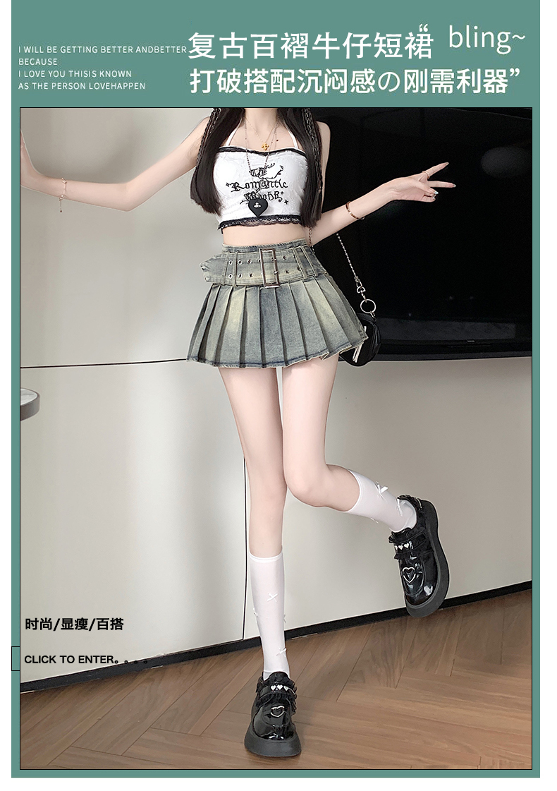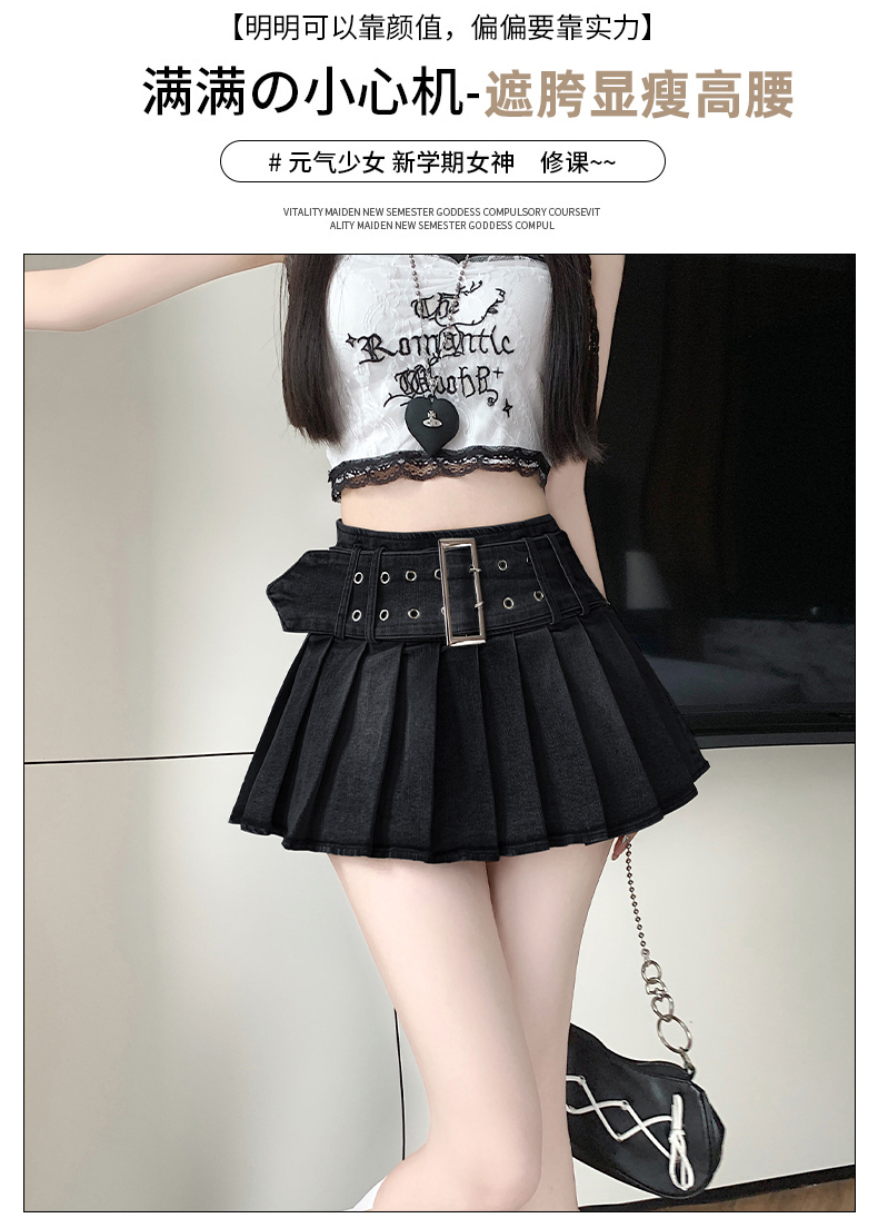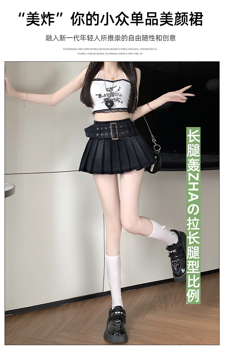 실사 2026 아메리칸 순수한 욕망 바람 핫걸 디자인 센스 신축성 데님 플리츠 반신 스커트 바지